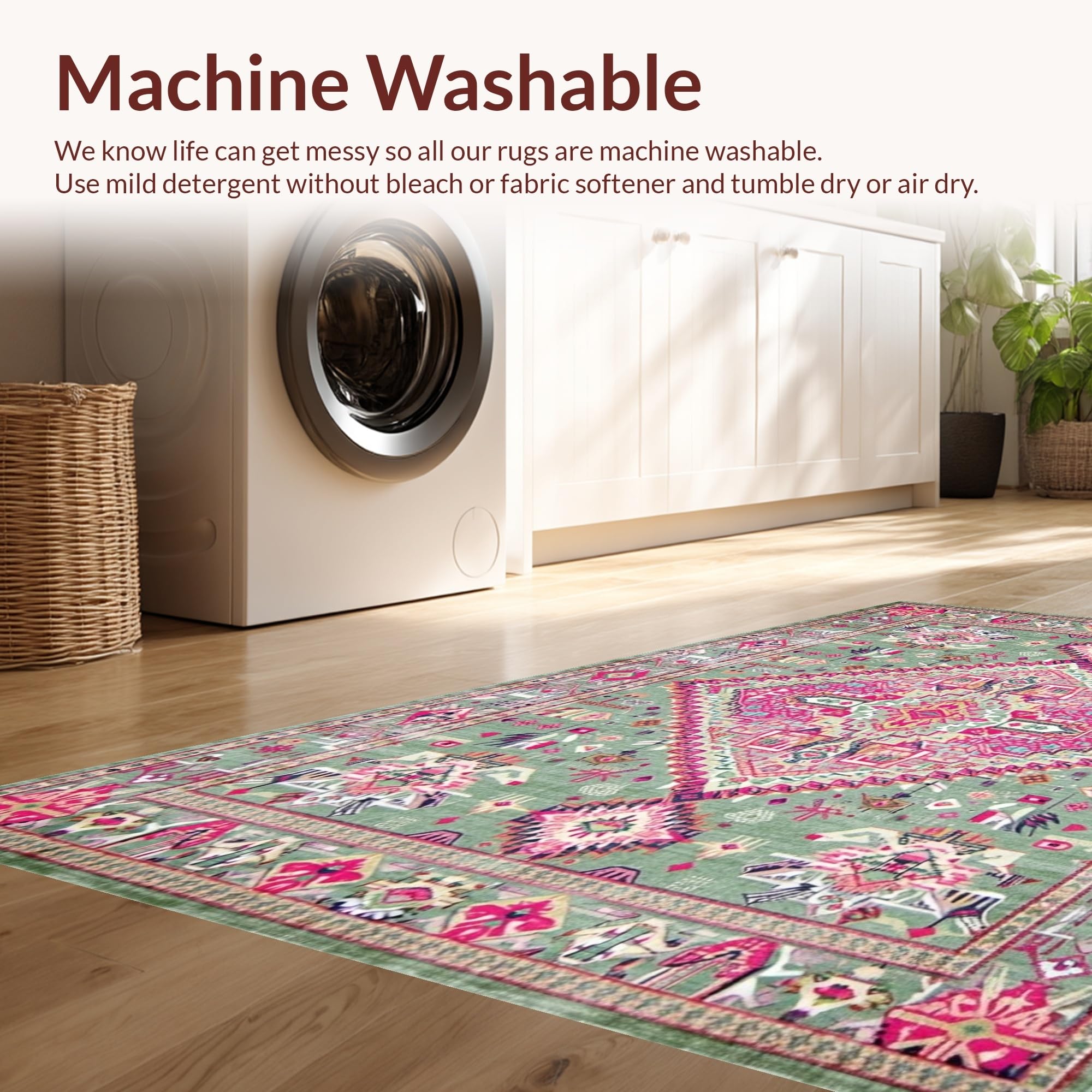 - Machine Washable: Our rugs can be easily thrown in the wash machine.