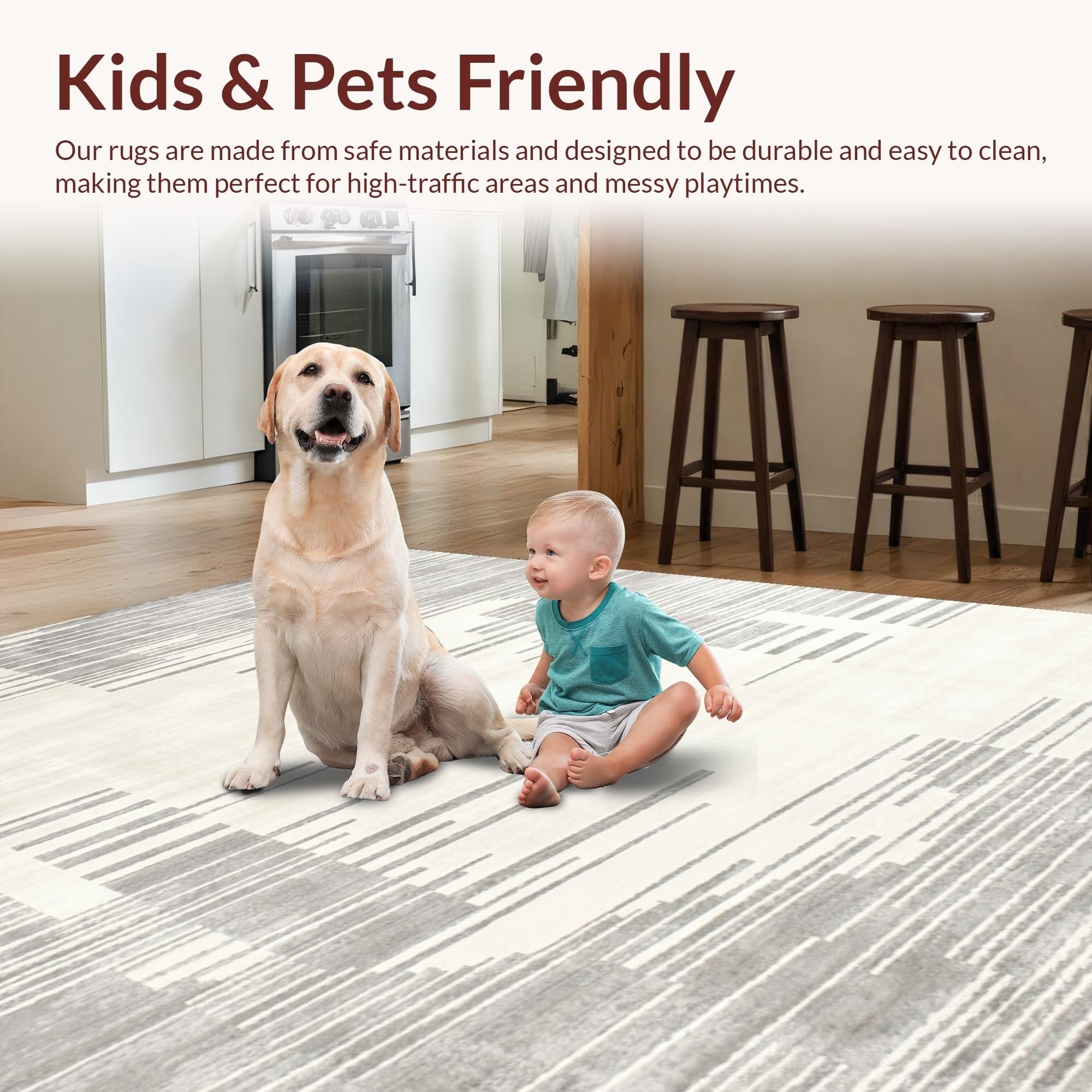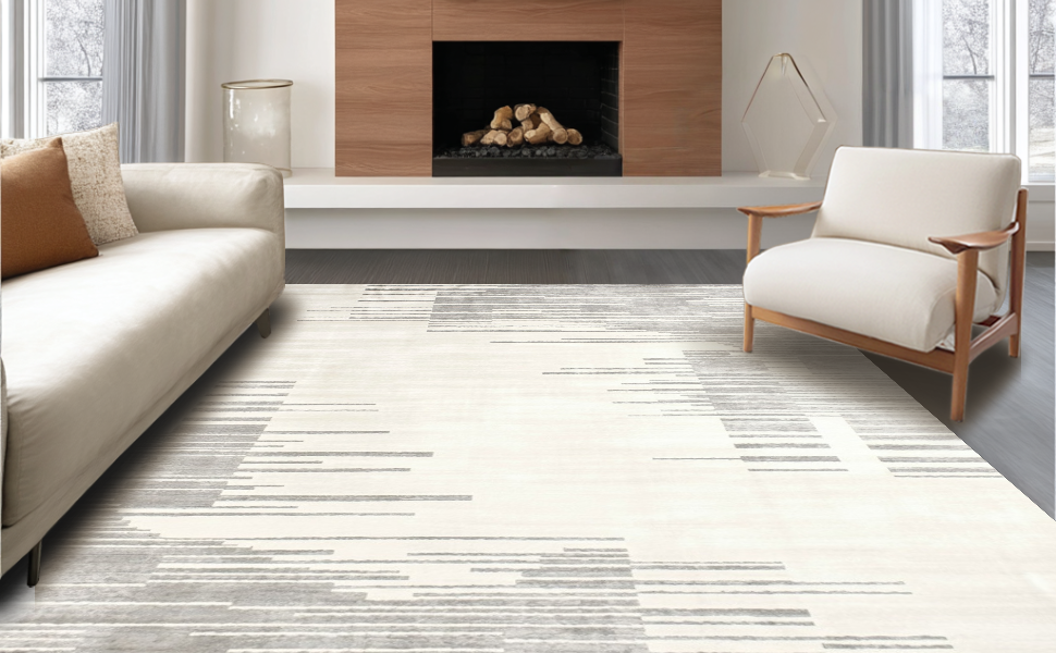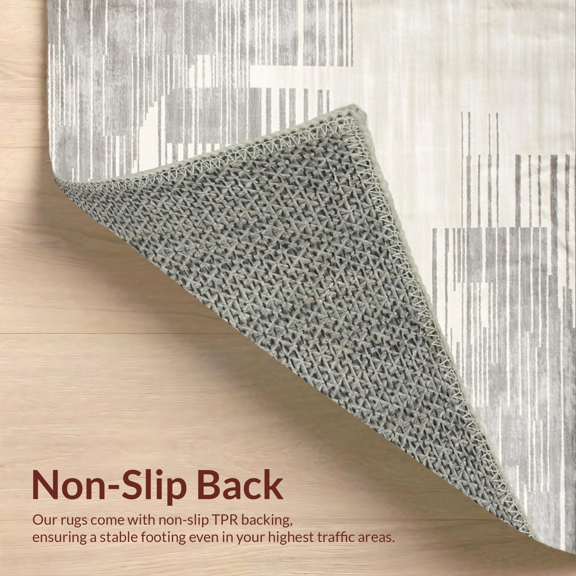 Ultra Soft Area Rug, Non Slip, Stain Resistant, Washable Area Rugs for Living Room, Bedroom, Modern Abstract Silver Hues(Gray) Overview: