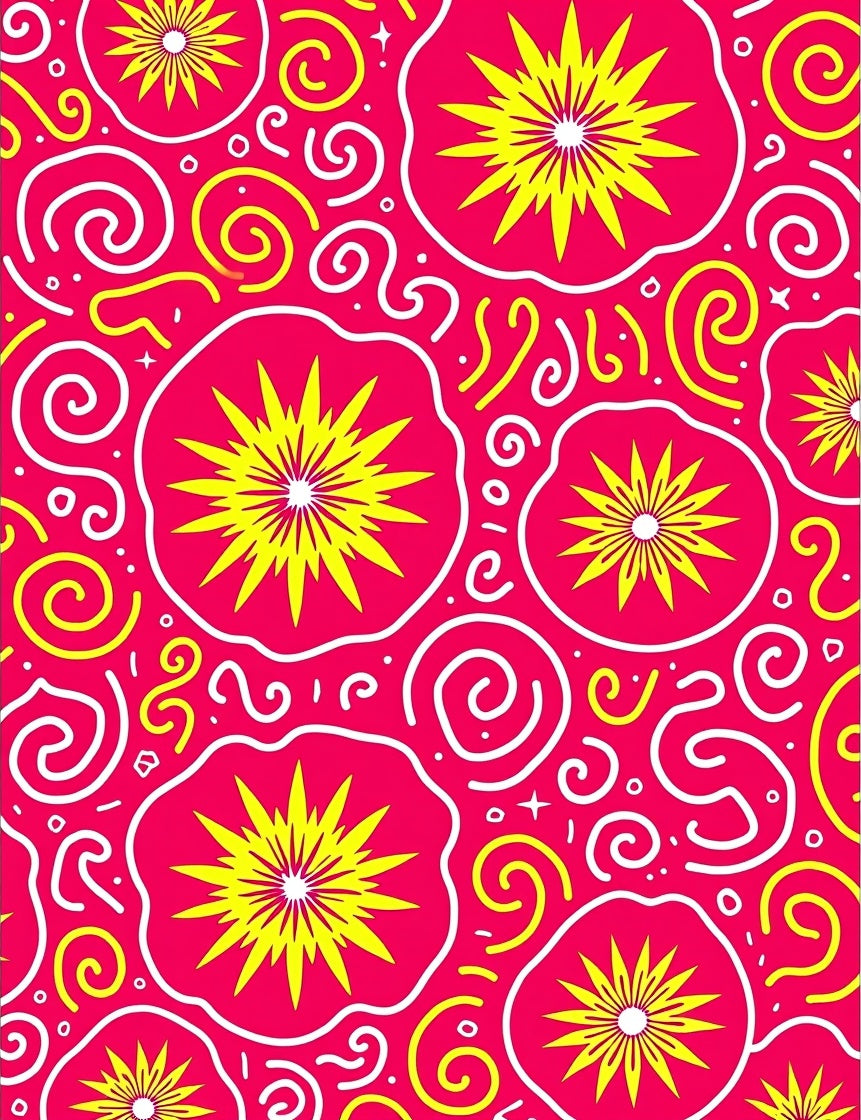 Modern Abstract Starburst Motif with Whimsical Swirl Details(Pink)