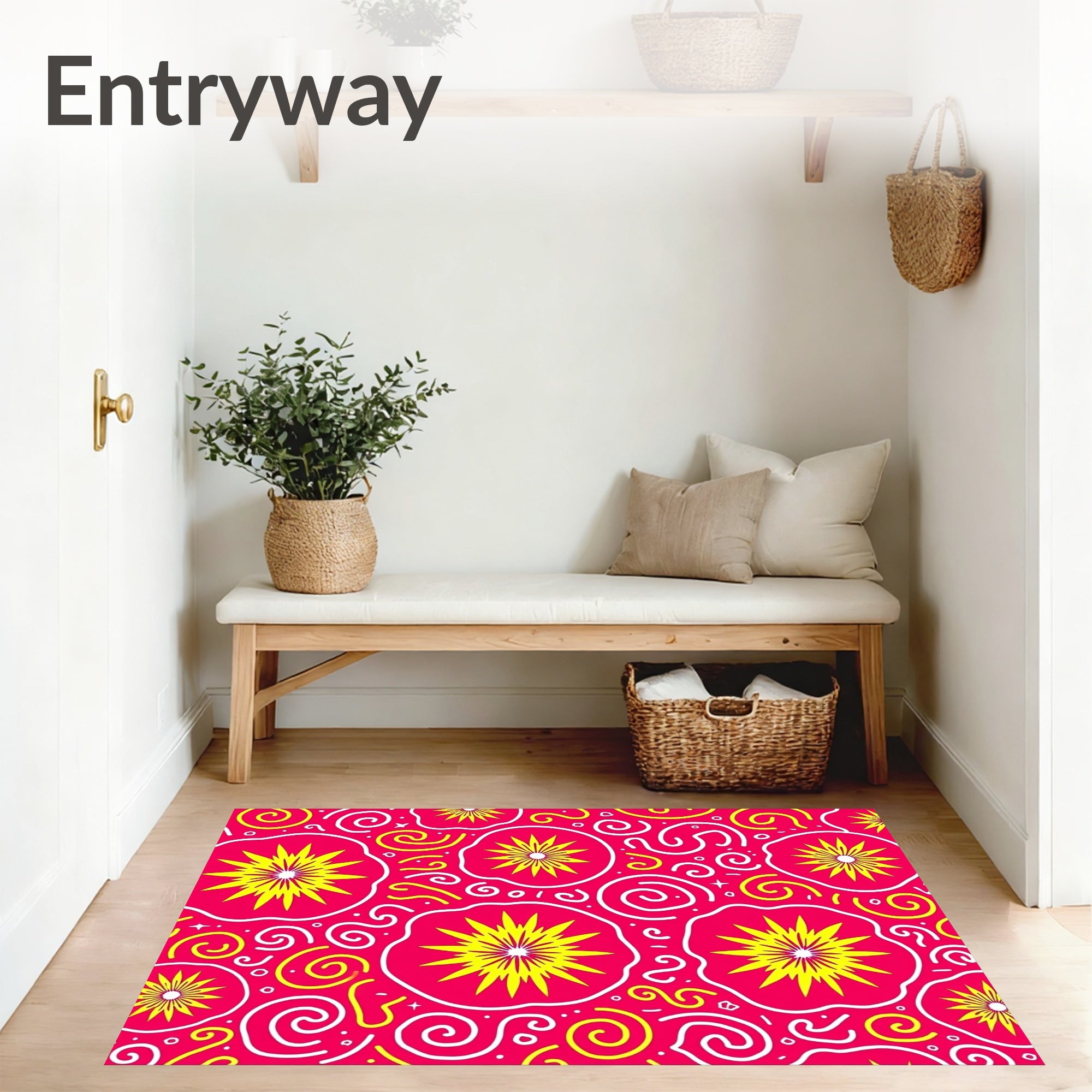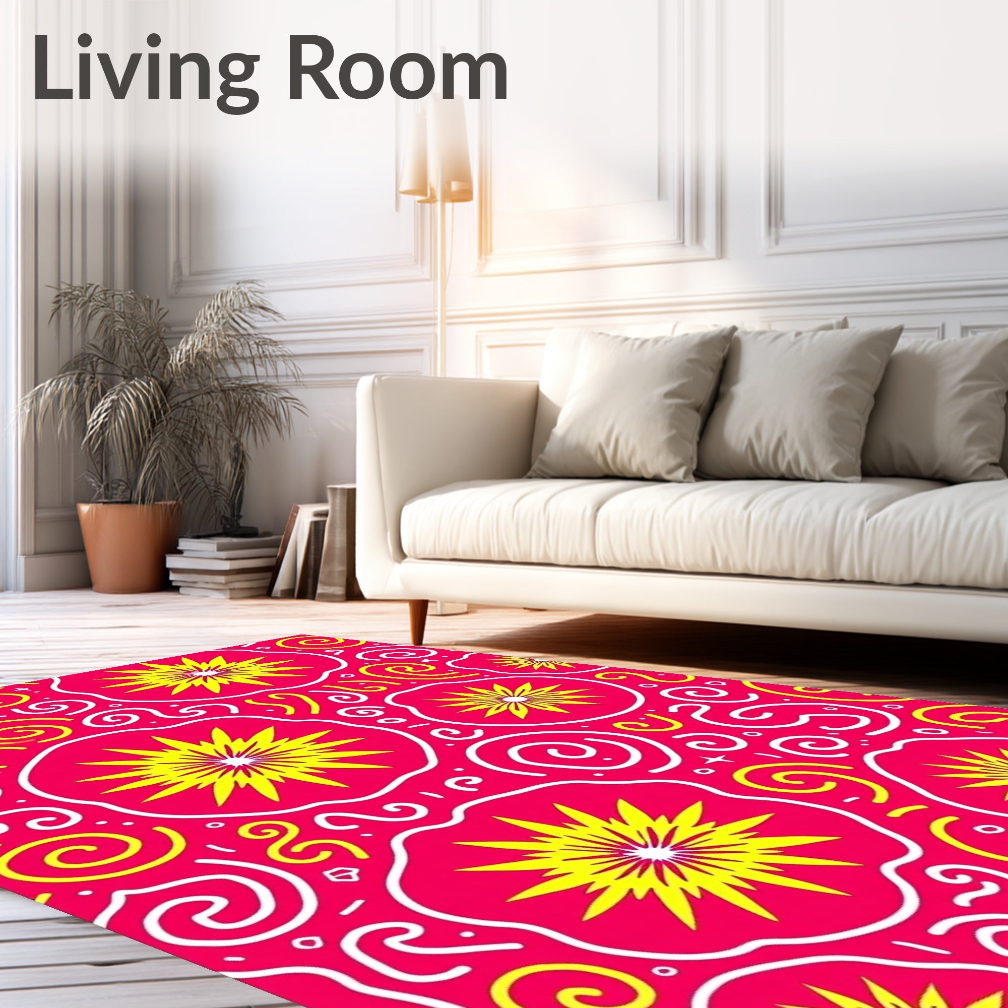 Ultra Soft Area Rug, Non Slip, Stain Resistant, Washable Area Rugs for Living Room, Bedroom, Modern Abstract Starburst Motif with Whimsical Swirl Details(Pink) Overview: