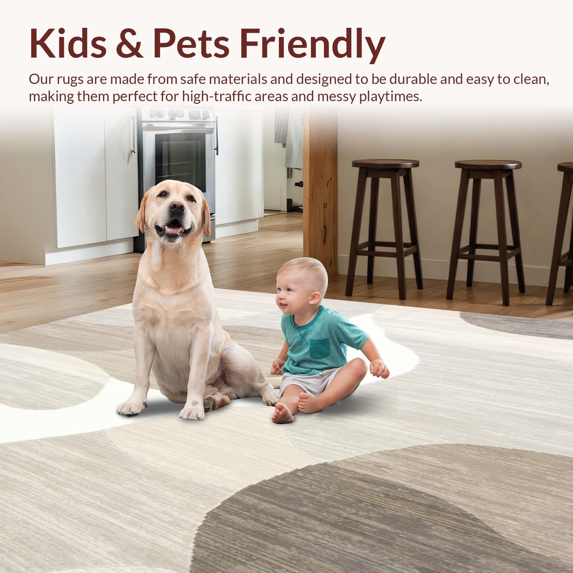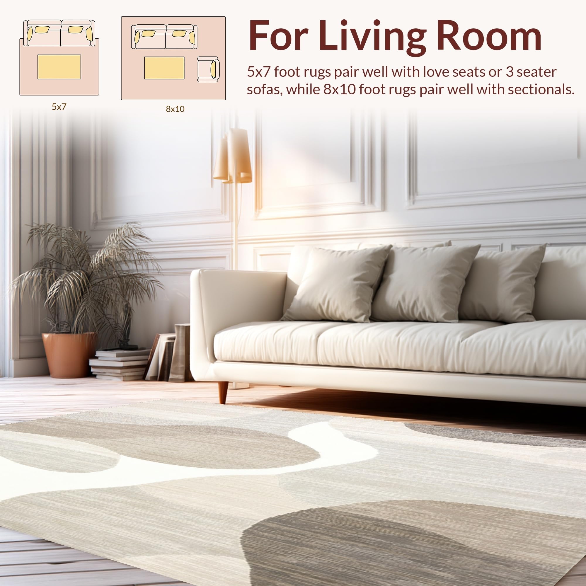 Ultra Soft Area Rug, Non Slip, Stain Resistant, Washable Area Rugs for Living Room, Bedroom, Modern Abstract Swirls Area for Contemporary Home Decor(Beige) Overview: