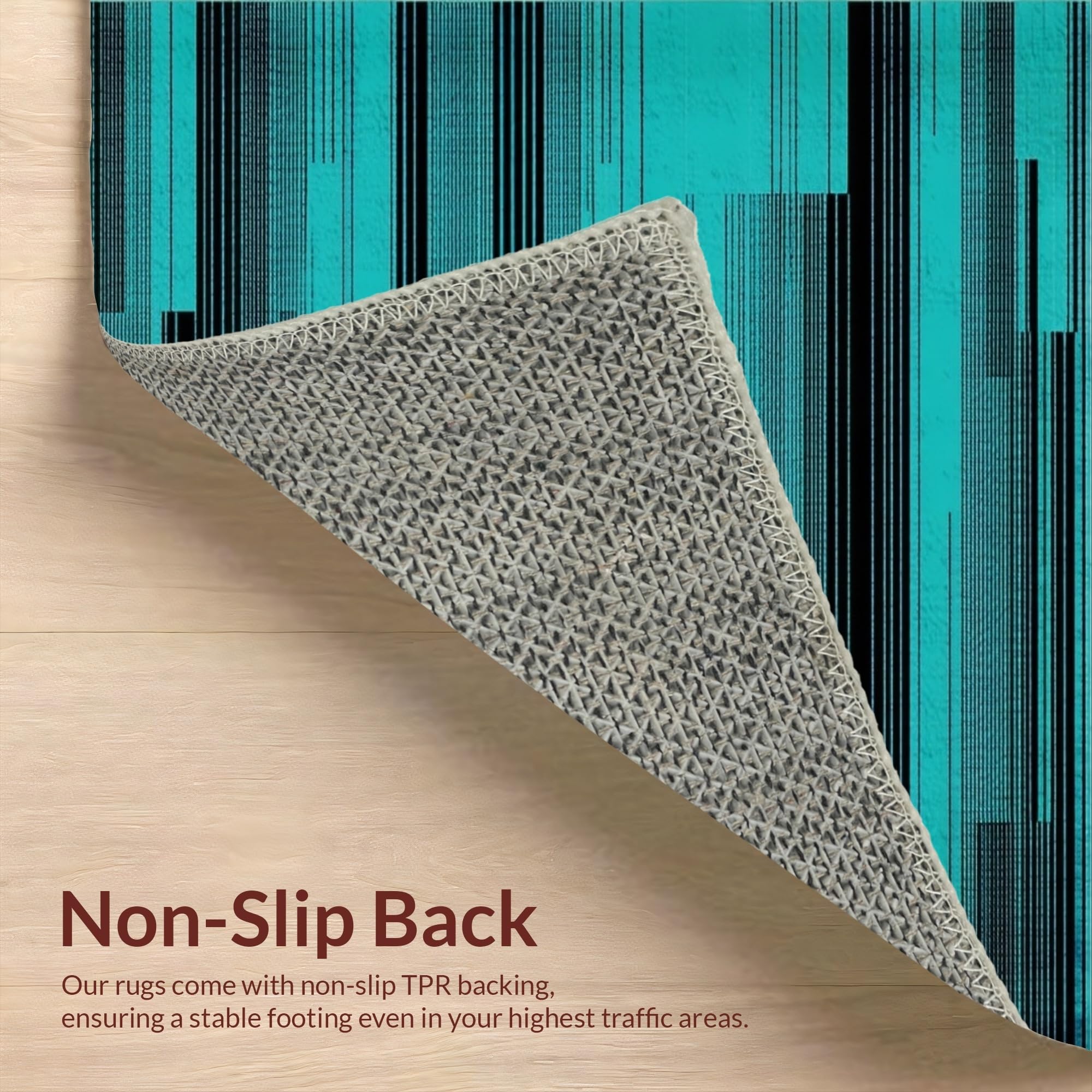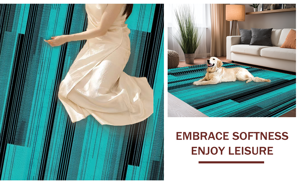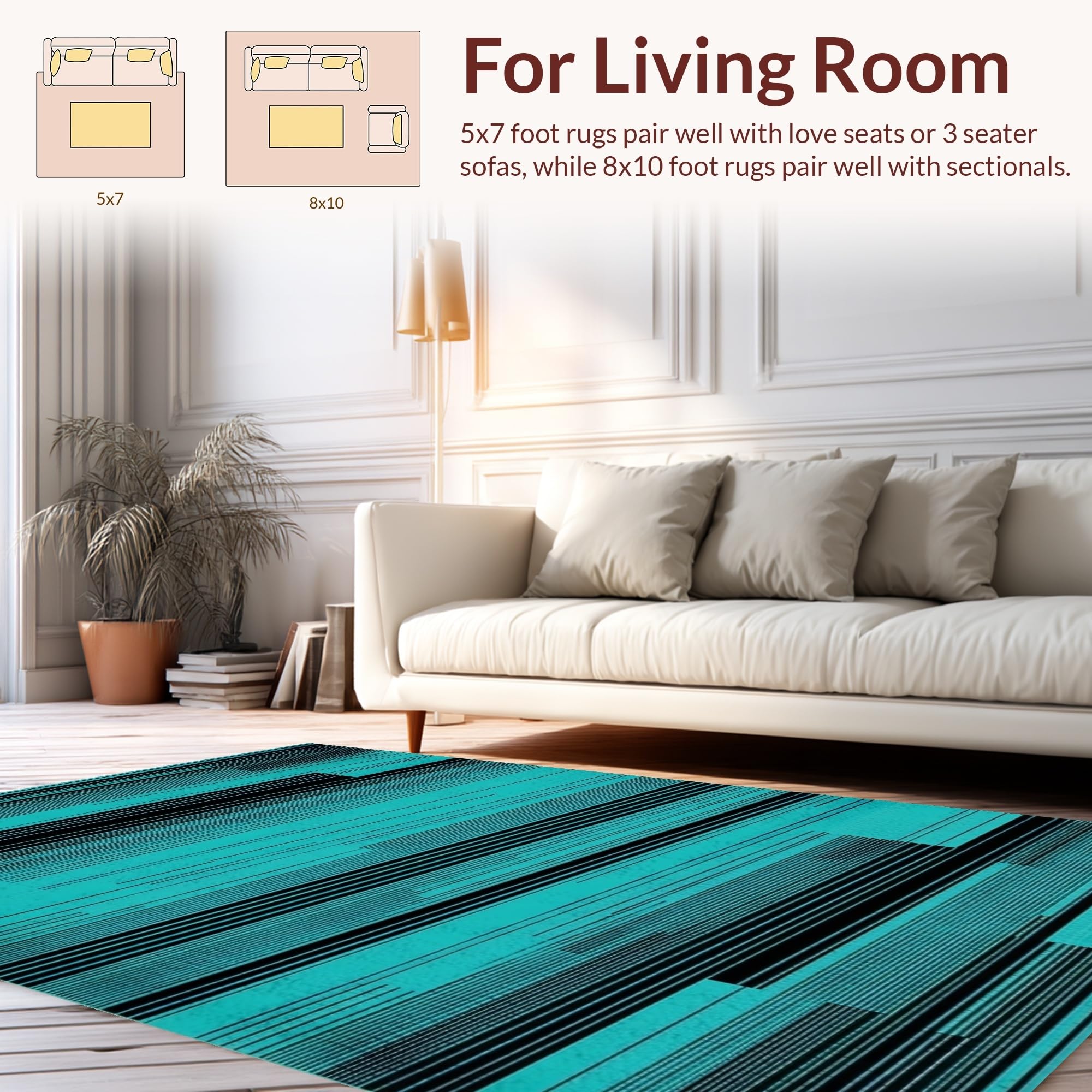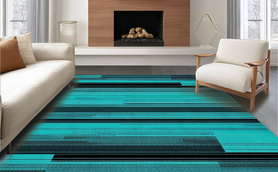 Ultra Soft Area Rug, Non Slip, Stain Resistant, Washable Area Rugs for Living Room, Bedroom, Modern Abstract Teal and Black(Blue) Overview: