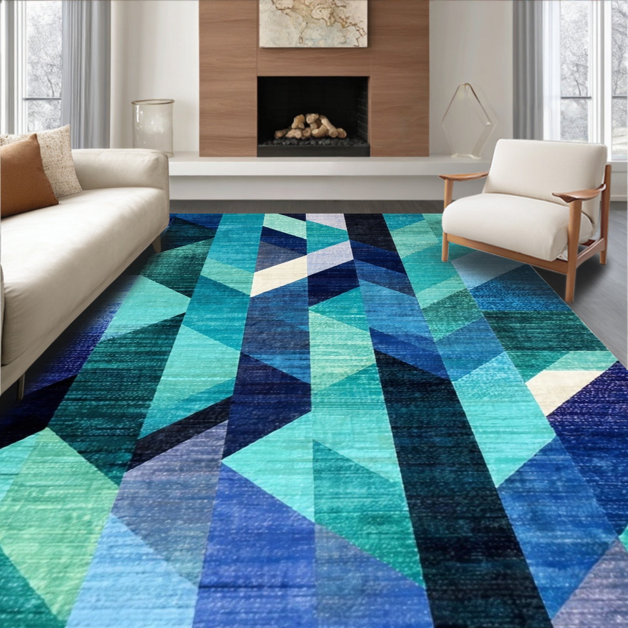 Flatwoven High Traffic Area Rug, Modern Abstract Teal Geometric Ombre Design, Non Slip, Stain Resistant, Washable Area Rugs for Living Room, Bedroom (Blue) Overview: