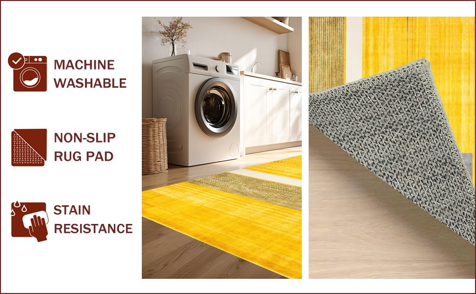 Ultra Soft Area Rug, Non Slip, Stain Resistant, Washable Area Rugs for Living Room, Bedroom, Modern Abstract Tiled Arrangement(Yellow) Overview: