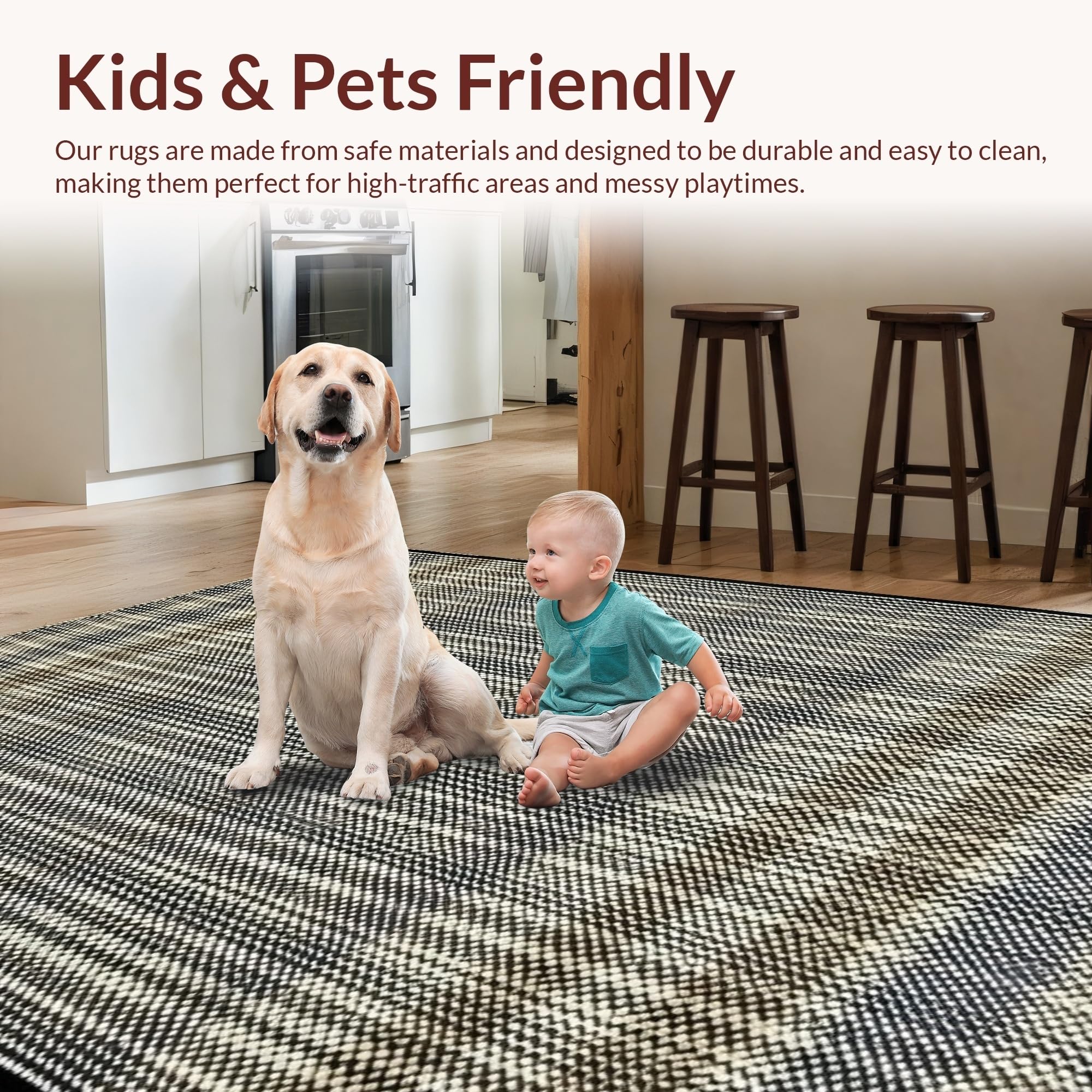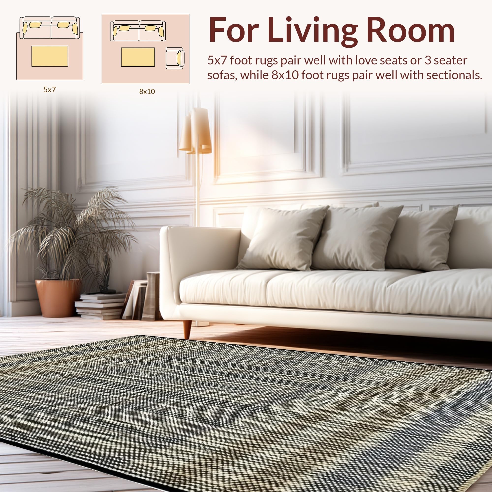 Ultra Soft Area Rug, Non Slip, Stain Resistant, Washable Area Rugs for Living Room, Bedroom, Modern Abstract Two-Tone Elegance(Gray) Overview: