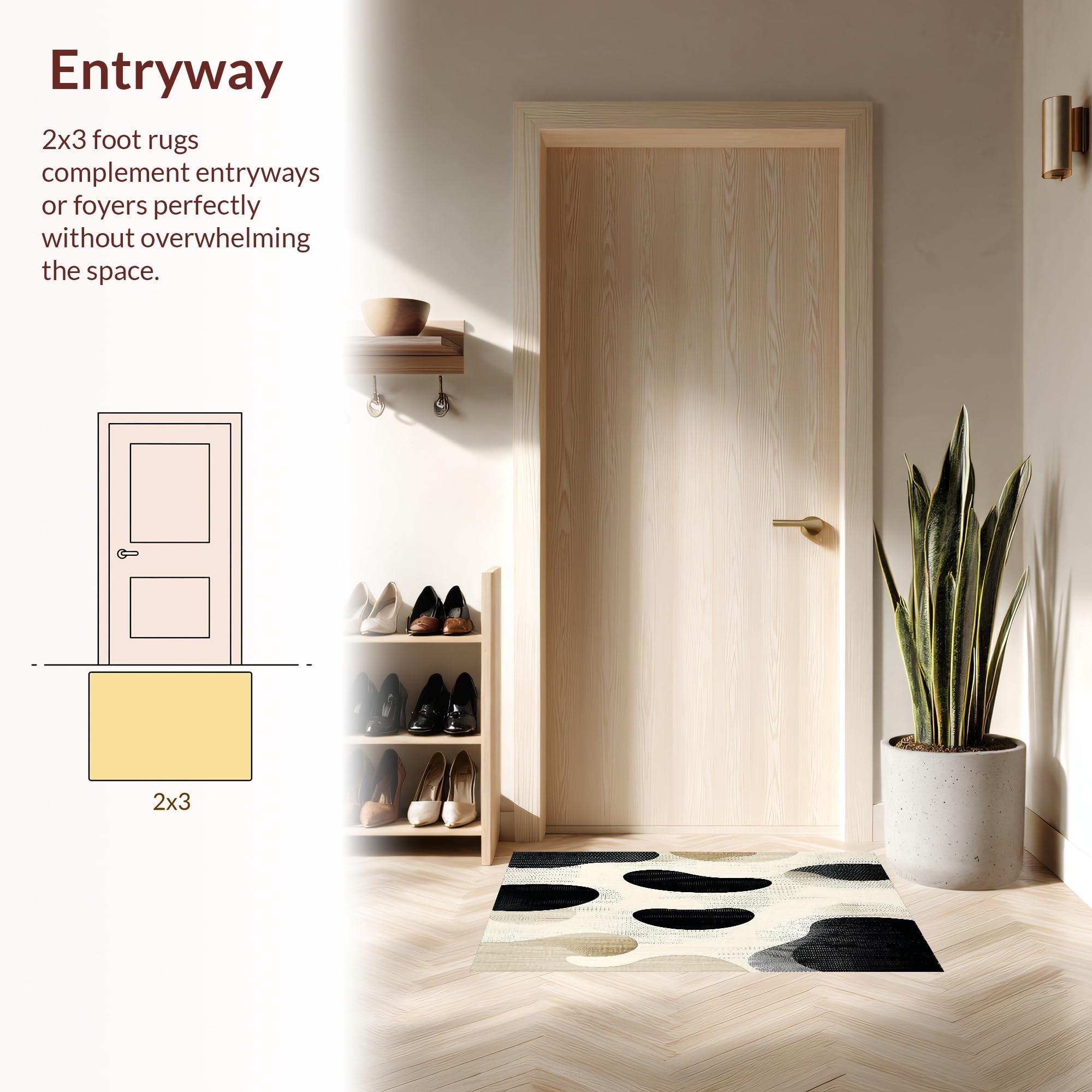 Ultra Soft Area Rug, Non Slip, Stain Resistant, Washable Area Rugs for Living Room, Bedroom, Modern Abstract Wavy Area Chic Beige Black Contour(Beige) Overview:
