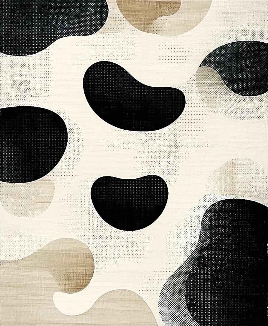 Modern Abstract Wavy Area Chic Beige Black Contour(Beige)