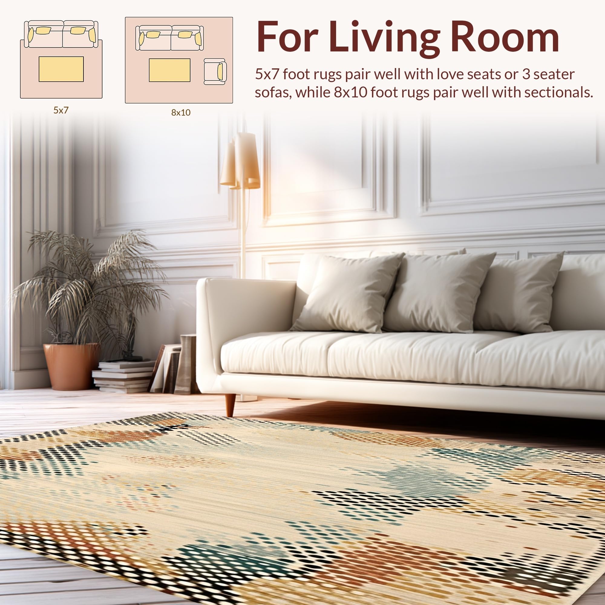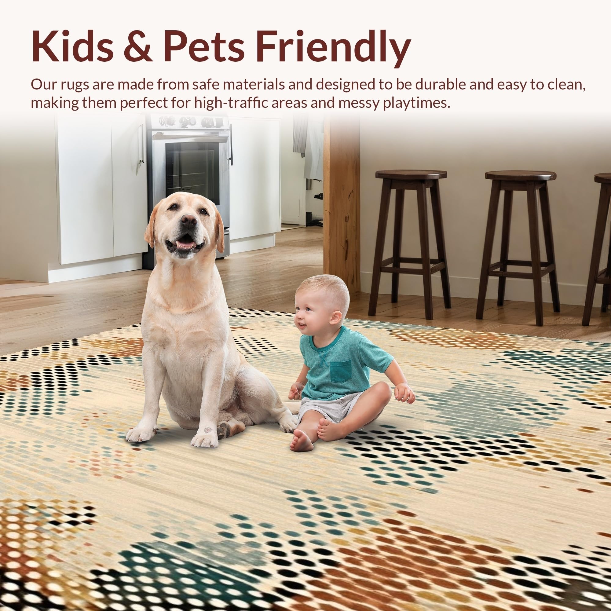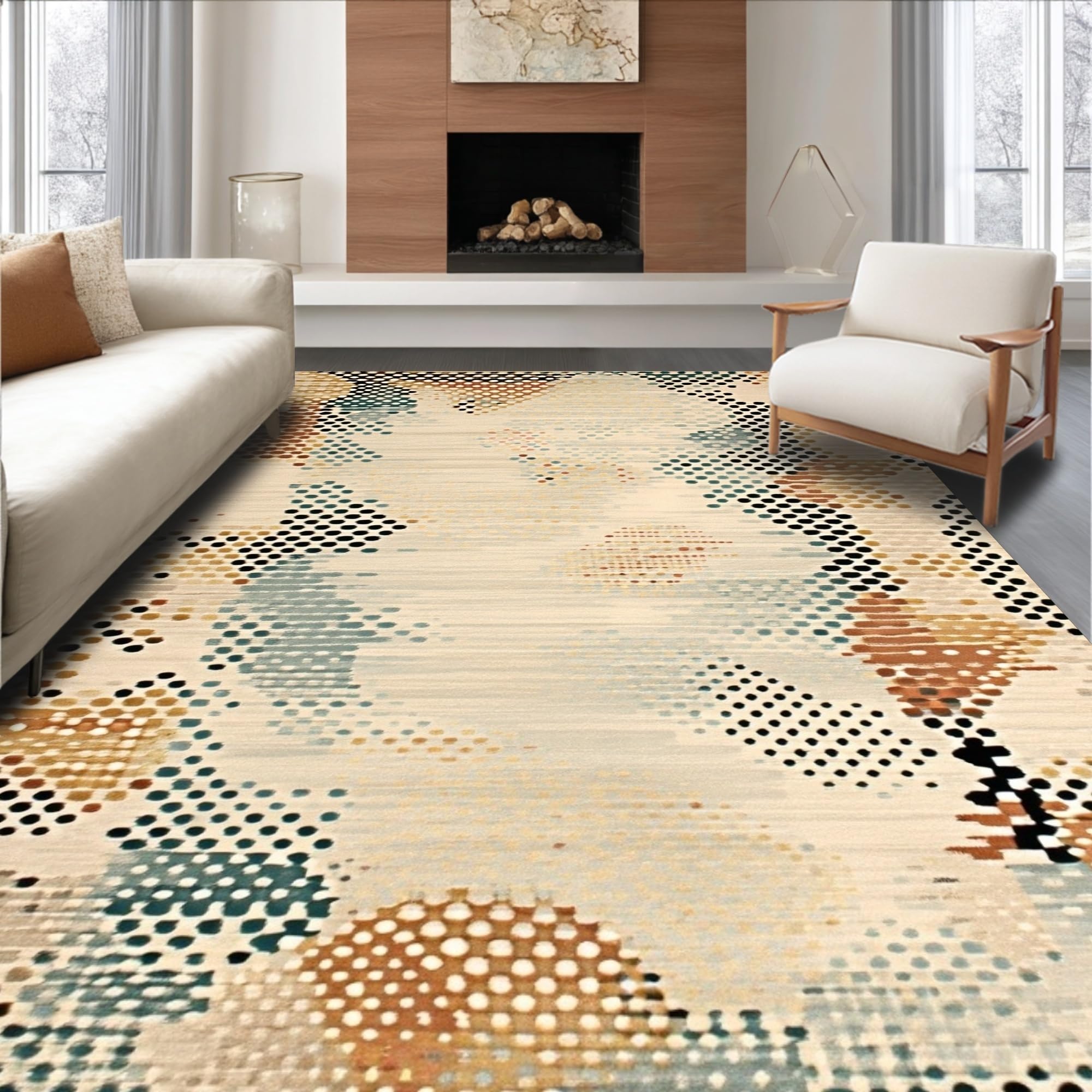 Ultra Soft Area Rug, Non Slip, Stain Resistant, Washable Area Rugs for Living Room, Bedroom, Modern Animal Print Beige Brown Geometric Spotted(Beige) Overview: