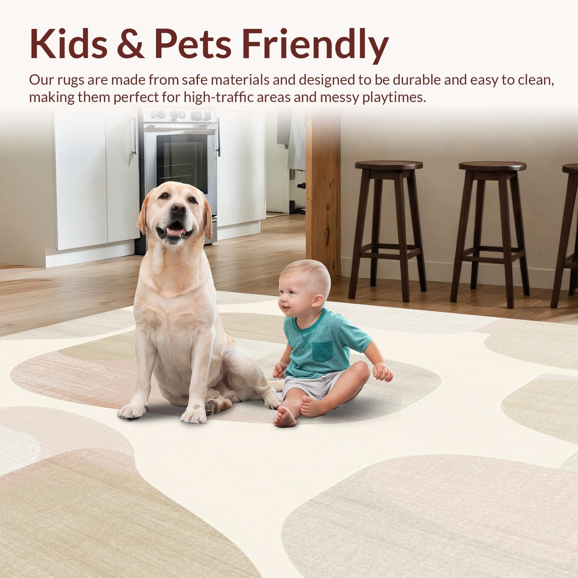 Ultra Soft Area Rug, Non Slip, Stain Resistant, Washable Area Rugs for Living Room, Bedroom, Modern Archway Area with Curved Geometric Lines and Contemporary Shapes(Beige) Overview: