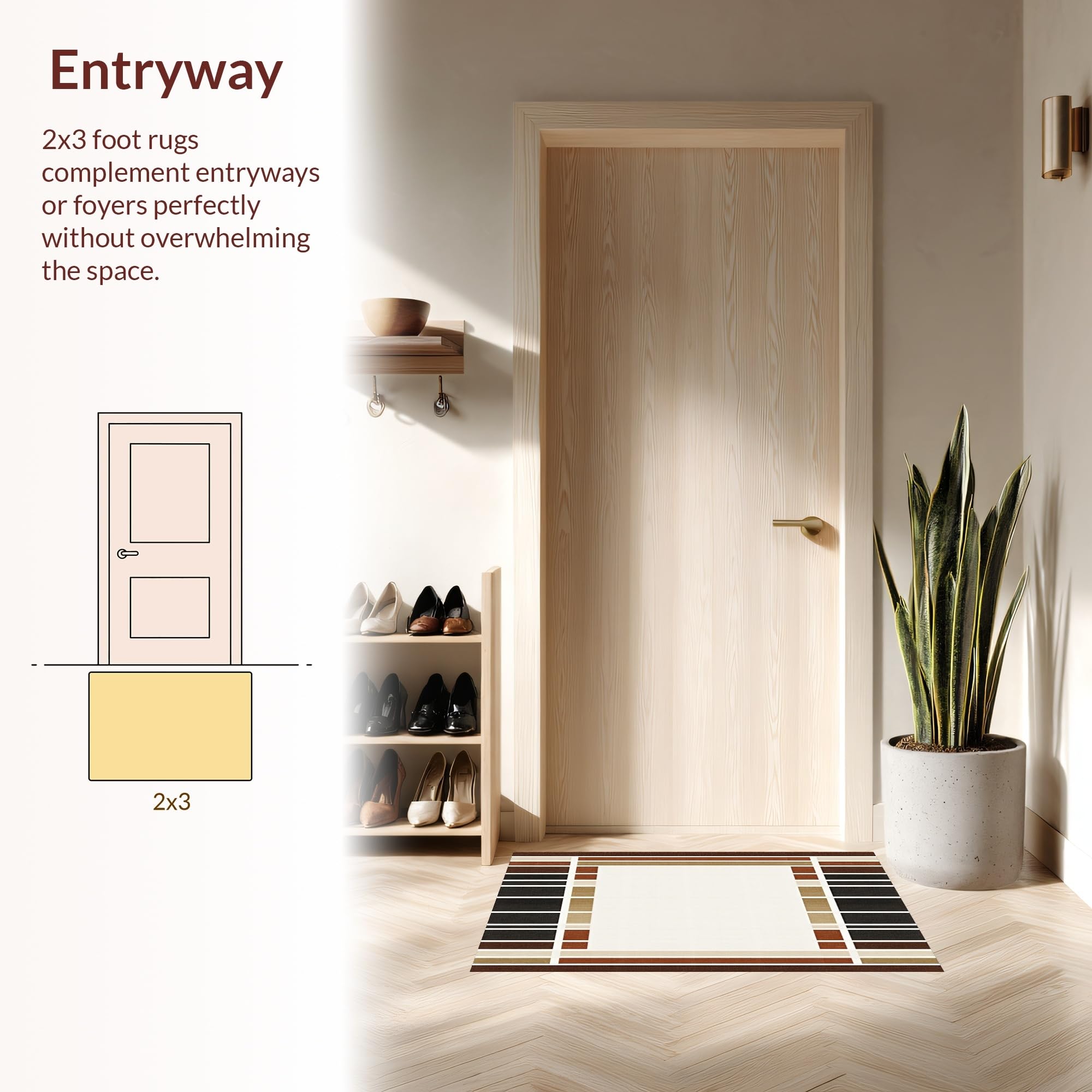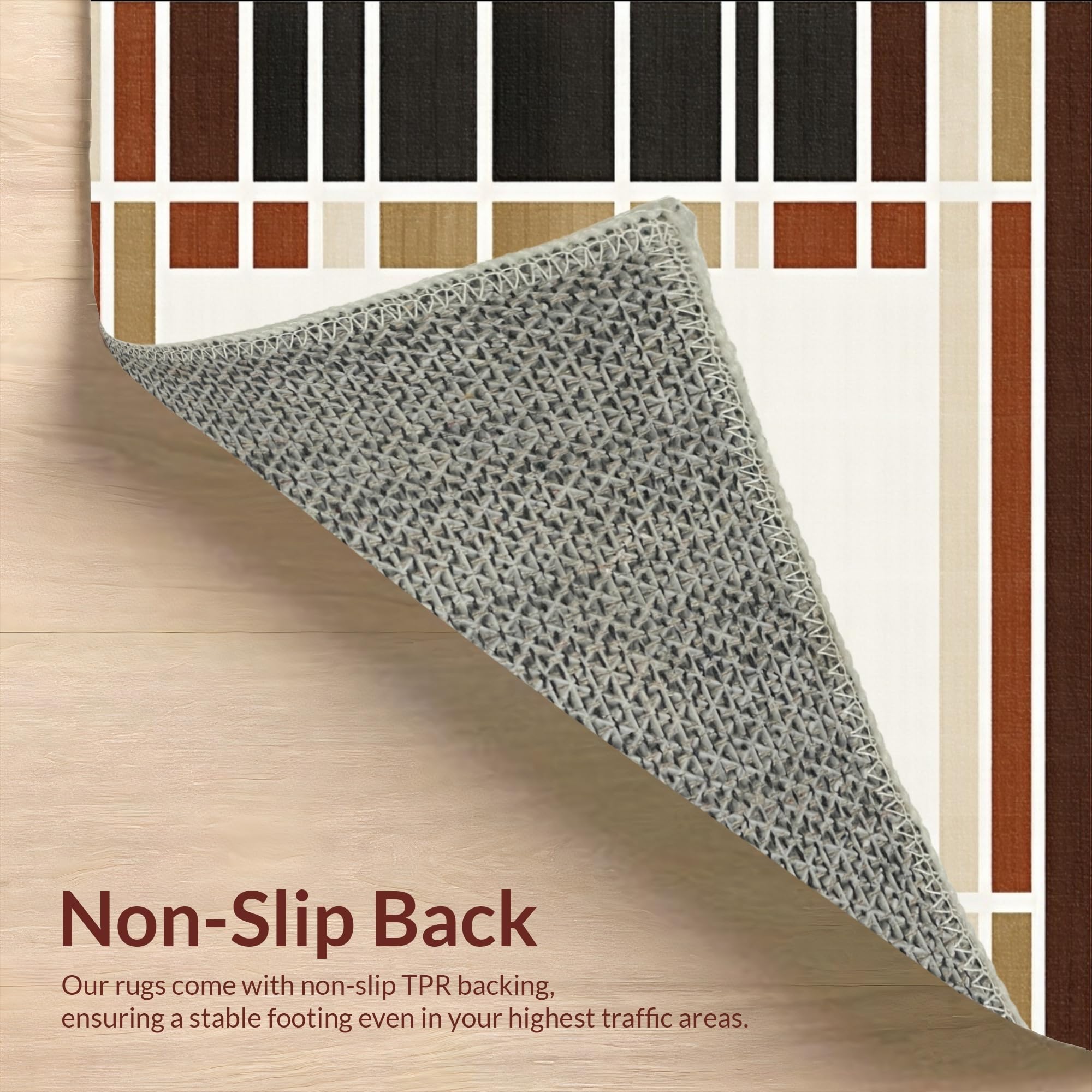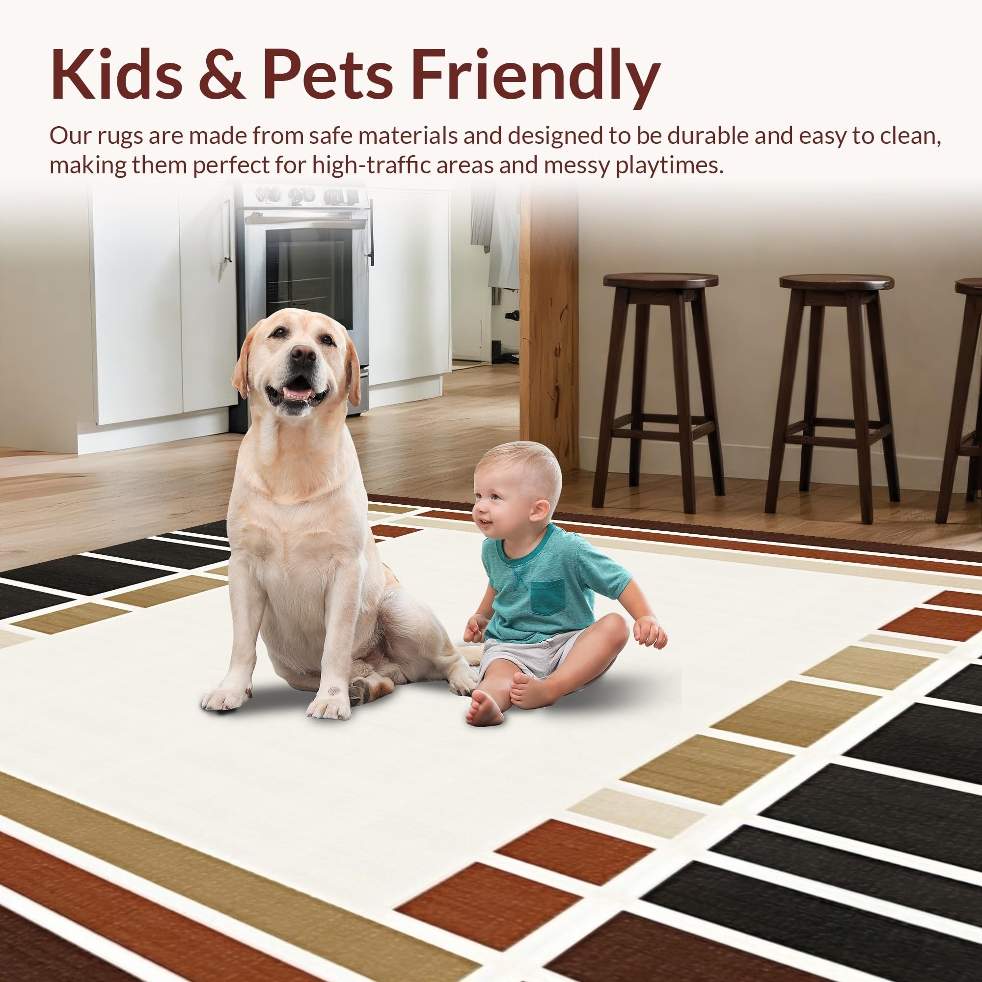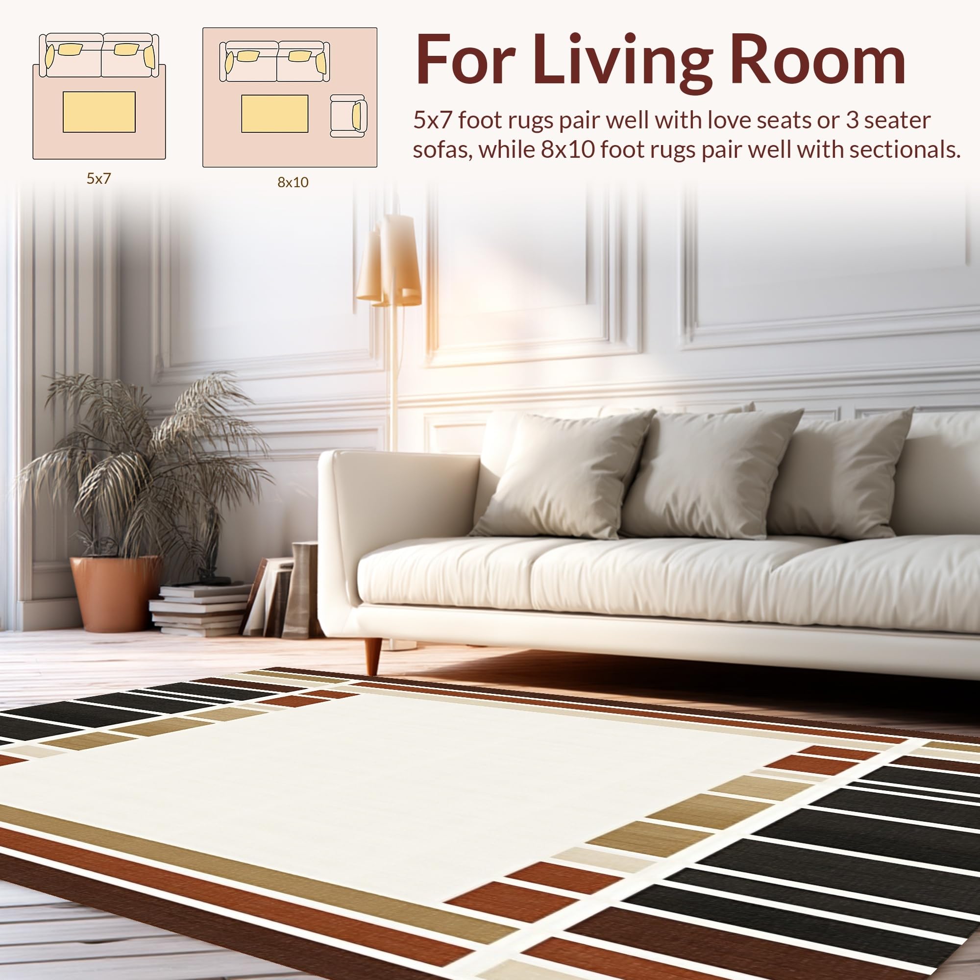 Ultra Soft Area Rug, Non Slip, Stain Resistant, Washable Area Rugs for Living Room, Bedroom, Modern Area Featuring Abstract Linear Borders(Beige) Overview: