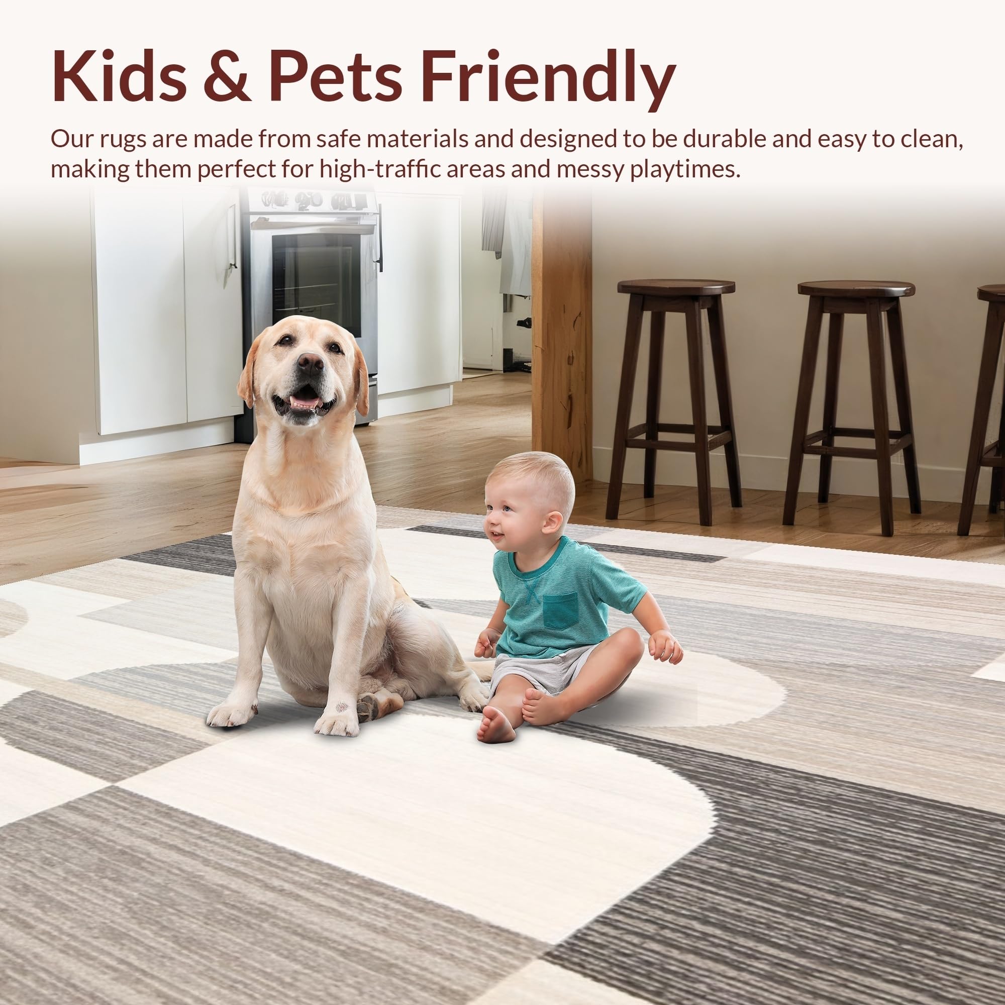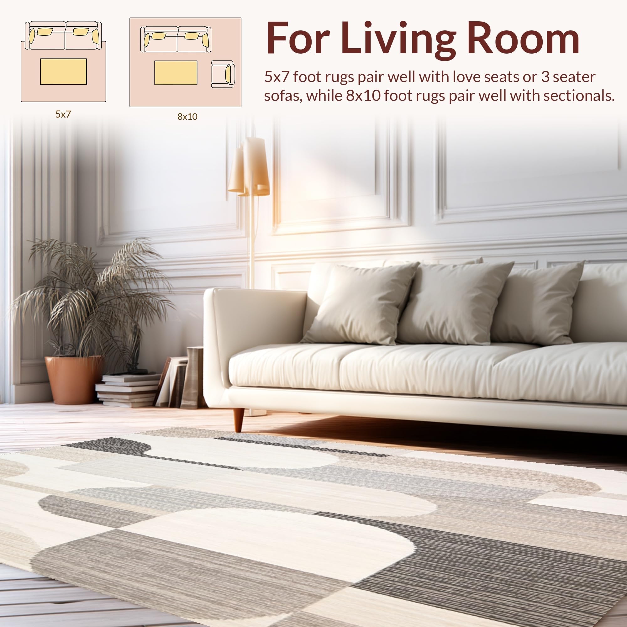 Ultra Soft Area Rug, Non Slip, Stain Resistant, Washable Area Rugs for Living Room, Bedroom, Modern Area Featuring Bold Lines and Geometric Shapes in Beige Grey(Beige) Overview: