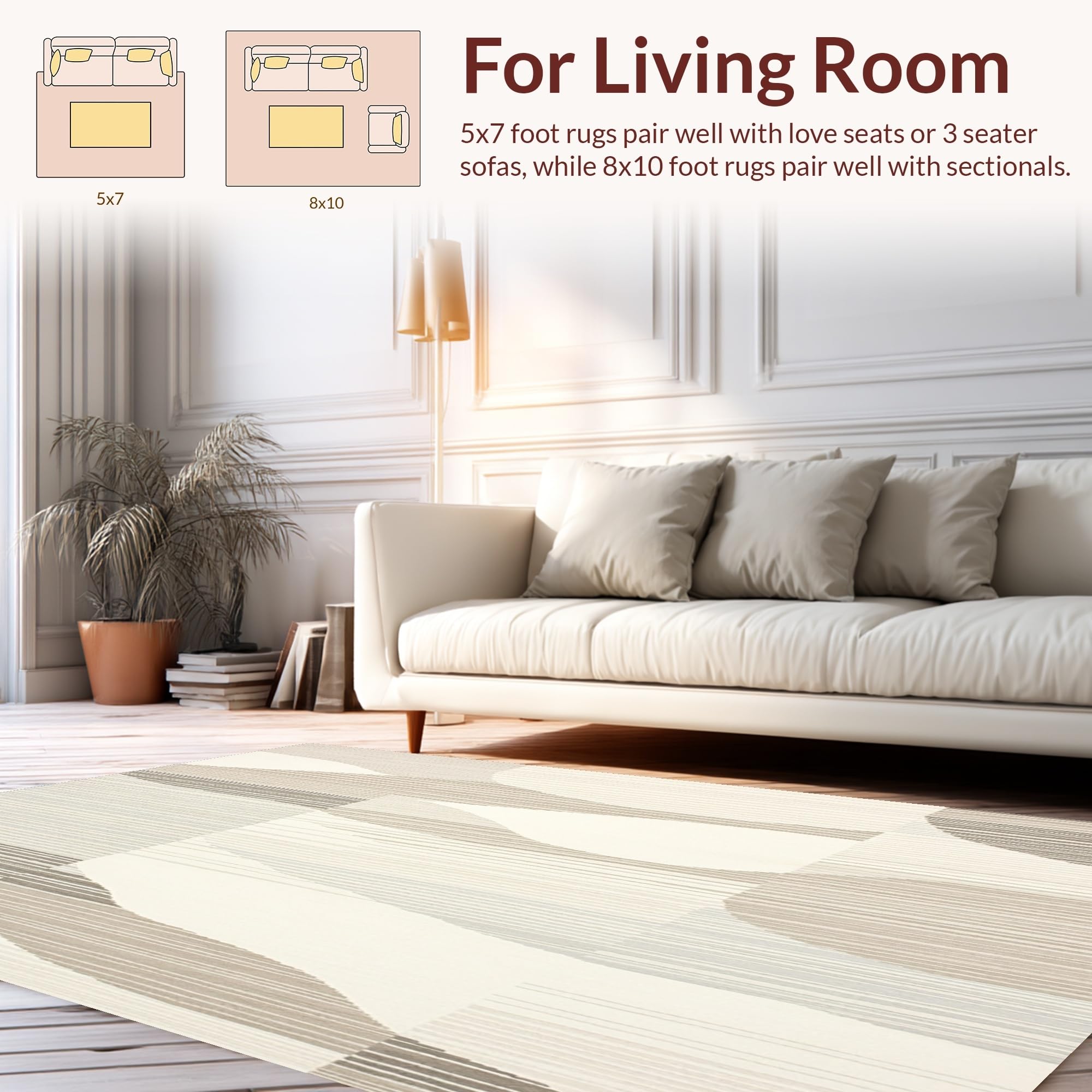 Ultra Soft Area Rug, Non Slip, Stain Resistant, Washable Area Rugs for Living Room, Bedroom, Modern Area Featuring Elegant Abstract Lines and Aesthetic Vibe(Beige) Overview:
