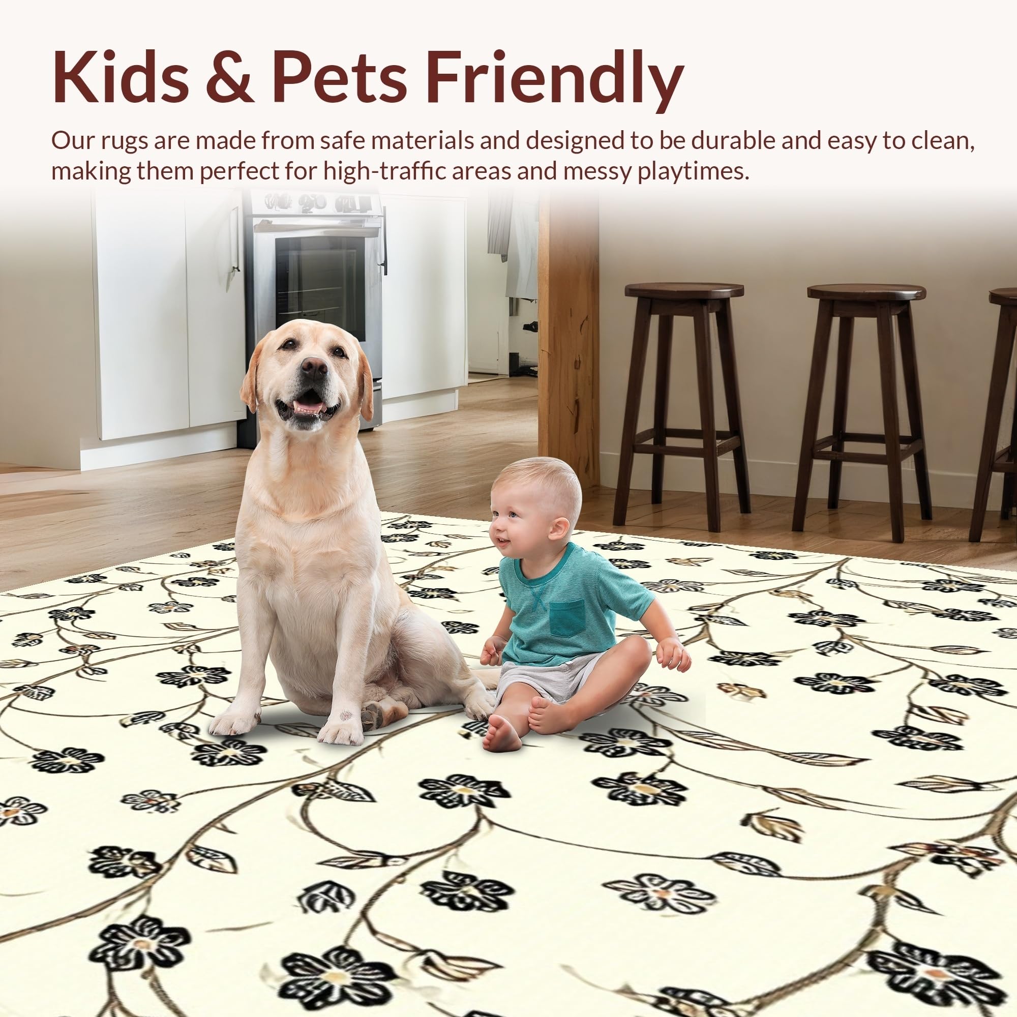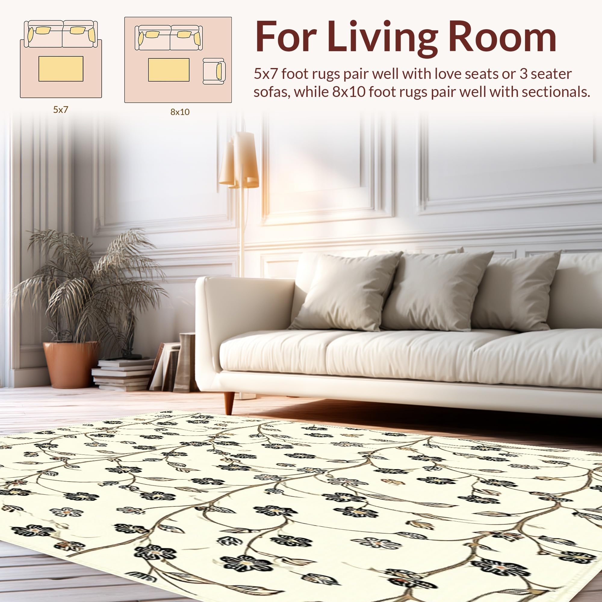 Ultra Soft Area Rug, Non Slip, Stain Resistant, Washable Area Rugs for Living Room, Bedroom, Modern Area for Living Stylish Black & Beige Reversible Design(Beige) Overview: