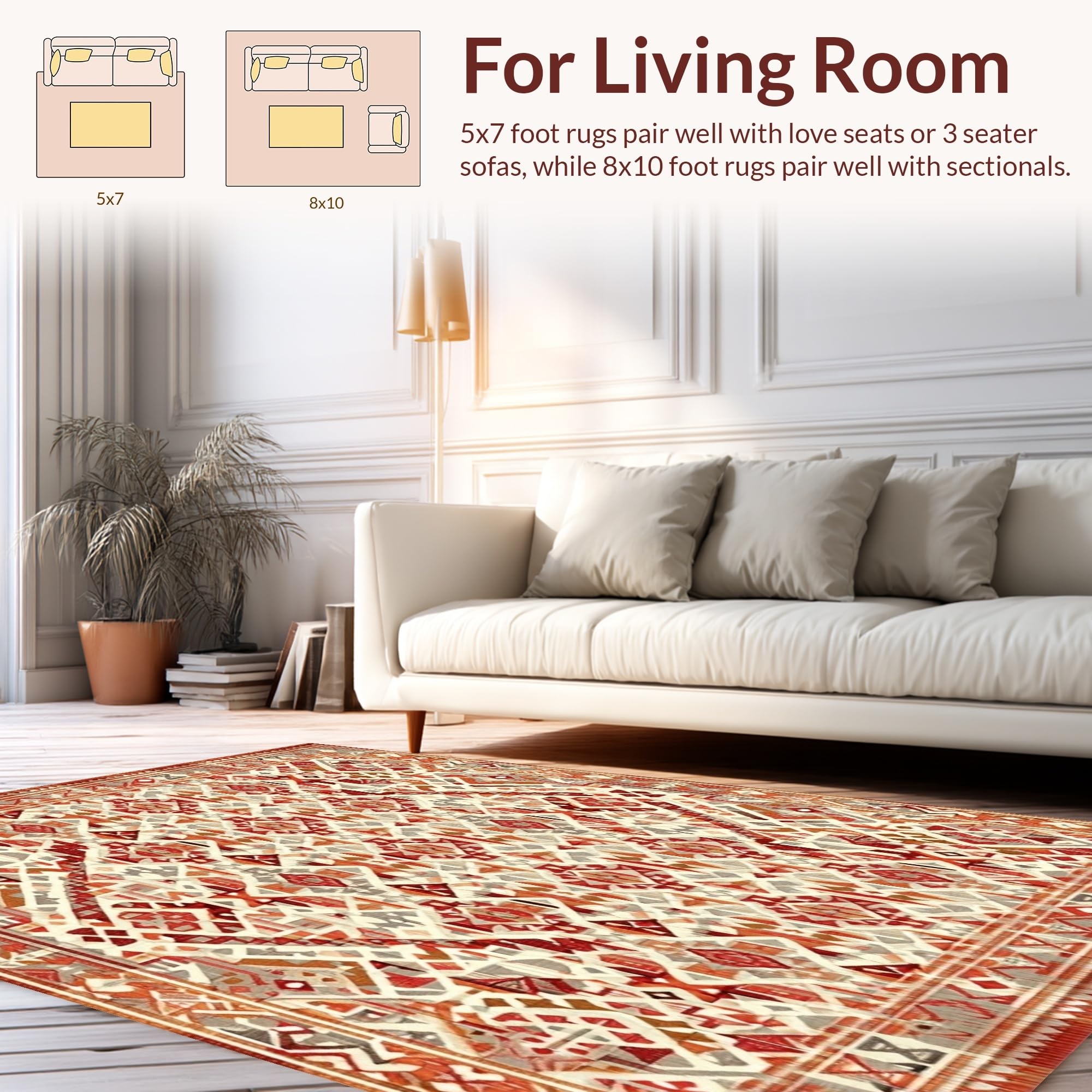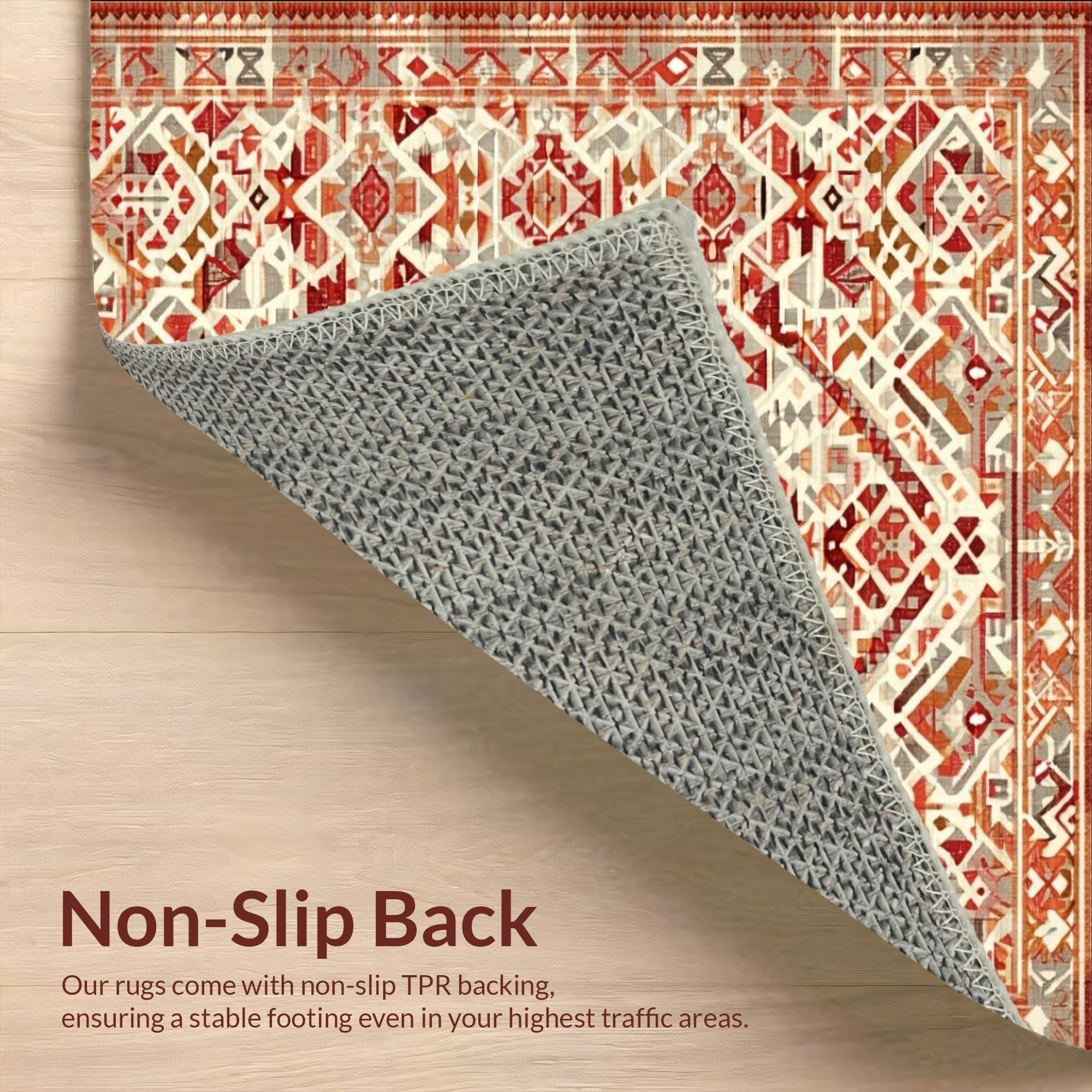 Ultra Soft Area Rug, Non Slip, Stain Resistant, Washable Area Rugs for Living Room, Bedroom, Modern Area with Distinctive Inspired in Warm Shades(Red) Overview: