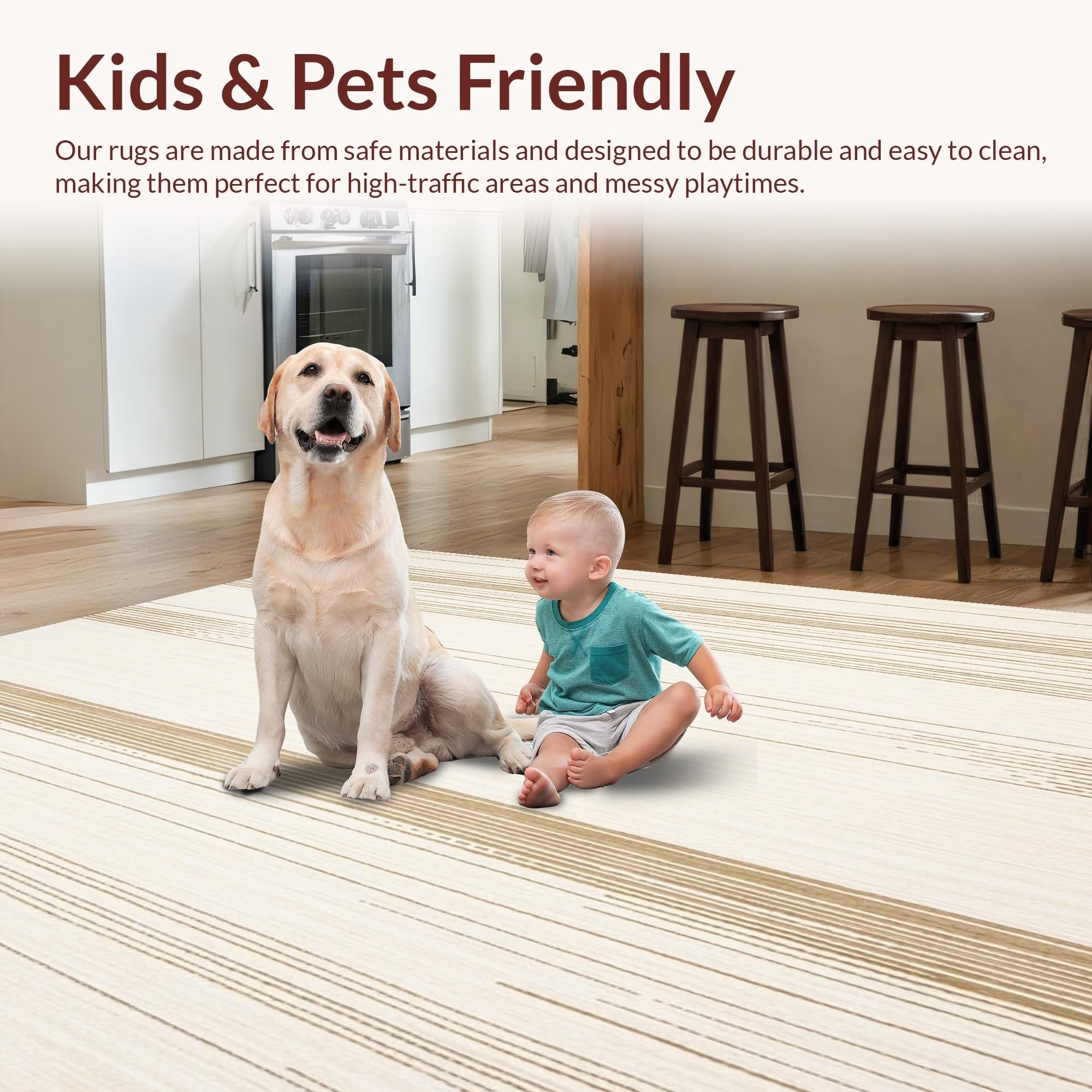 Ultra Soft Area Rug, Non Slip, Stain Resistant, Washable Area Rugs for Living Room, Bedroom, Modern Area with Minimalist Line Art in Subtle Tan and White Shades(Beige) Overview: