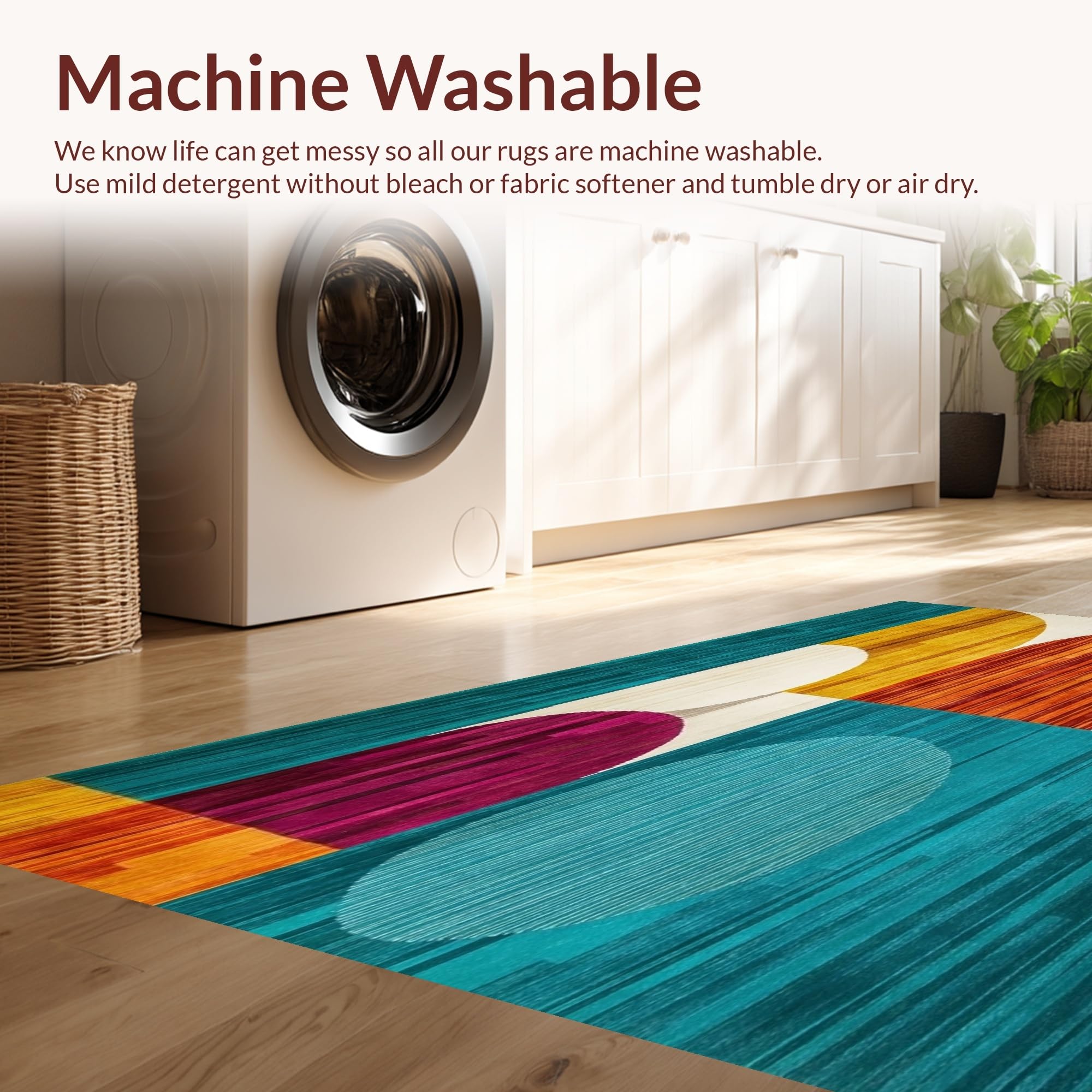 - Machine Washable: Our rugs can be easily thrown in the wash machine.