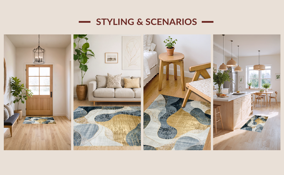 Ultra Soft Area Rug, Non Slip, Stain Resistant, Washable Area Rugs for Living Room, Bedroom, Modern Artistic Grey Gold Fusion(Gray) Overview: