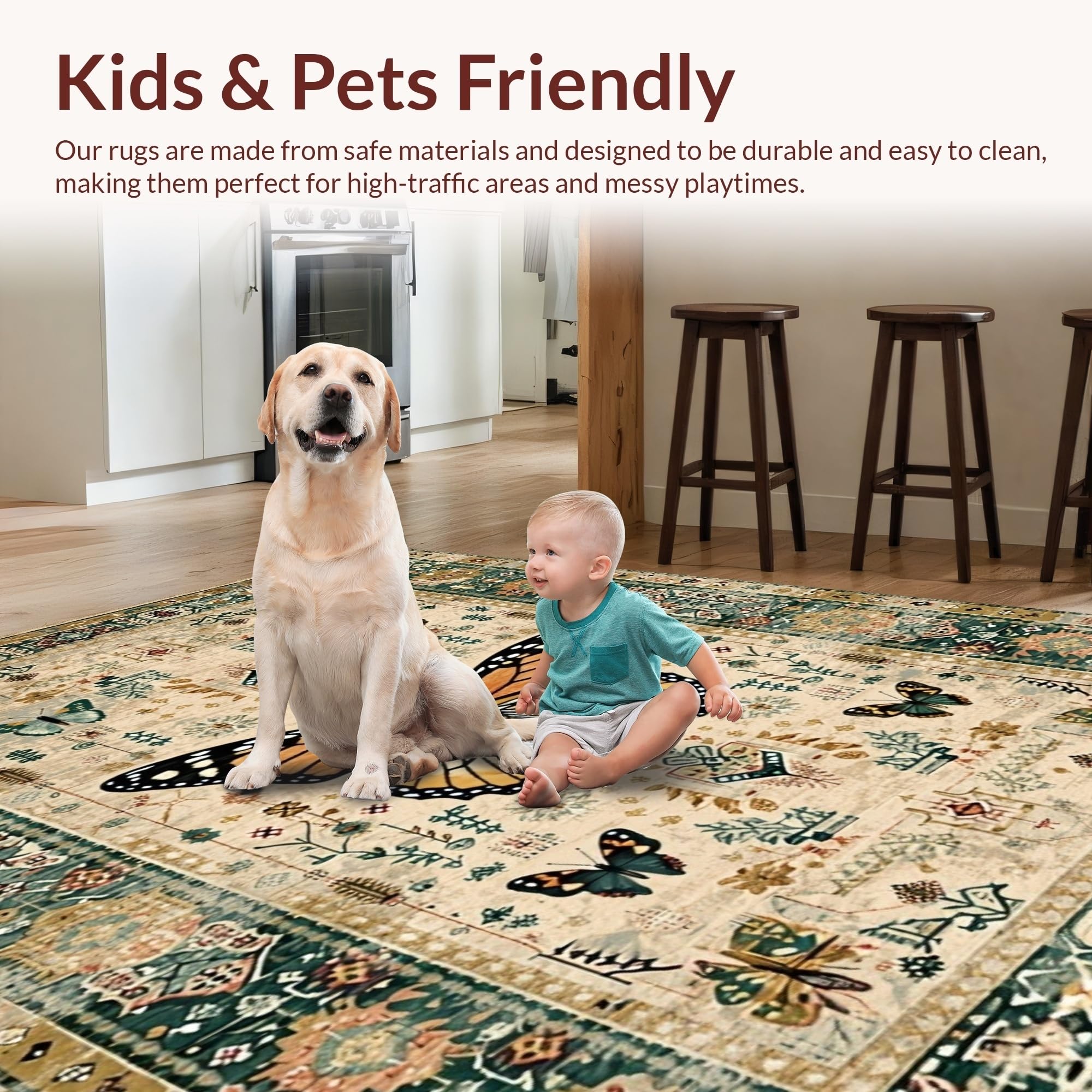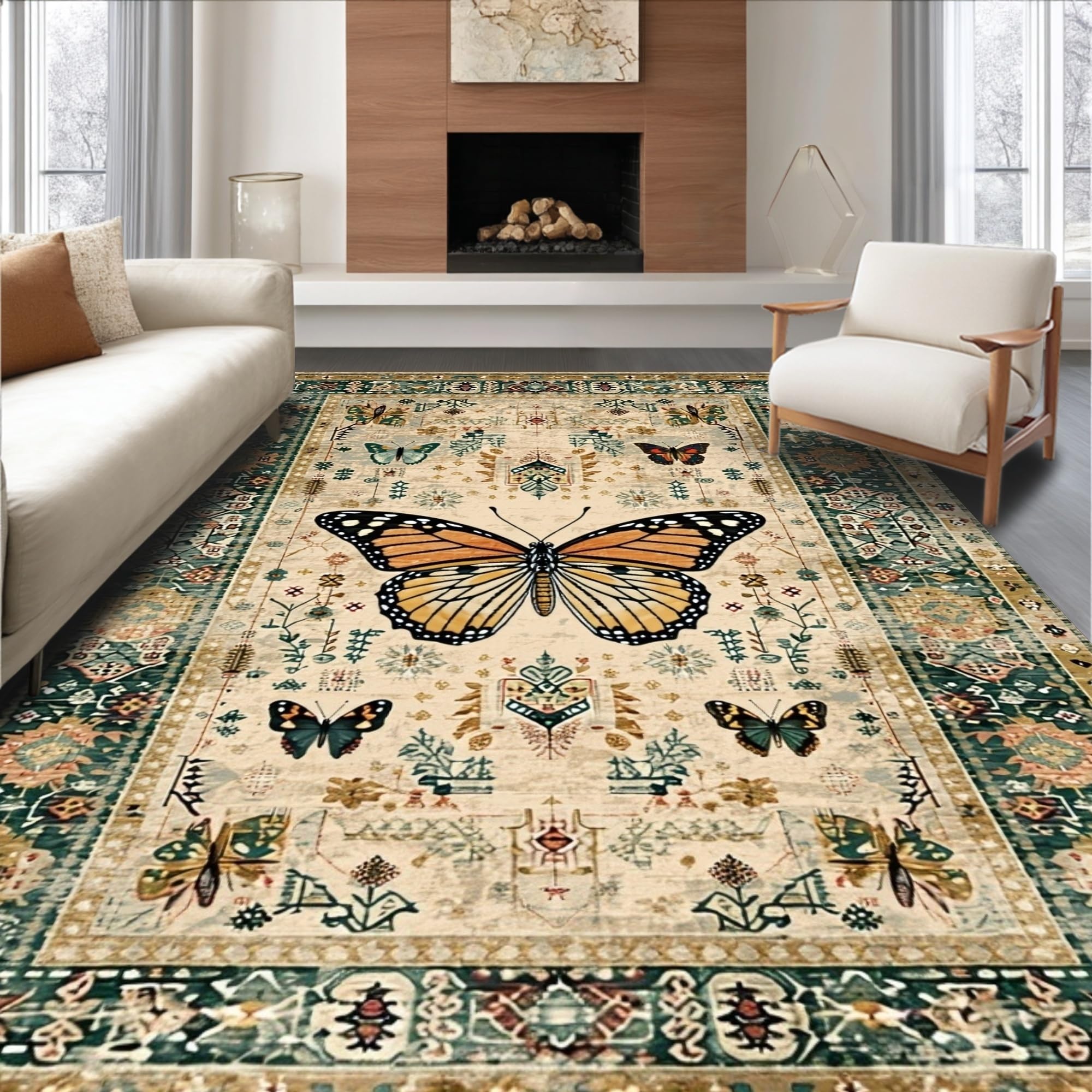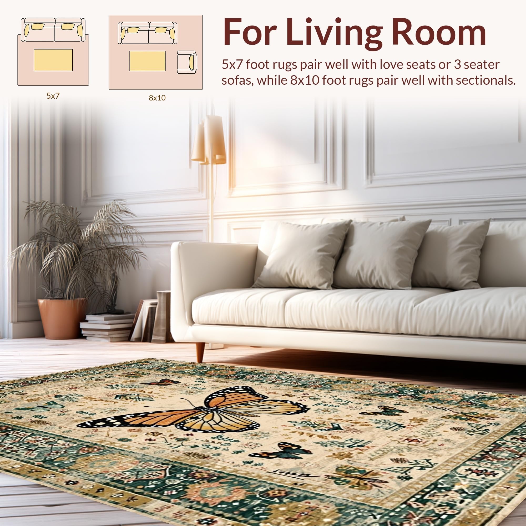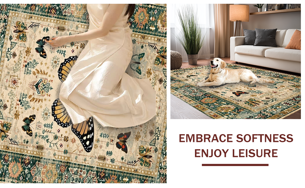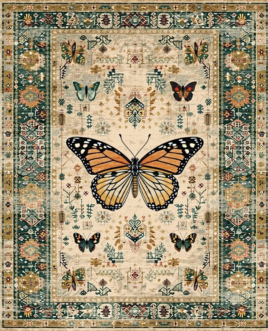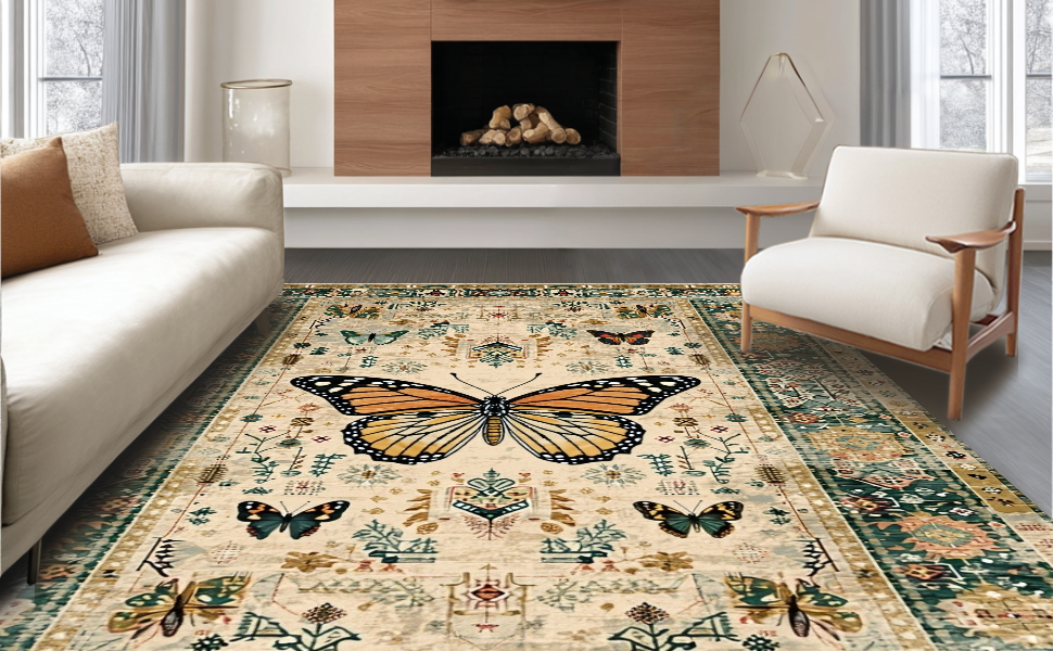 Ultra Soft Area Rug, Non Slip, Stain Resistant, Washable Area Rugs for Living Room, Bedroom, Modern Artistic Insect Arrangement(Beige) Overview:
