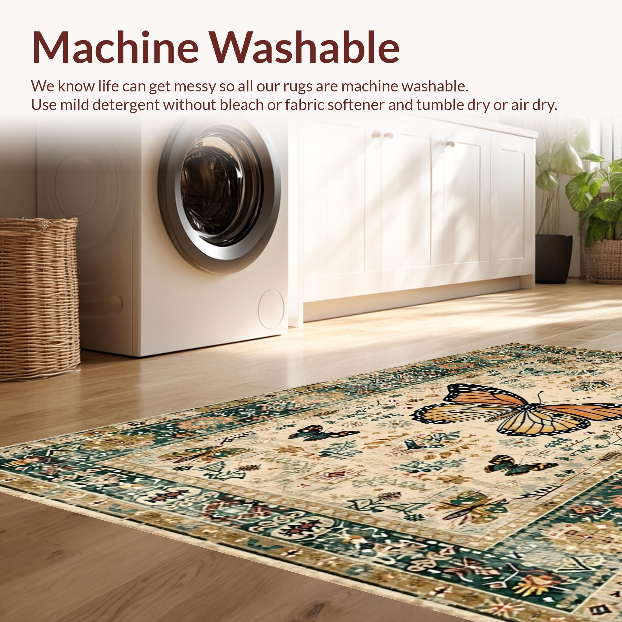 - Machine Washable: Our rugs can be easily thrown in the wash machine.