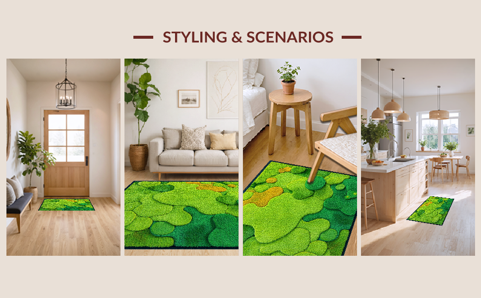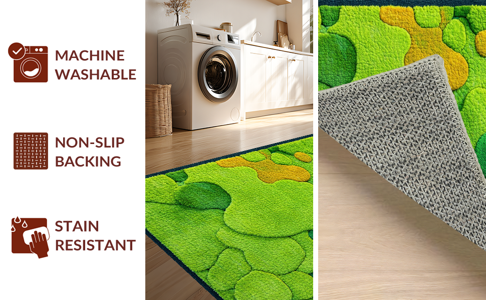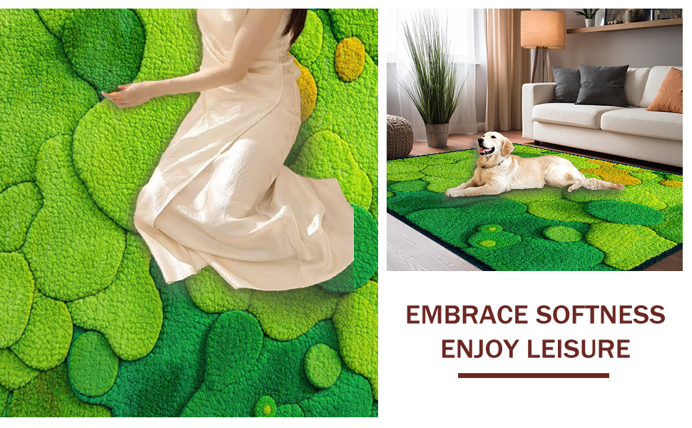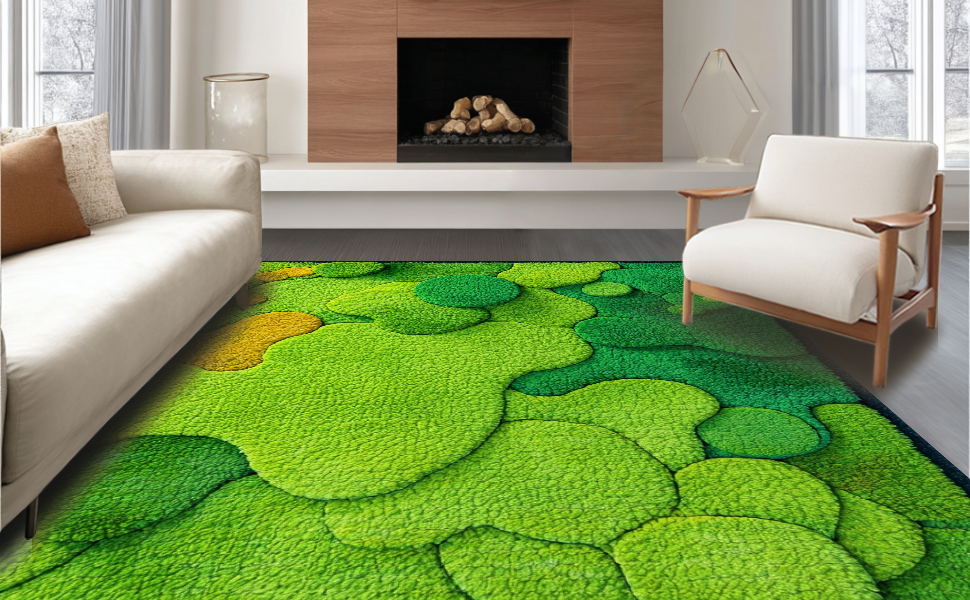 Ultra Soft Area Rug, Non Slip, Stain Resistant, Washable Area Rugs for Living Room, Bedroom, Modern Artistic Moss Textural Contrast(Green) Overview: