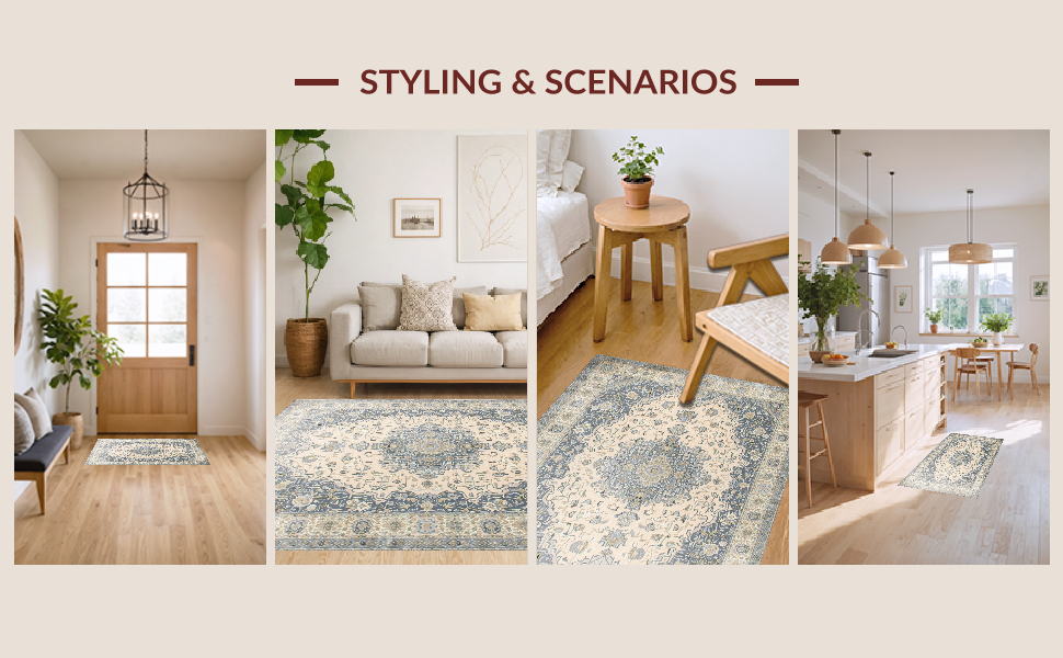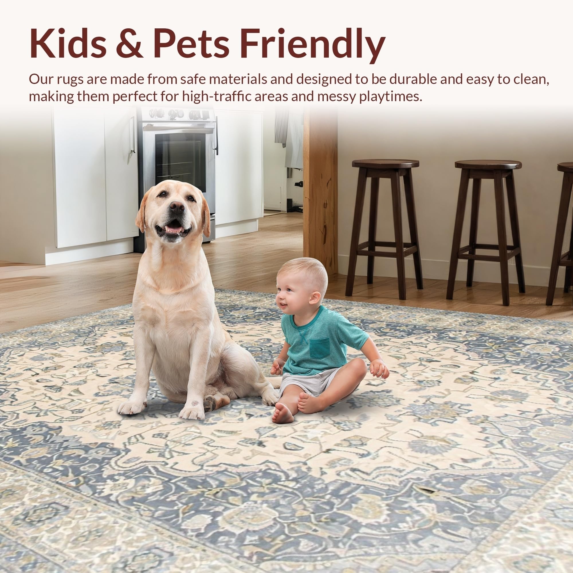 Ultra Soft Area Rug, Non Slip, Stain Resistant, Washable Area Rugs for Living Room, Bedroom, Modern Artistic Ogee Pattern(Beige) Overview: