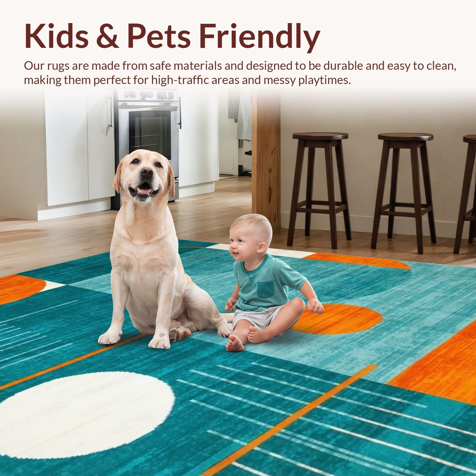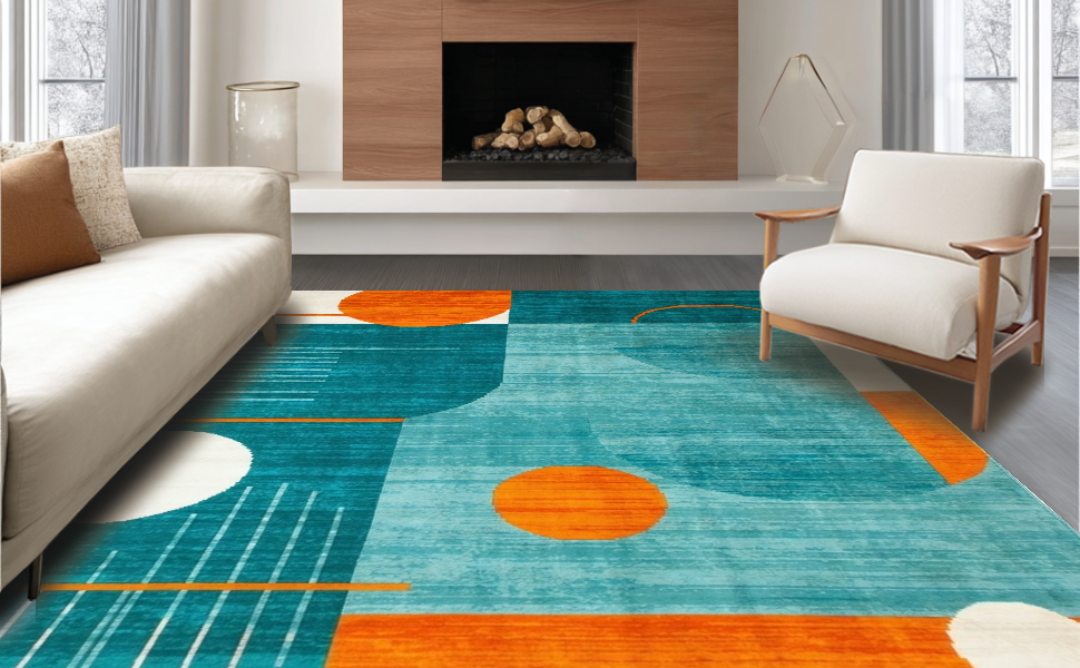 Ultra Soft Area Rug, Non Slip, Stain Resistant, Washable Area Rugs for Living Room, Bedroom, Modern Artistic Round Aesthetic(Blue) Overview: