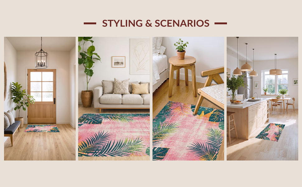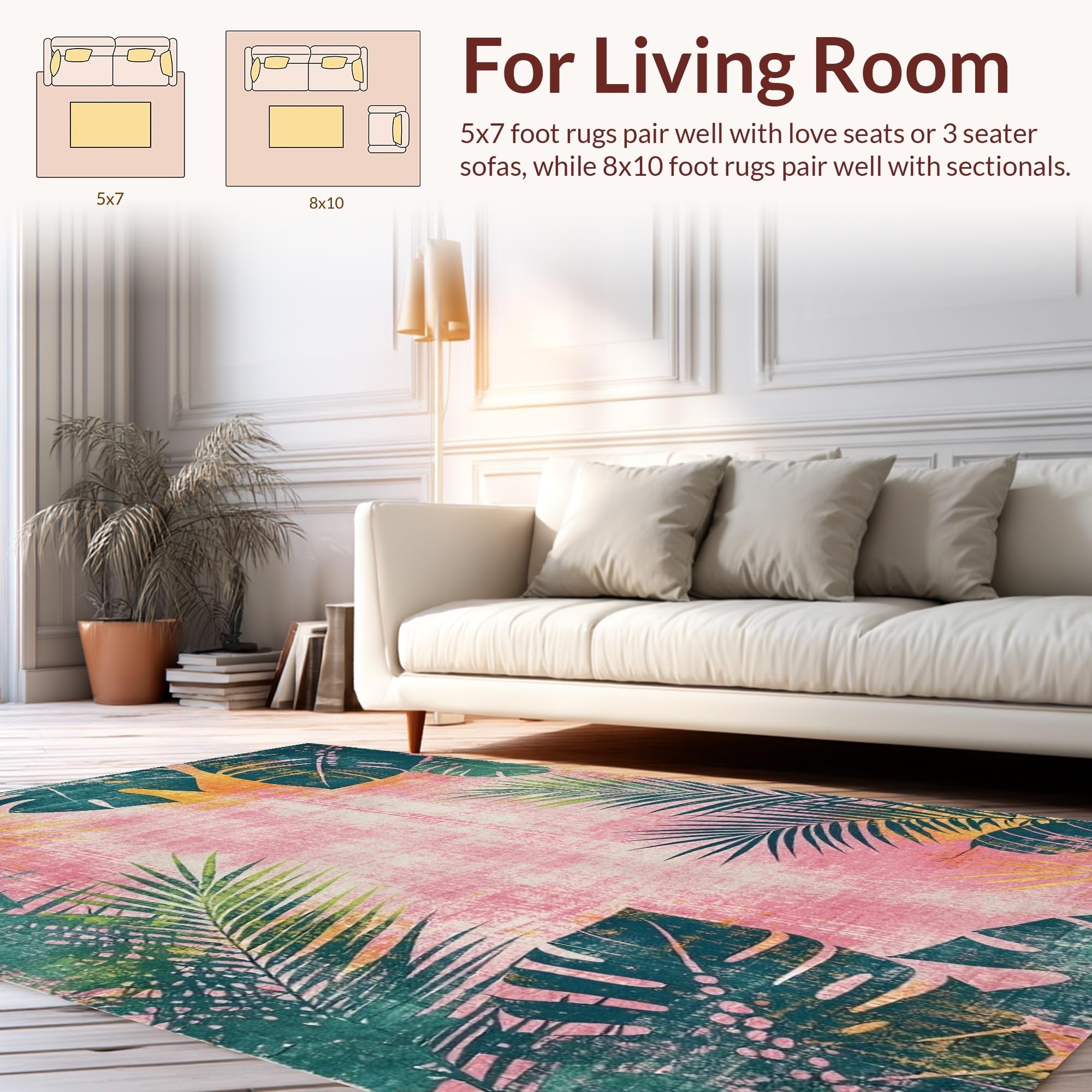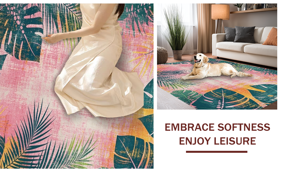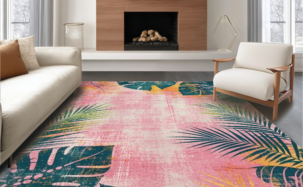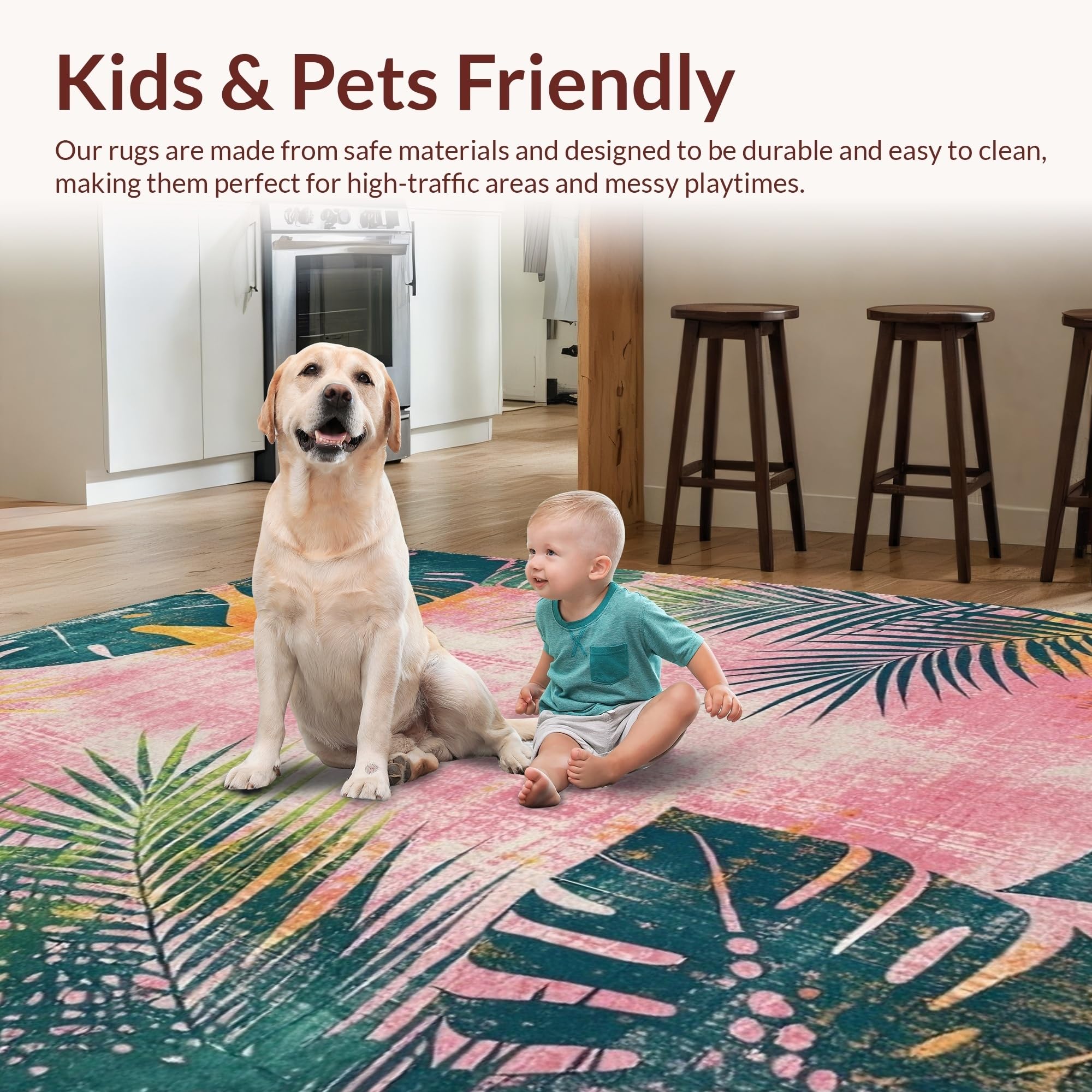 Ultra Soft Area Rug, Non Slip, Stain Resistant, Washable Area Rugs for Living Room, Bedroom, Modern Artistic Tribal Composition(Pink) Overview: