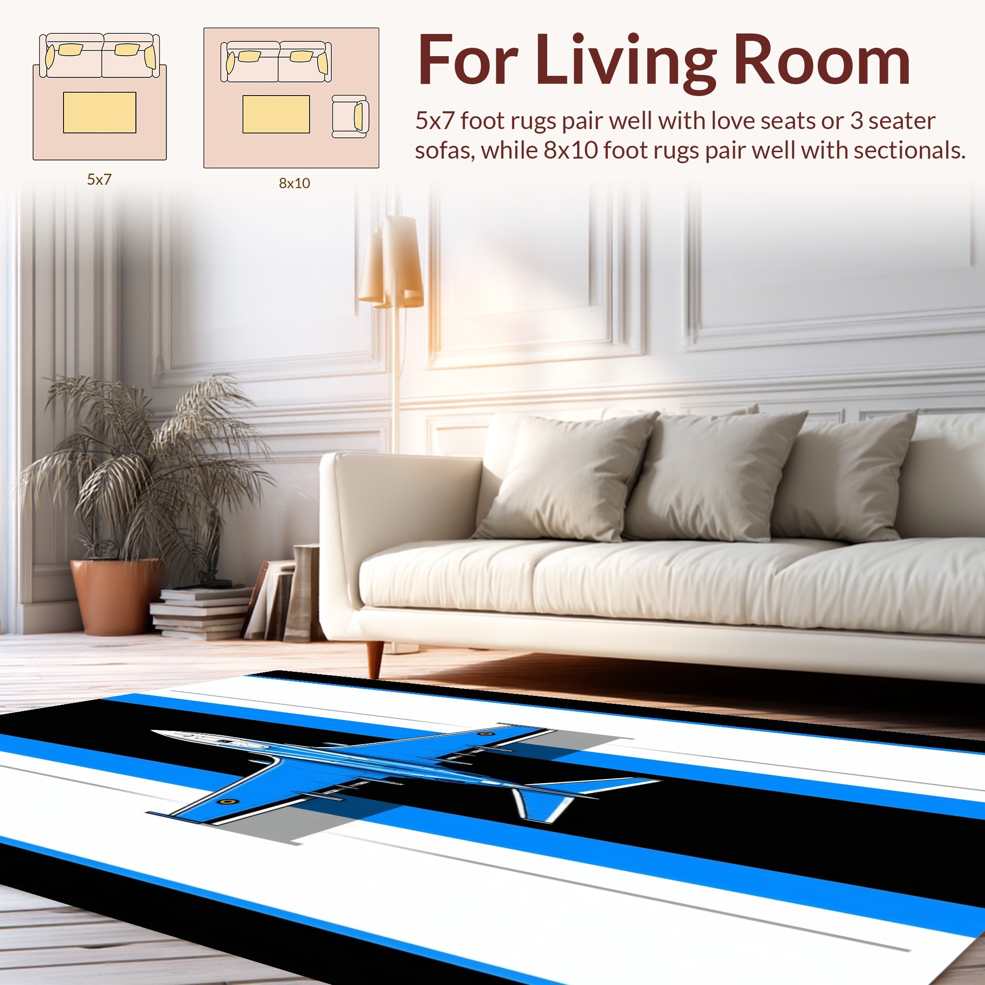 Flatwoven High Traffic Area Rug, Modern Aviation Graphic Aesthetic, Non Slip, Stain Resistant, Washable Area Rugs for Living Room, Bedroom (Blue) Overview: