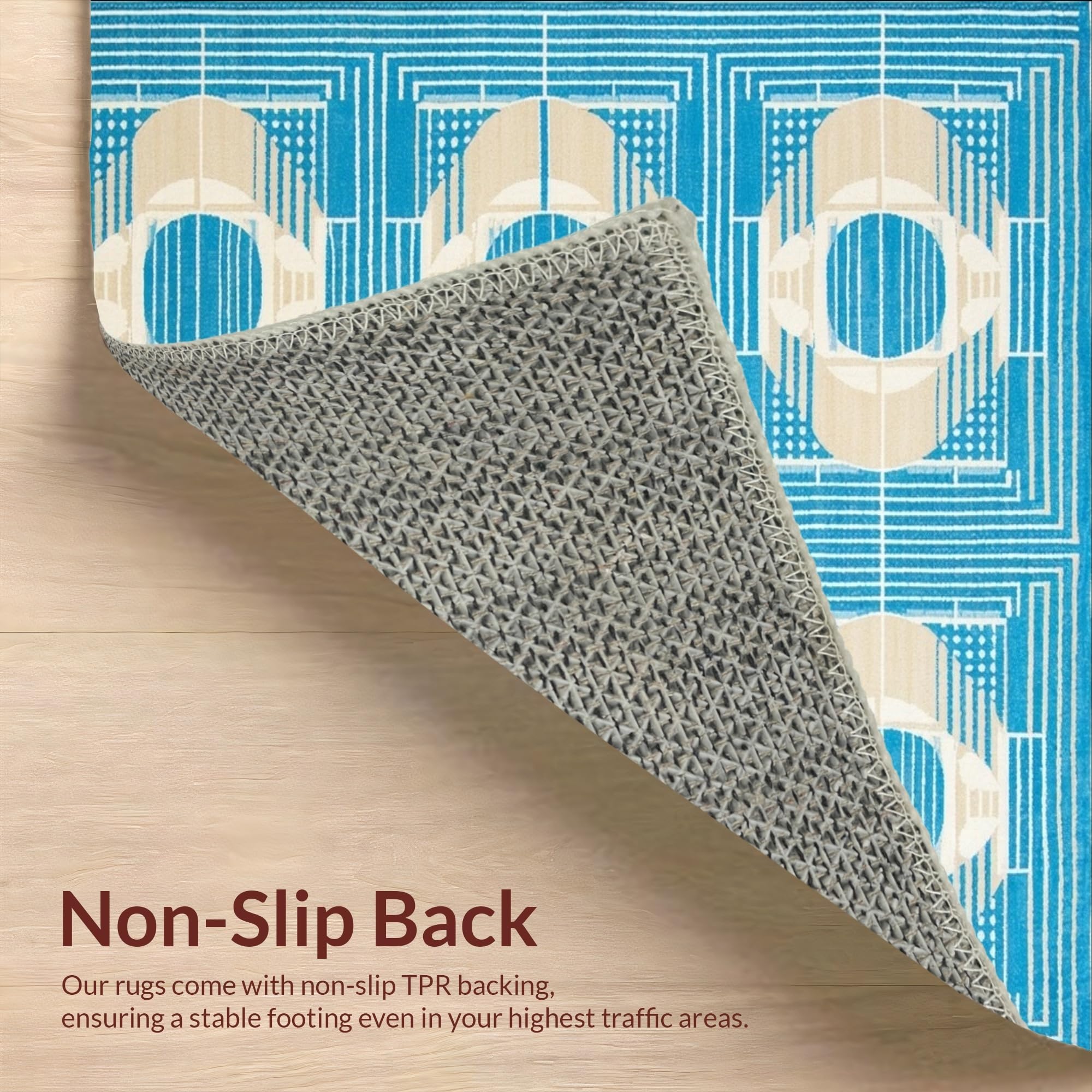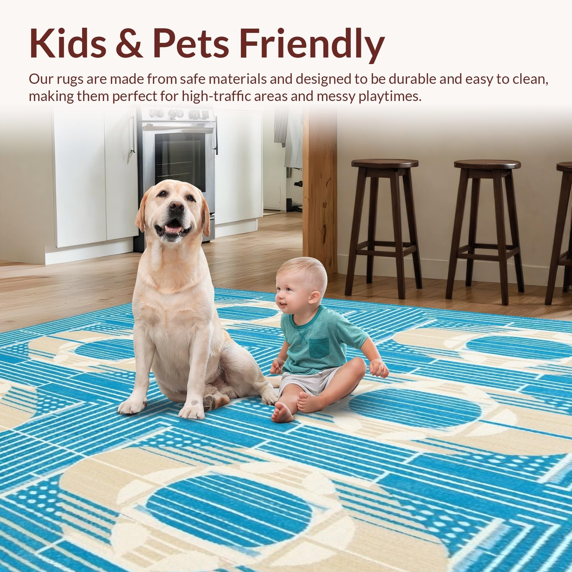 Ultra Soft Area Rug, Non Slip, Stain Resistant, Washable Area Rugs for Living Room, Bedroom, Modern Azure Hues Artistic Geometric Circle with Beige Undertones(Blue) Overview: