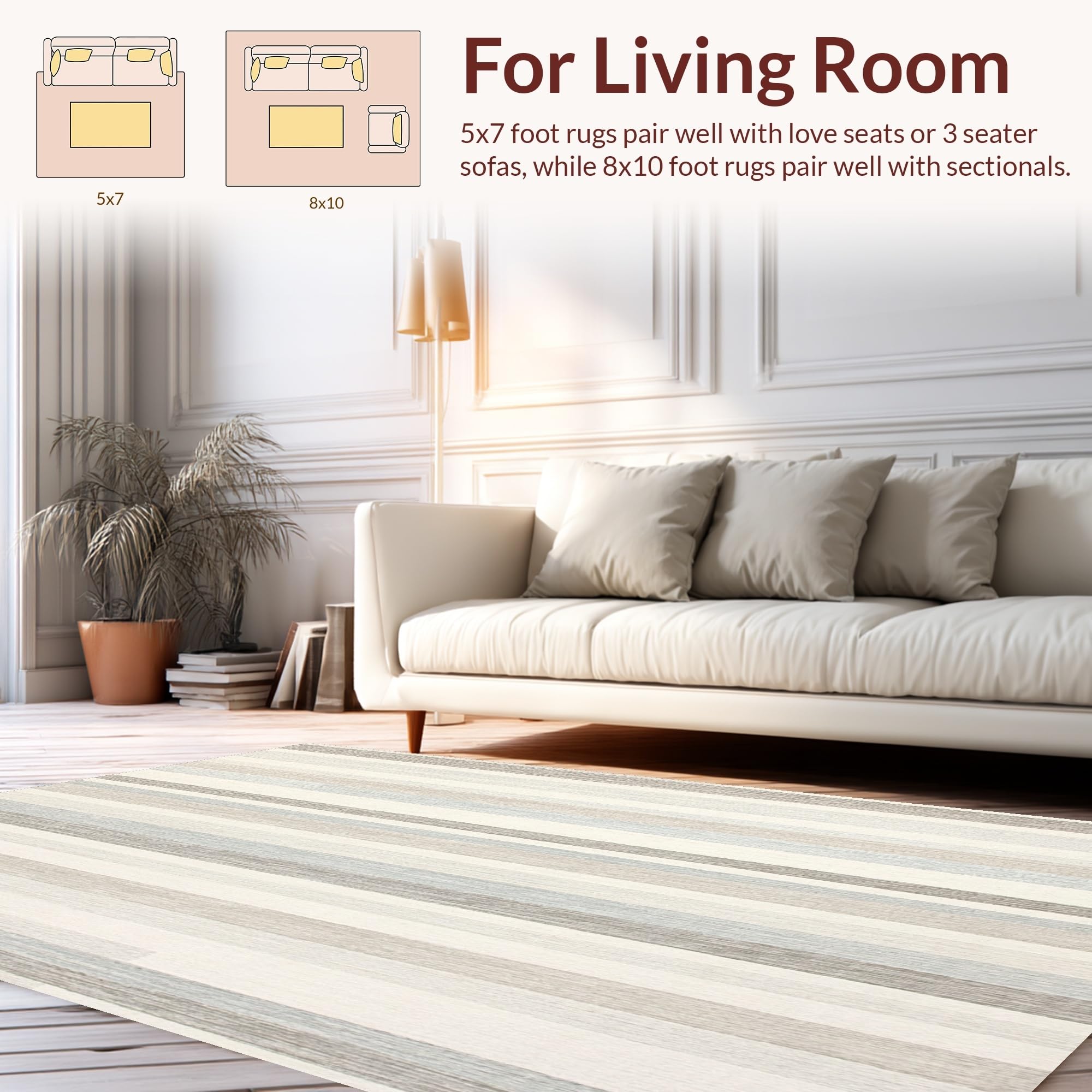 Ultra Soft Area Rug, Non Slip, Stain Resistant, Washable Area Rugs for Living Room, Bedroom, Modern Bath Greige and Beige Striped Texture(Gray) Overview: