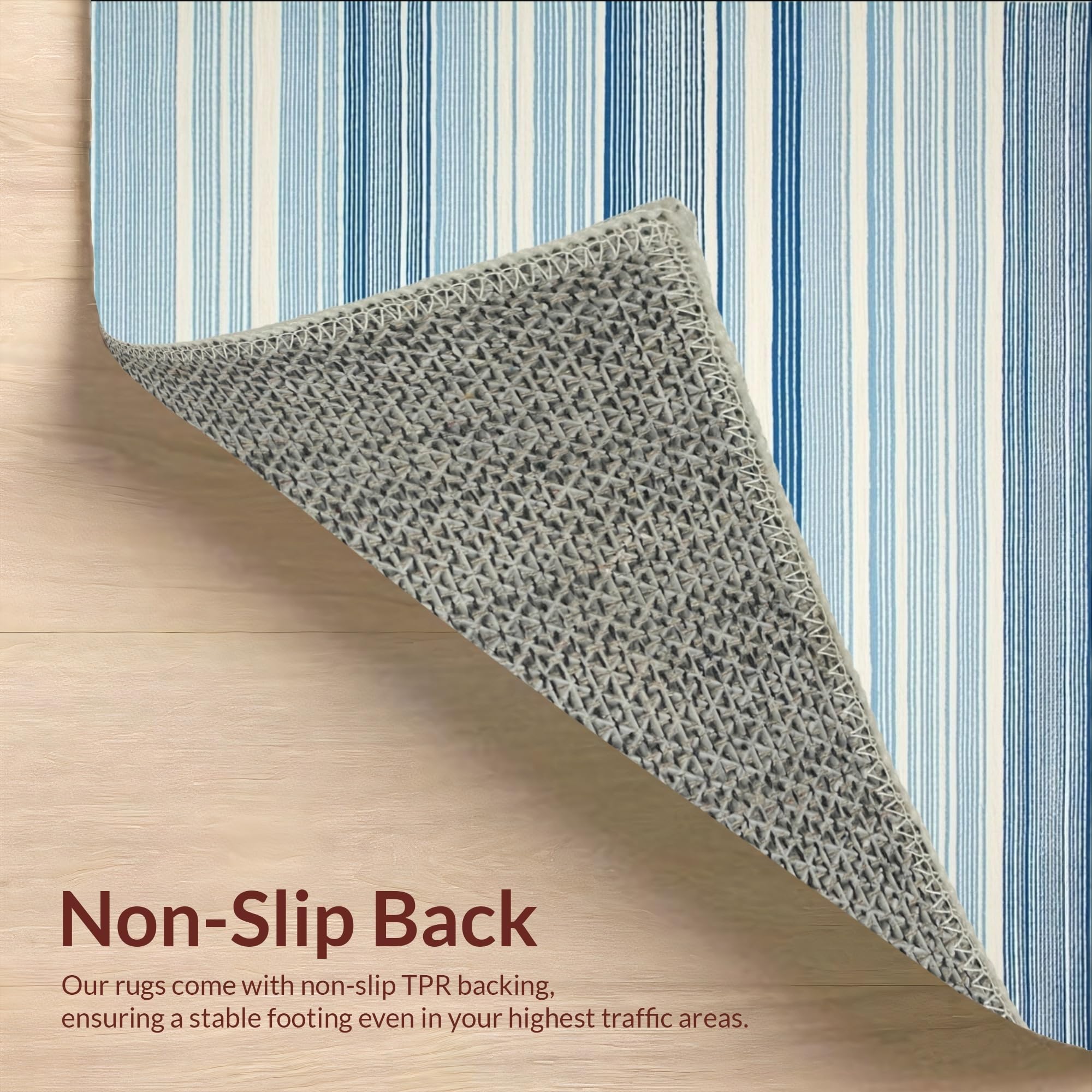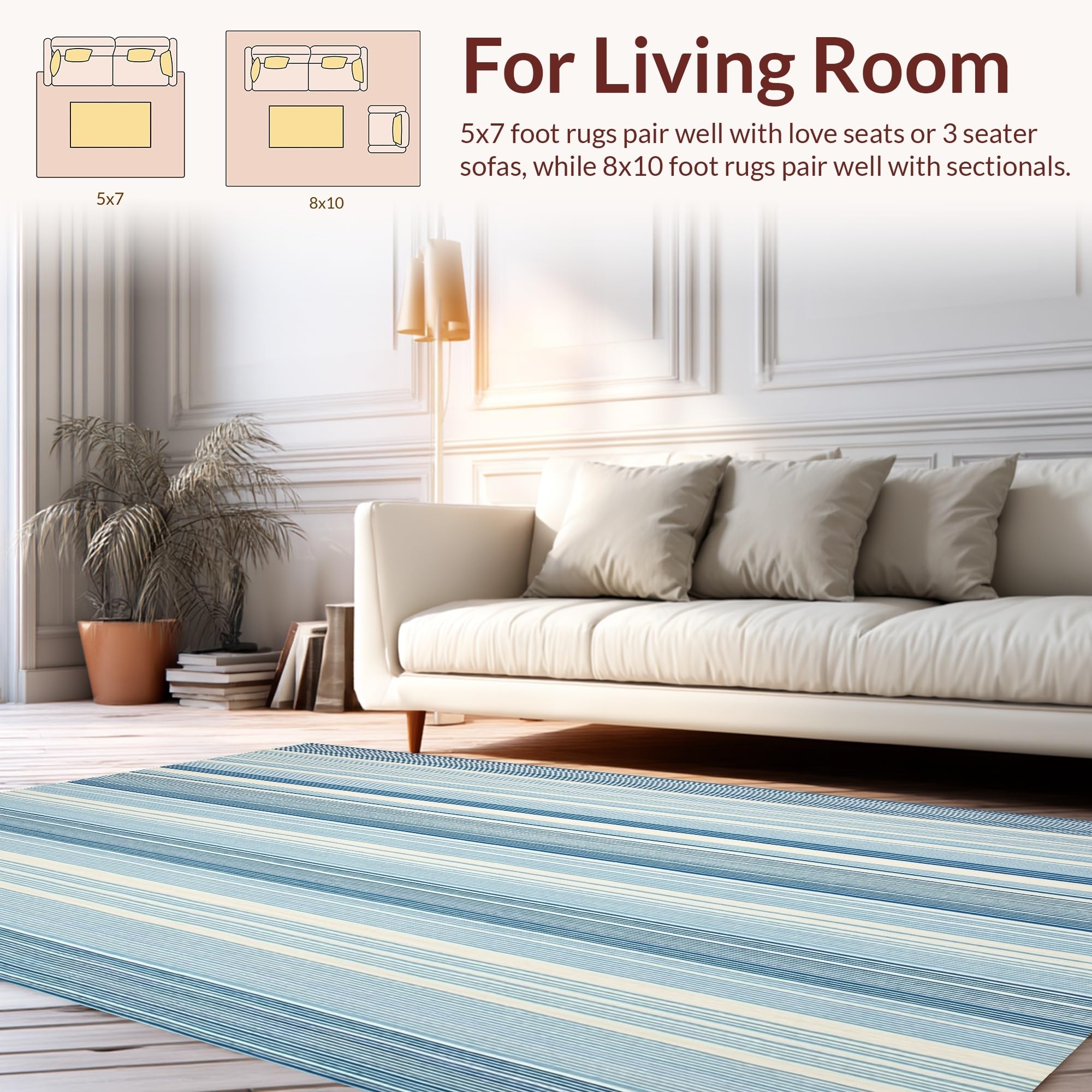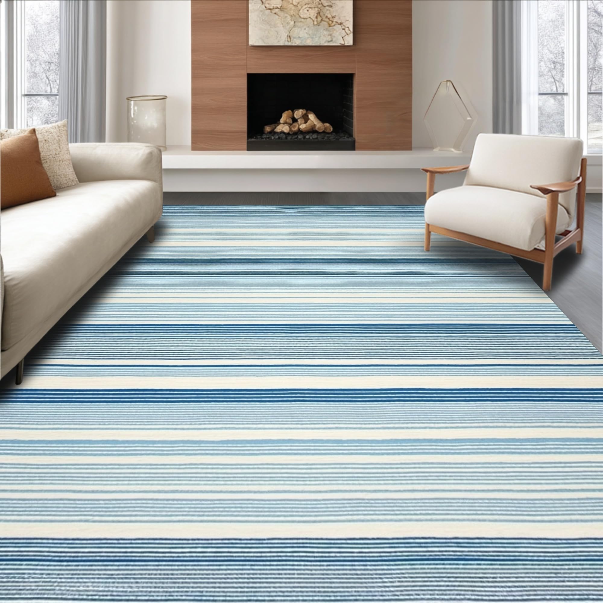 Ultra Soft Area Rug, Non Slip, Stain Resistant, Washable Area Rugs for Living Room, Bedroom, Modern Beach Stripe Design Floor for Decks(Blue) Overview: