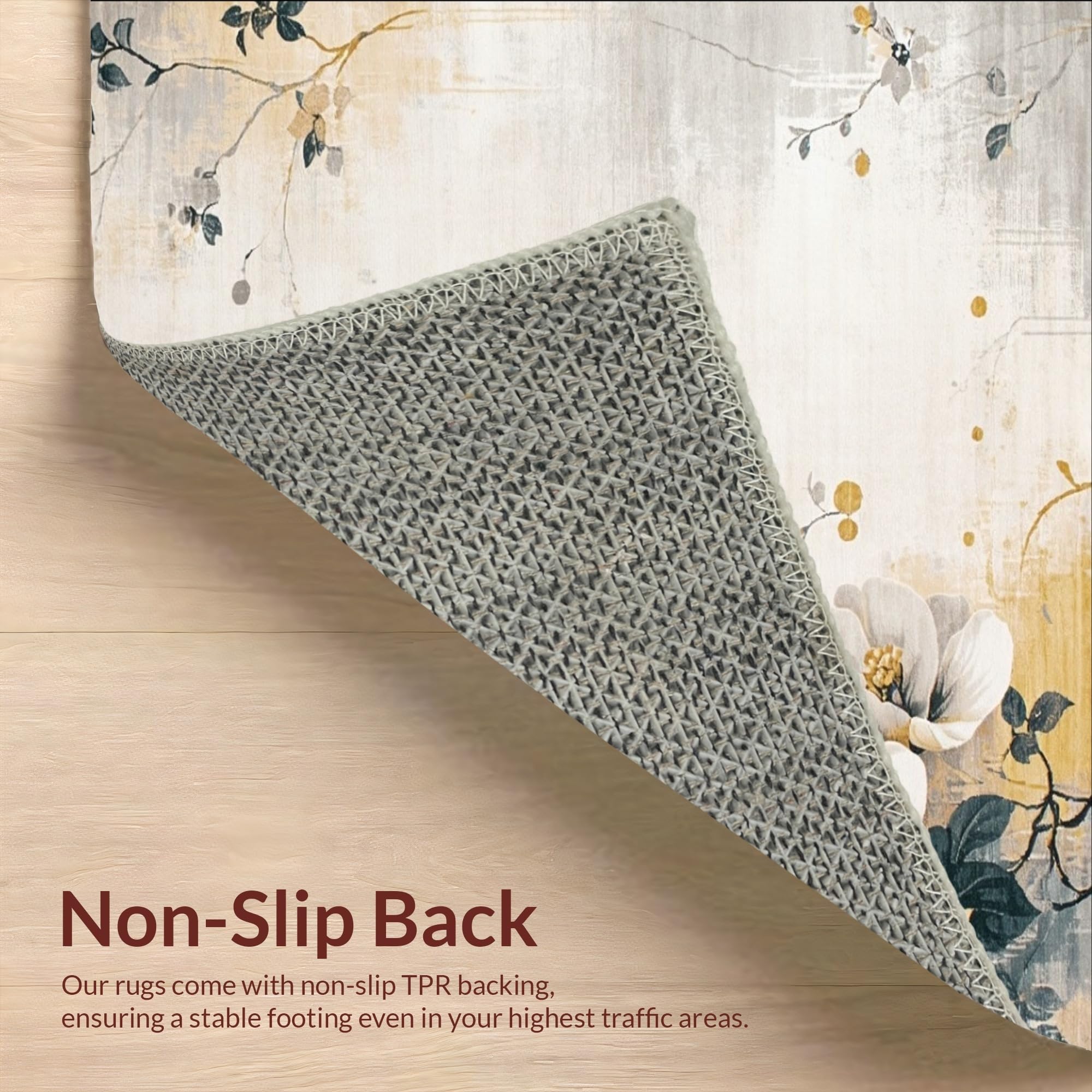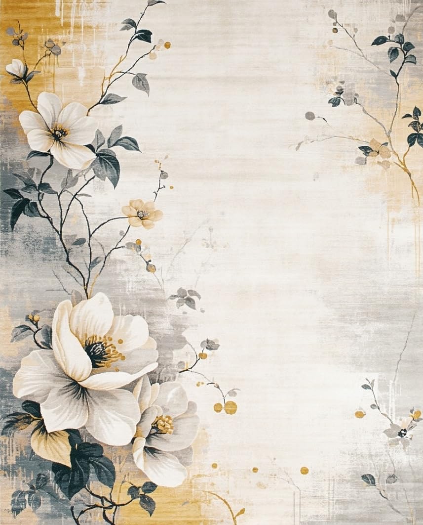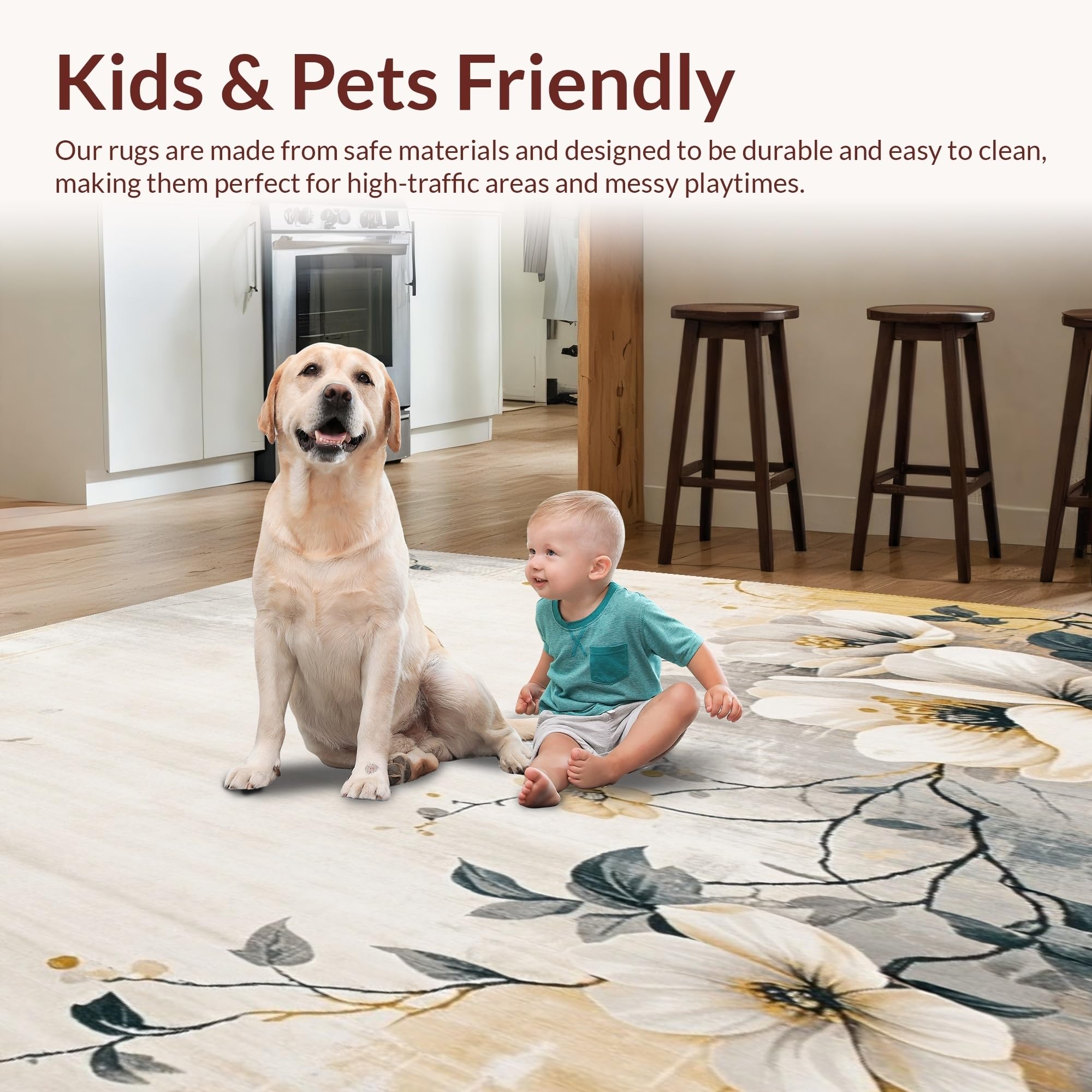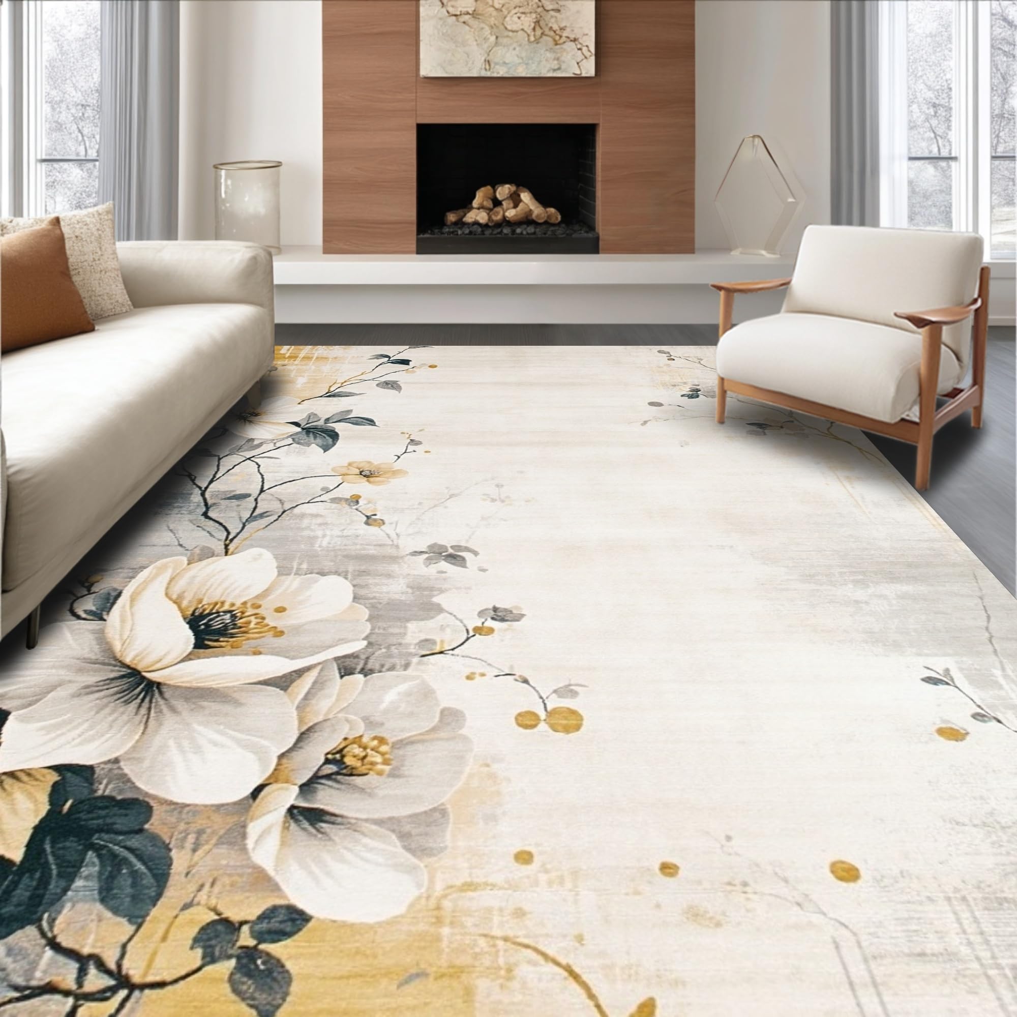Ultra Soft Area Rug, Non Slip, Stain Resistant, Washable Area Rugs for Living Room, Bedroom, Modern Beige and Smoke Swirl with Abstract Floral Motifs(Beige) Overview: