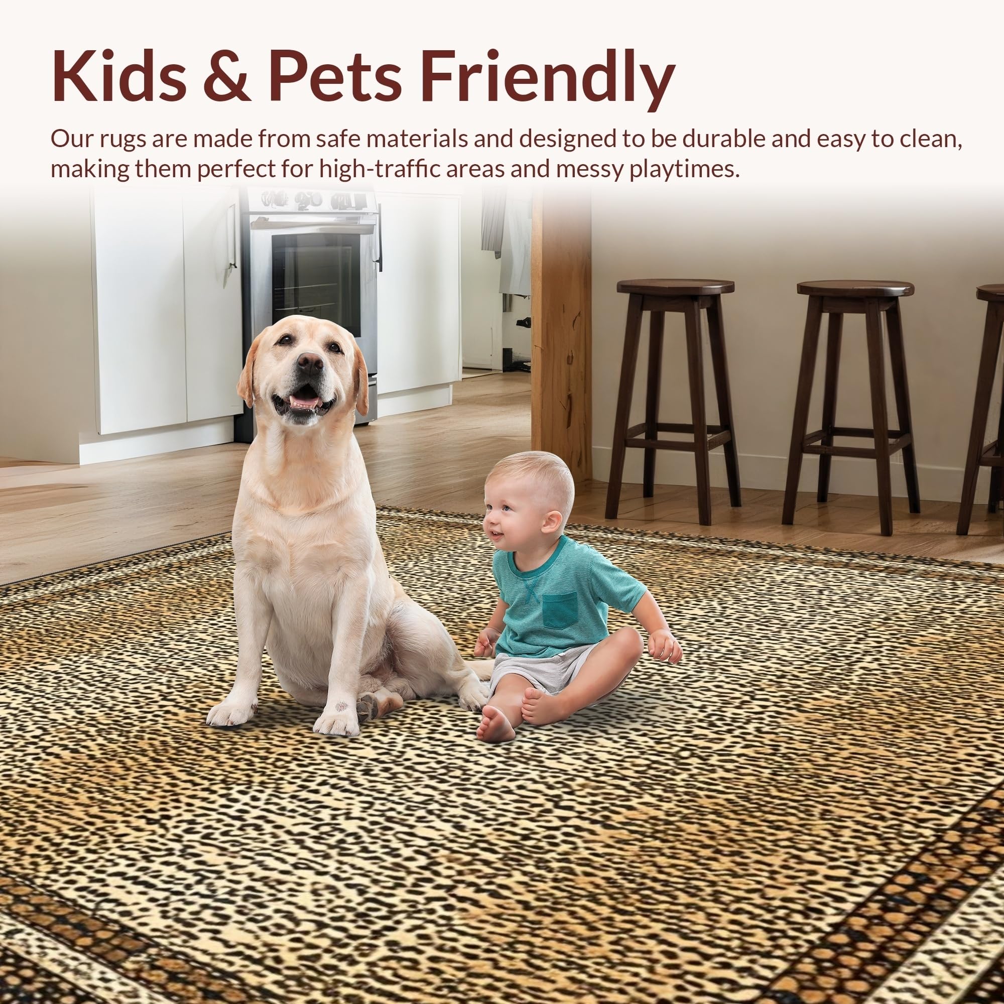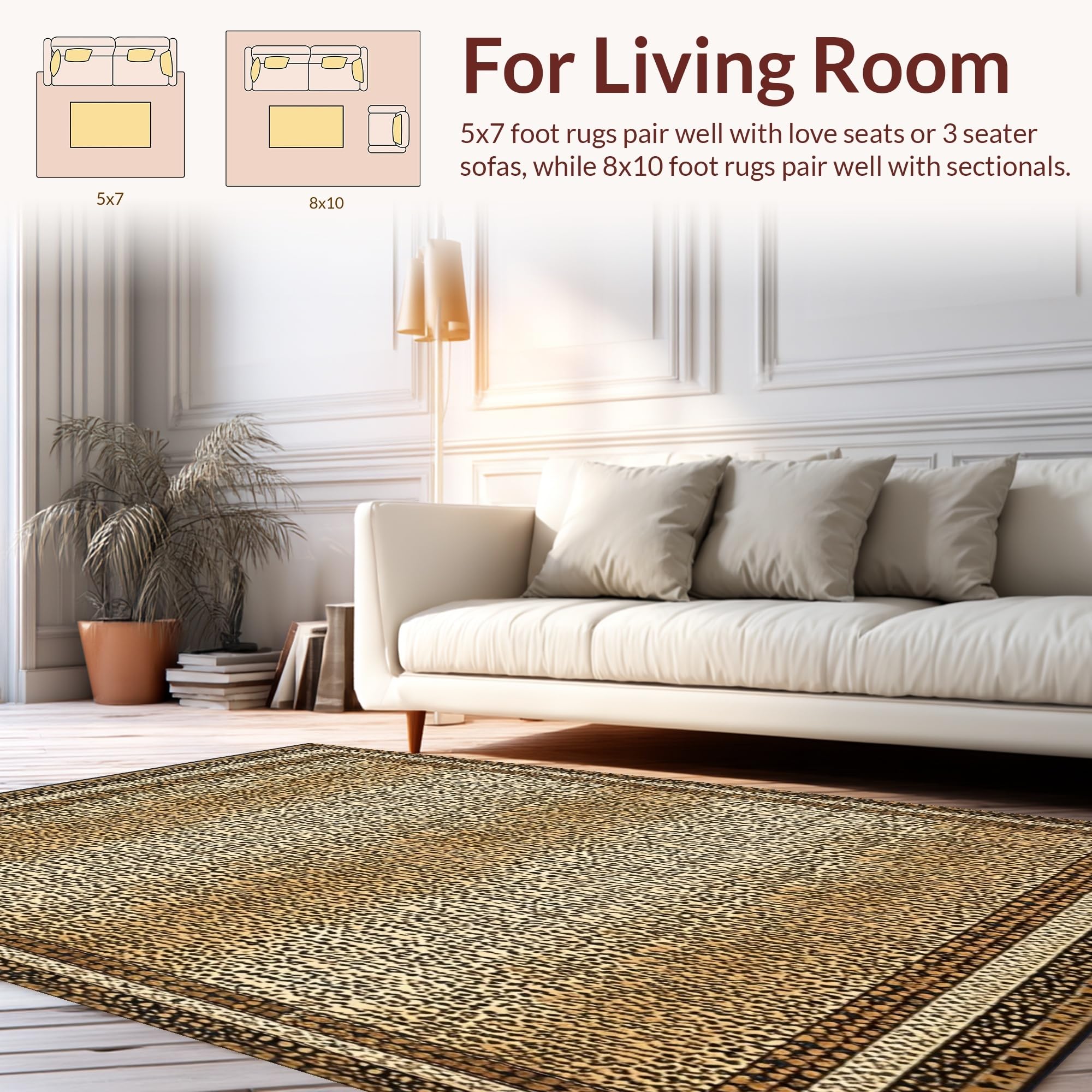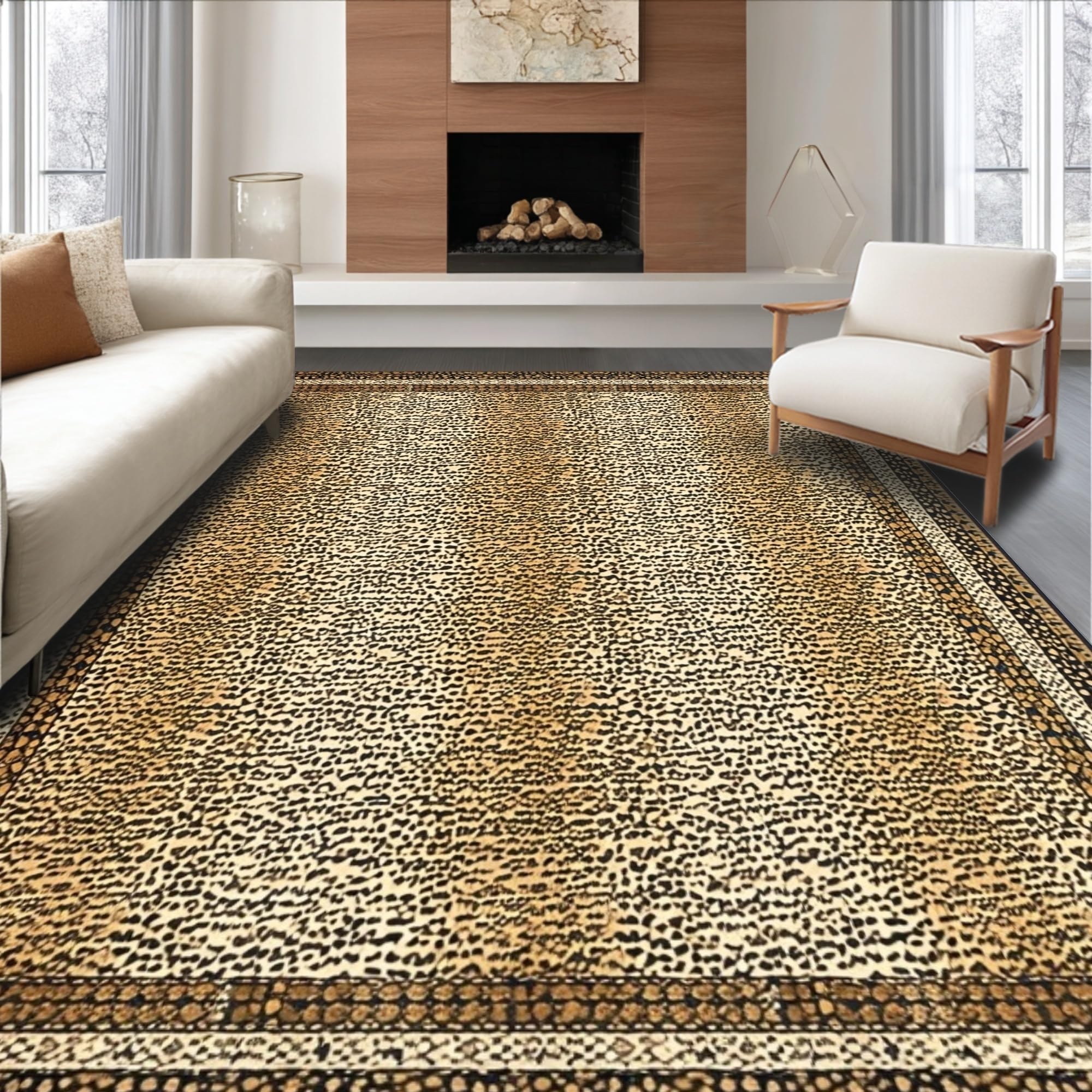 Ultra Soft Area Rug, Non Slip, Stain Resistant, Washable Area Rugs for Living Room, Bedroom, Modern Beige Animal Print Area with Bold Spots(Beige) Overview: