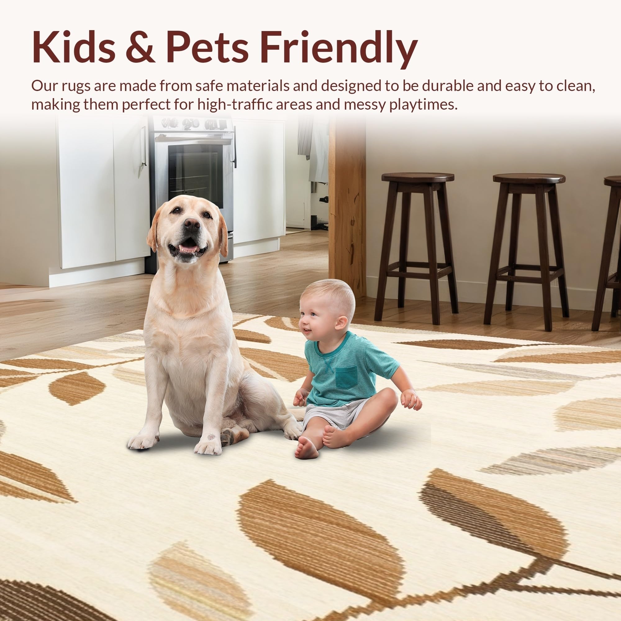 Ultra Soft Area Rug, Non Slip, Stain Resistant, Washable Area Rugs for Living Room, Bedroom, Modern Beige Area Waterproof Patio Leaf(Beige) Overview: