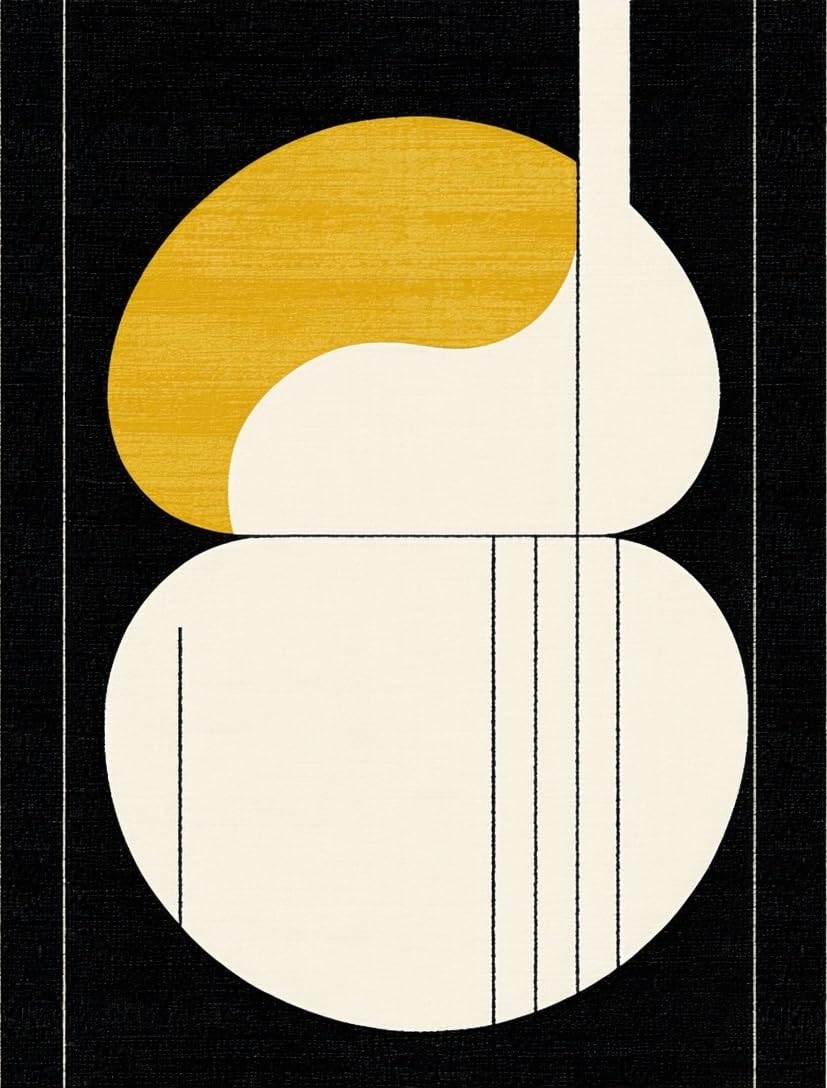 Modern Beige Black & Yellow Abstract Geometric Area(Black)