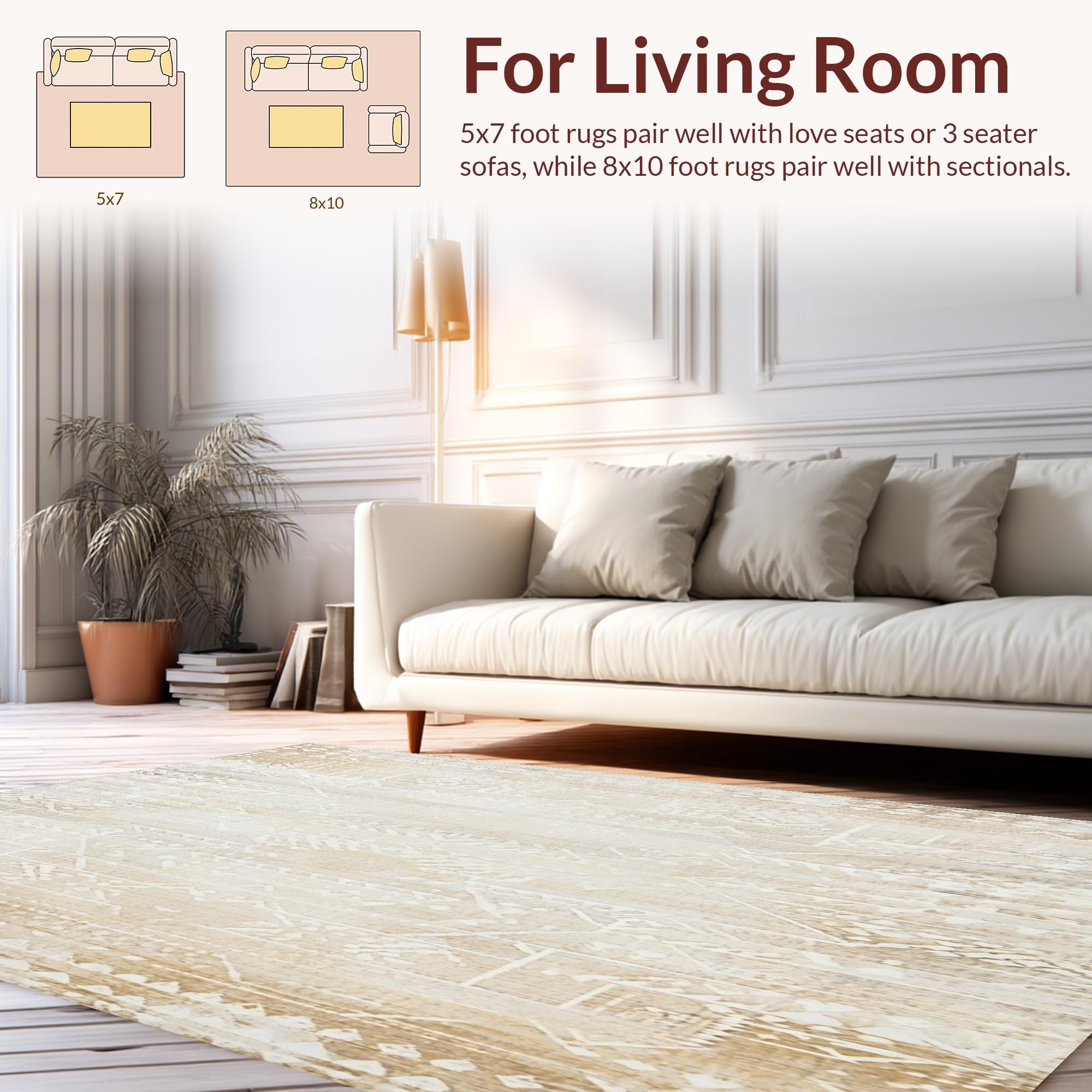 Ultra Soft Area Rug, Non Slip, Stain Resistant, Washable Area Rugs for Living Room, Bedroom, Modern Beige Geometric Area Distressed Design(Beige) Overview: