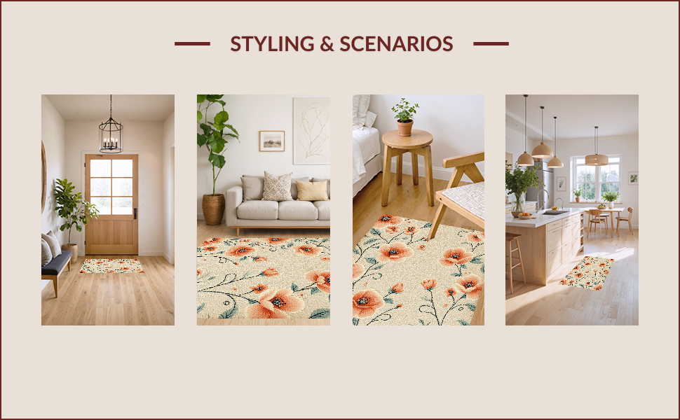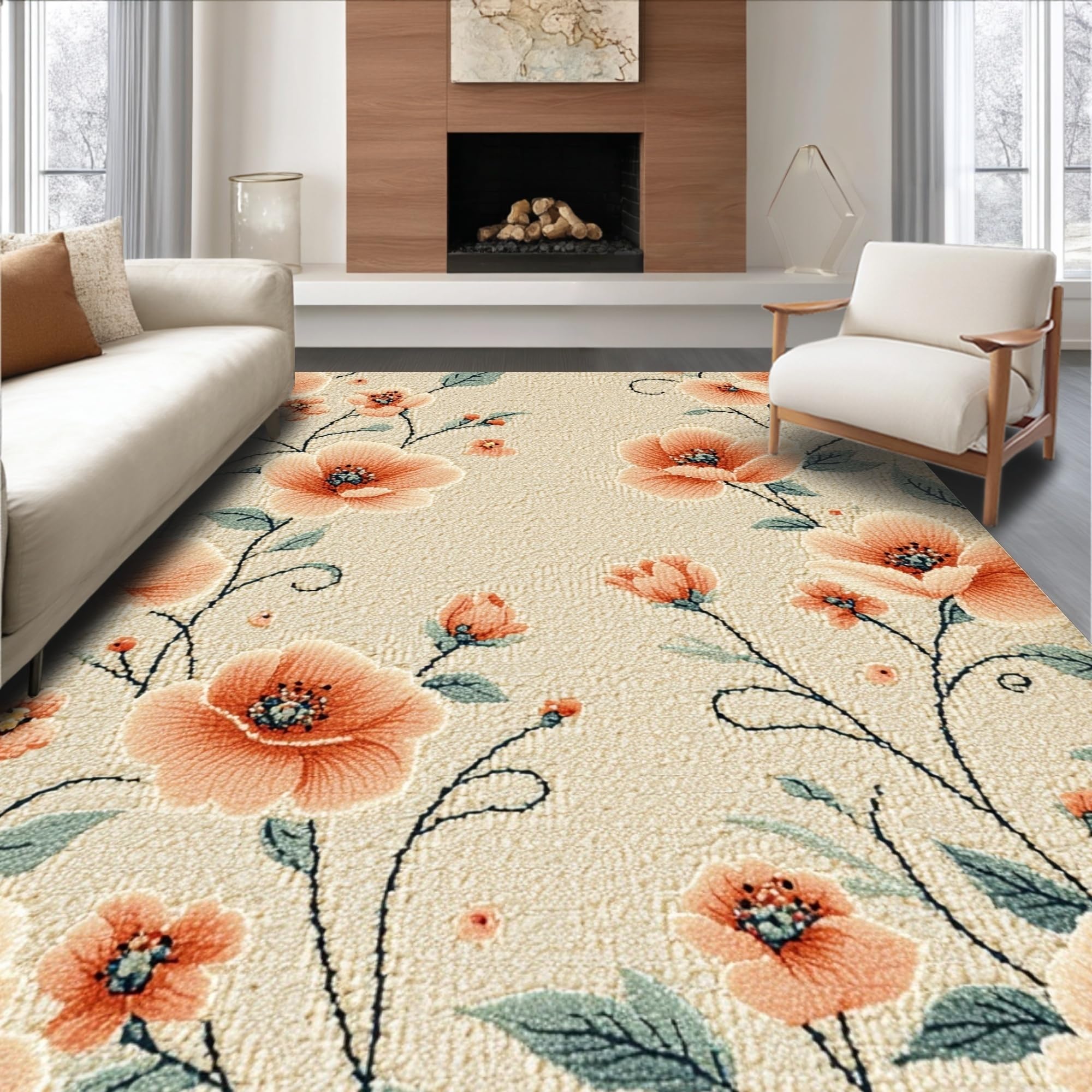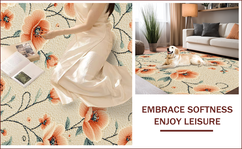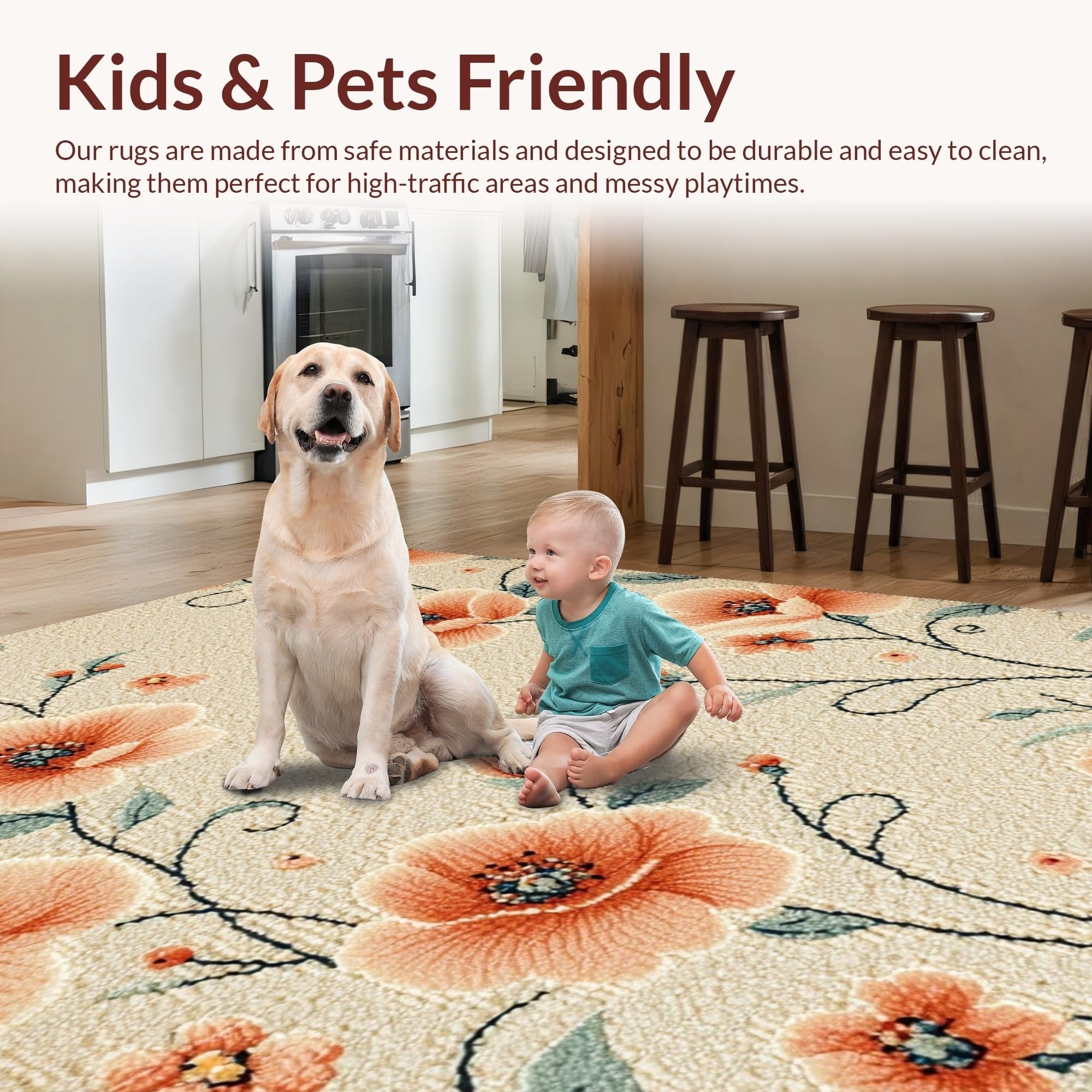 Ultra Soft Area Rug, Non Slip, Stain Resistant, Washable Area Rugs for Living Room, Bedroom, Modern Beige Geometric Floral Living Room Rug(Beige) Overview: