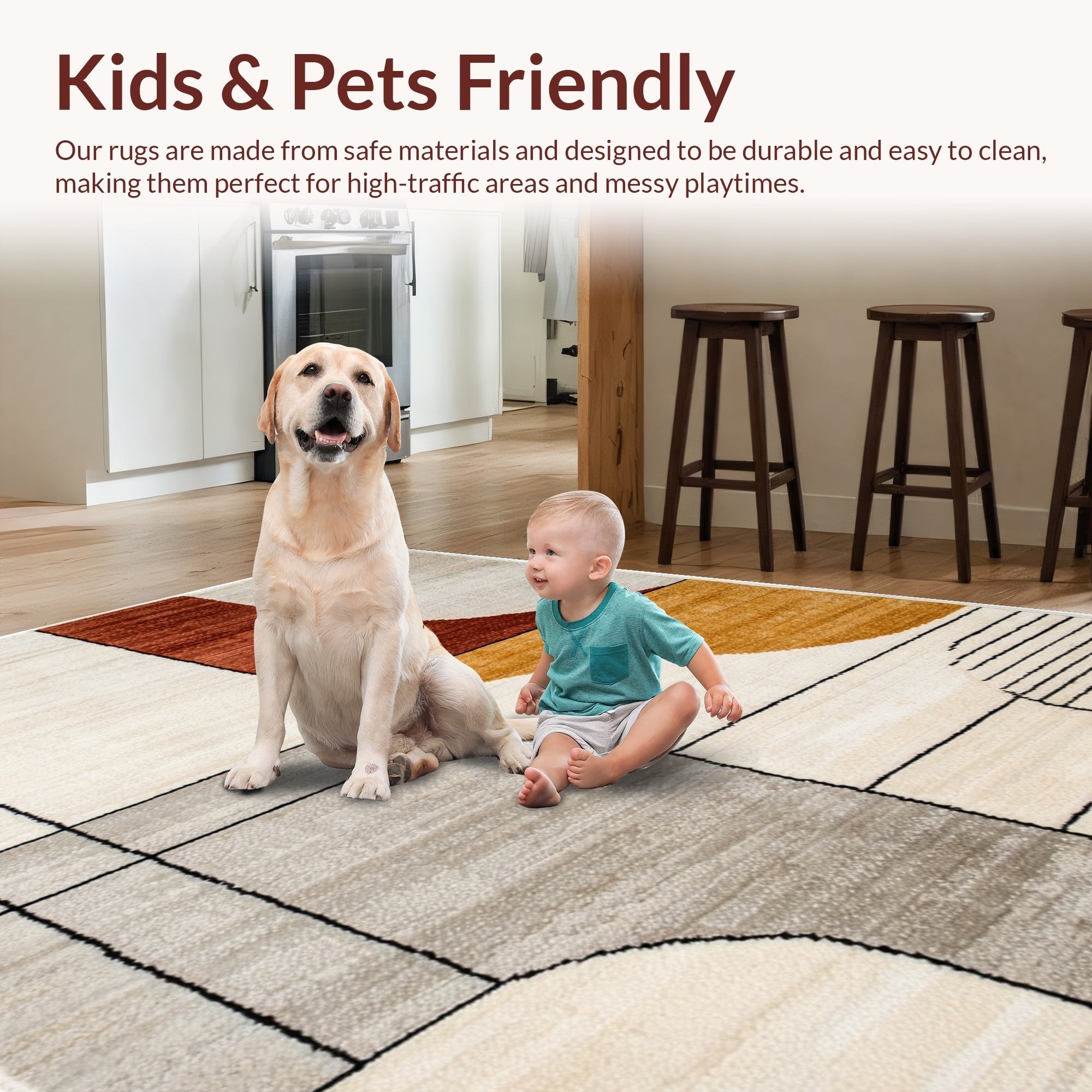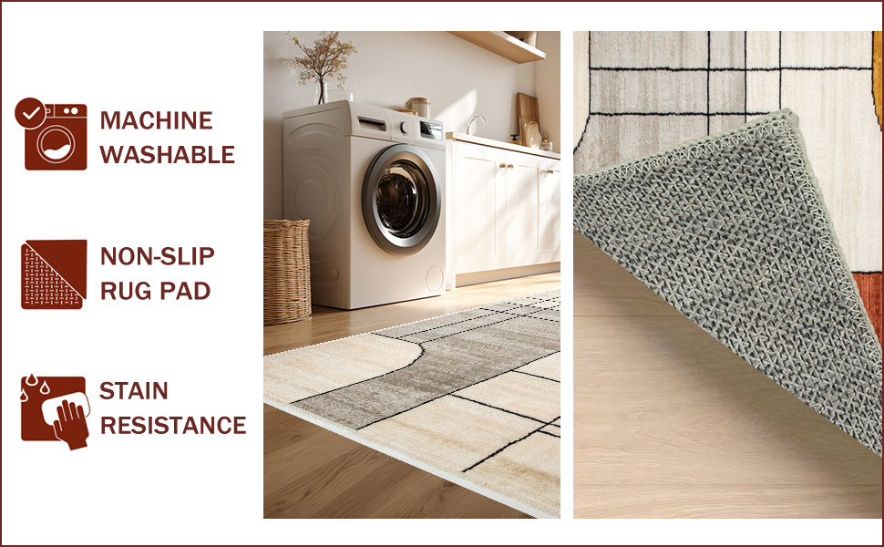 Ultra Soft Area Rug, Non Slip, Stain Resistant, Washable Area Rugs for Living Room, Bedroom, Modern Beige Hallway Runner Stain-Resistant Rug(Beige) Overview: