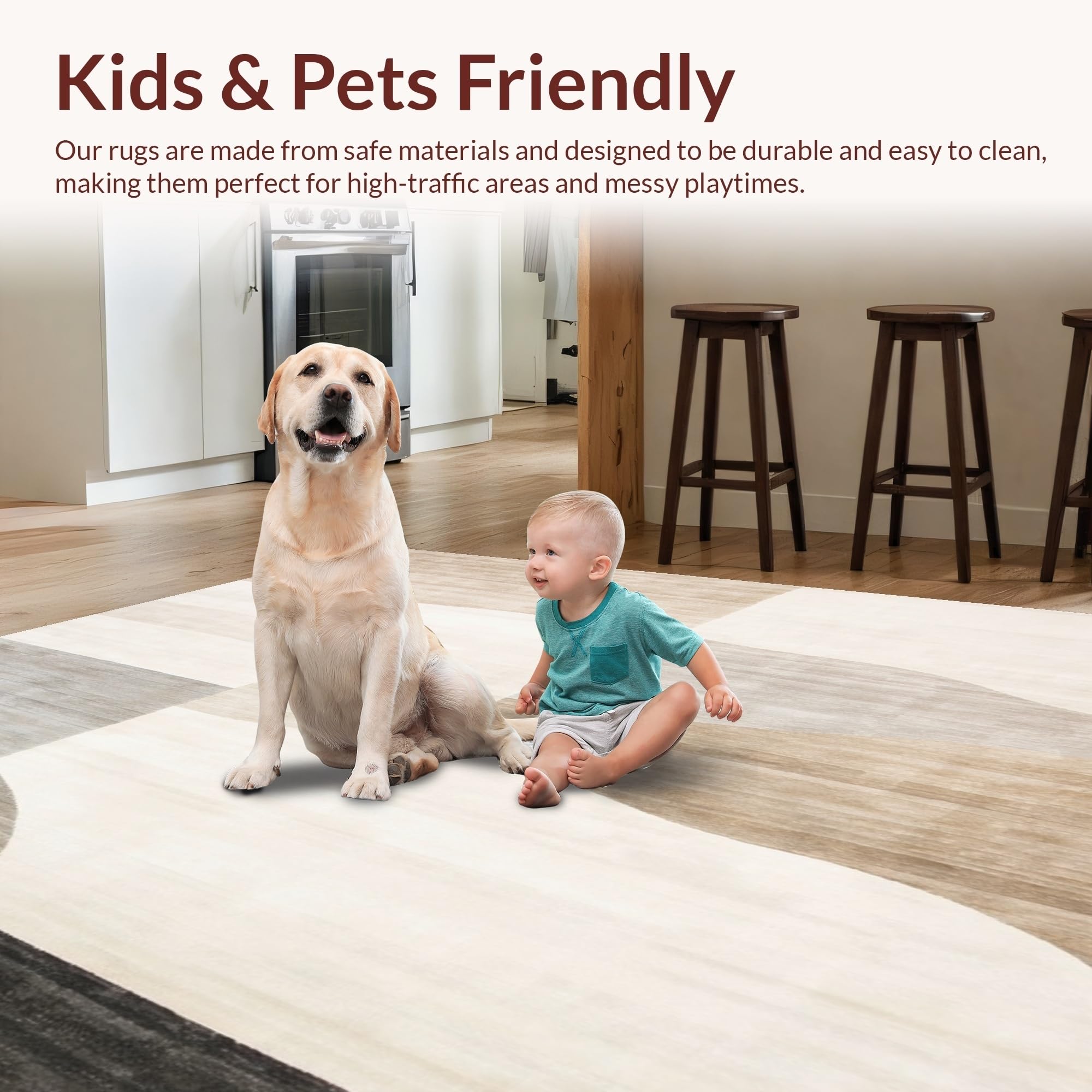 Ultra Soft Area Rug, Non Slip, Stain Resistant, Washable Area Rugs for Living Room, Bedroom, Modern Beige Loop Featuring Abstract Geometric Shapes and Clean Lines(Beige) Overview:
