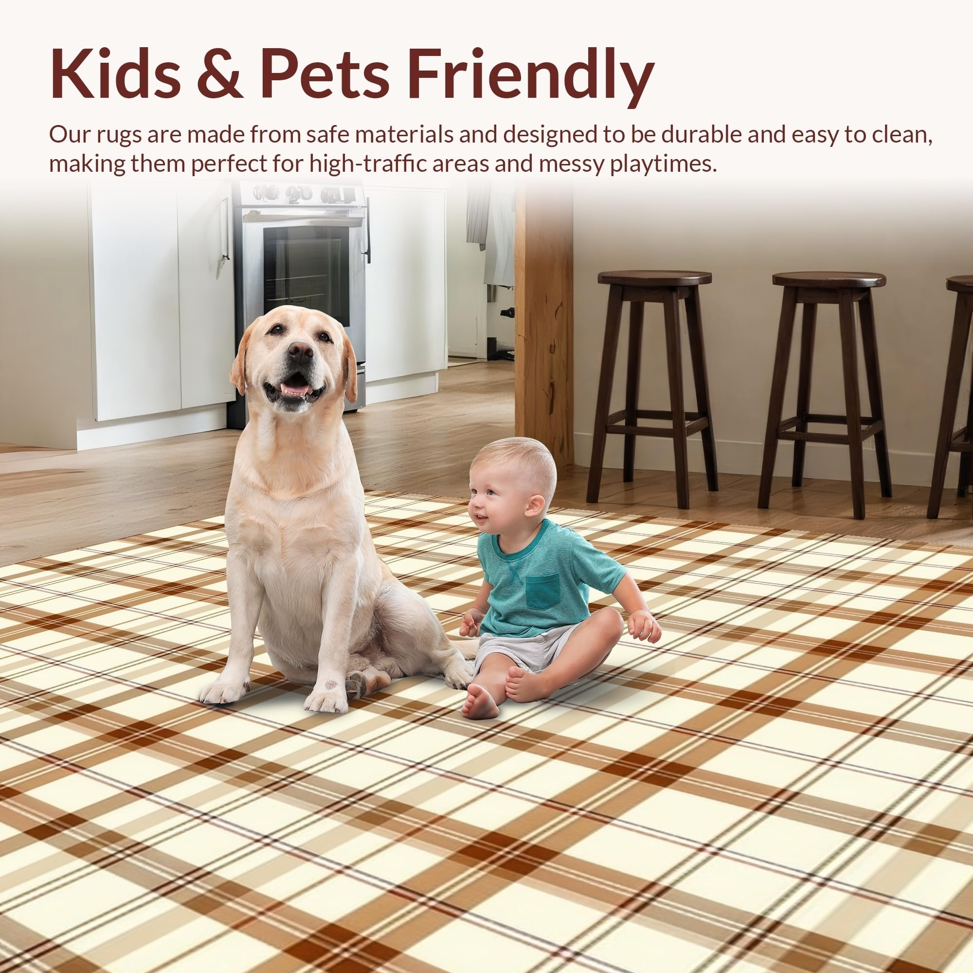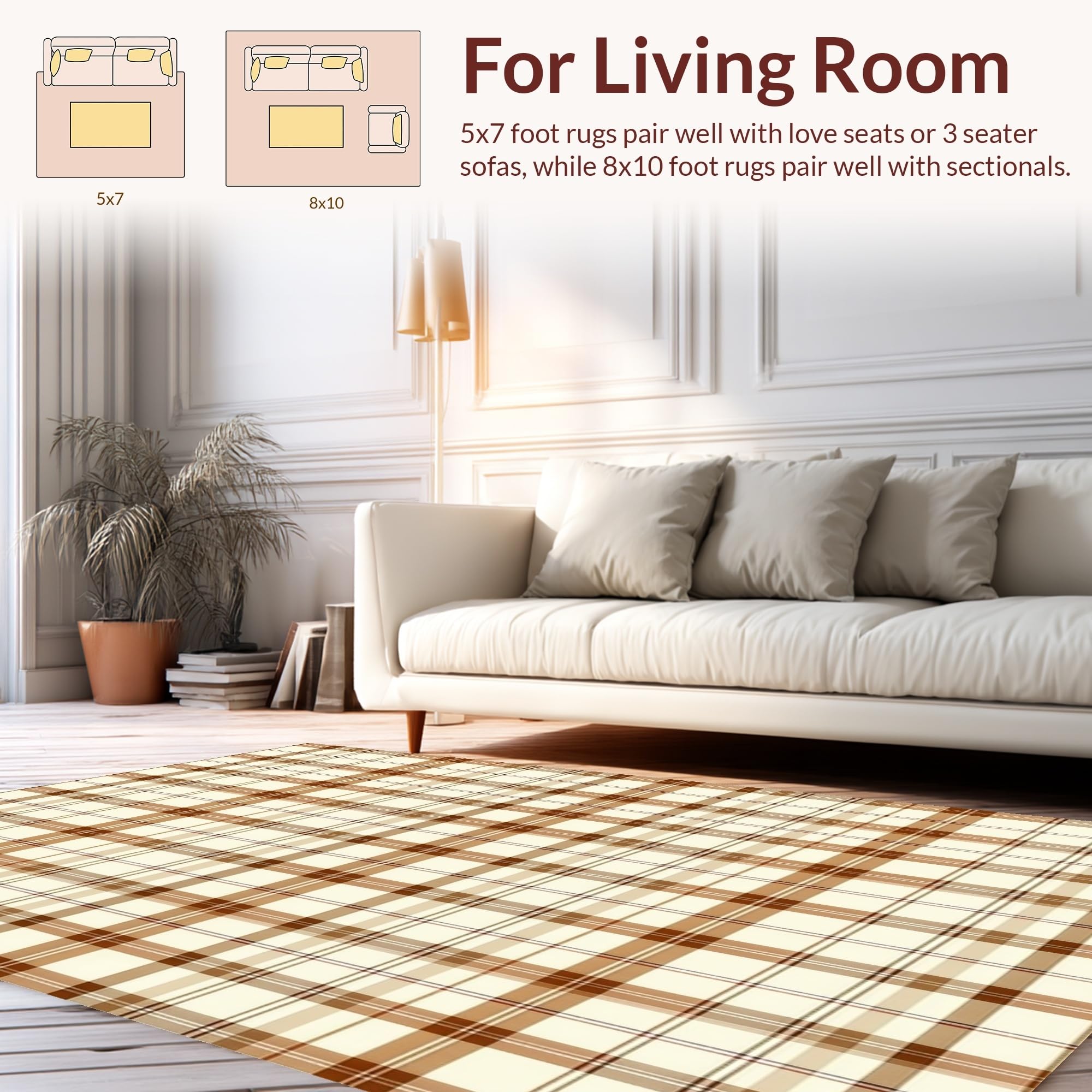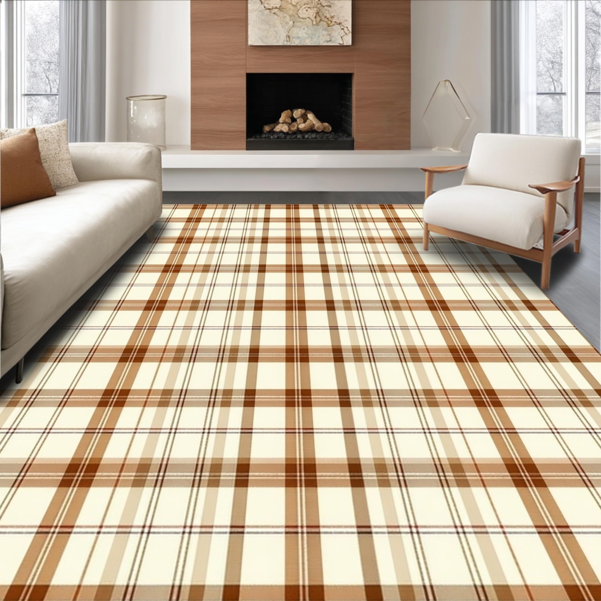 Ultra Soft Area Rug, Non Slip, Stain Resistant, Washable Area Rugs for Living Room, Bedroom, Modern Beige Plaid Area with Classic Tartan Lines and Texture(Beige) Overview:
