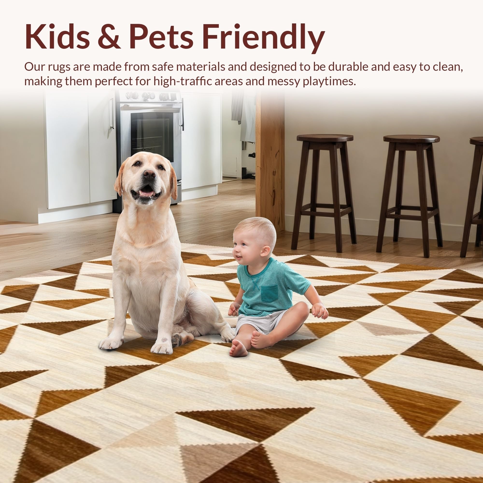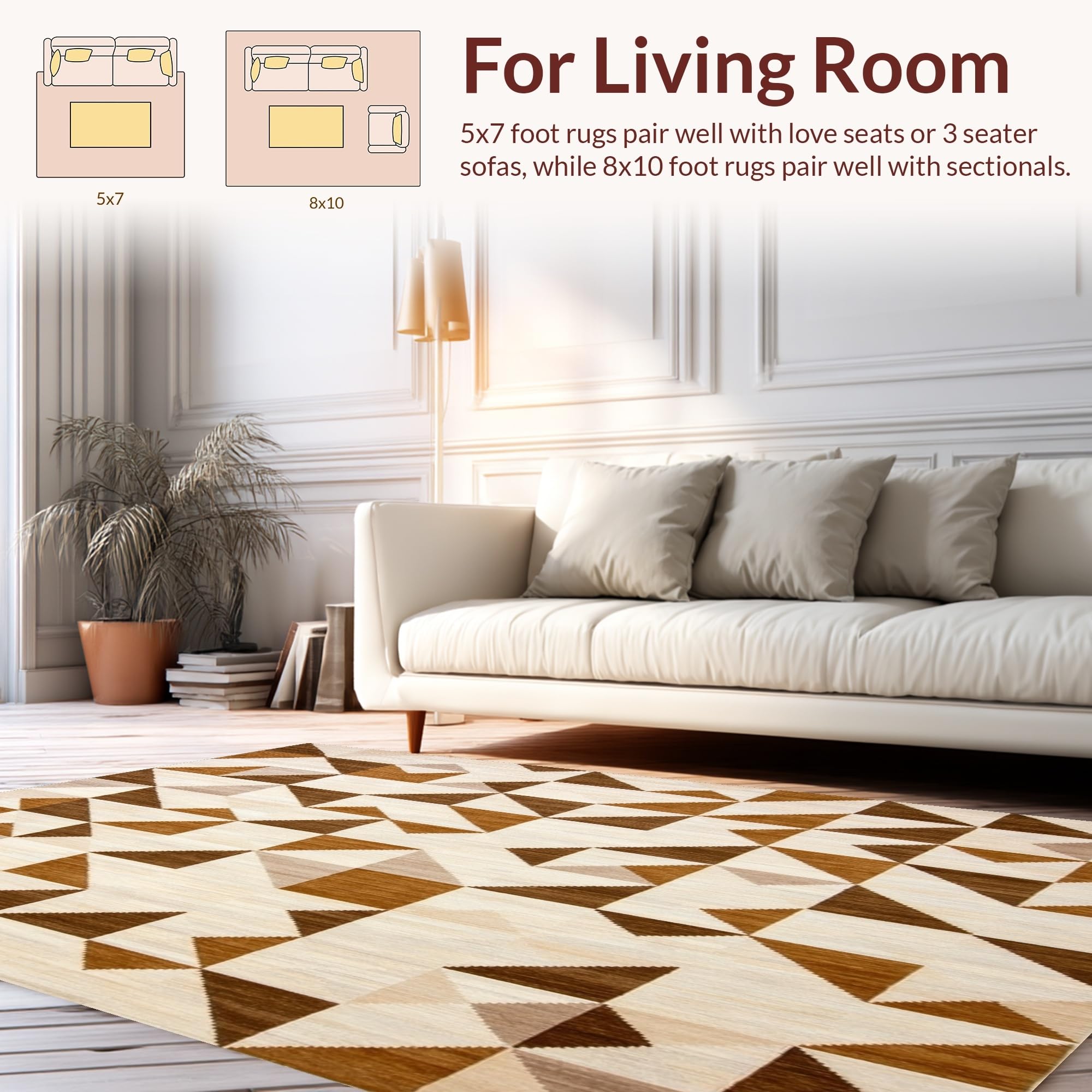 Ultra Soft Area Rug, Non Slip, Stain Resistant, Washable Area Rugs for Living Room, Bedroom, Modern Beige Runner Brown Geometric Waterproof(Beige) Overview: