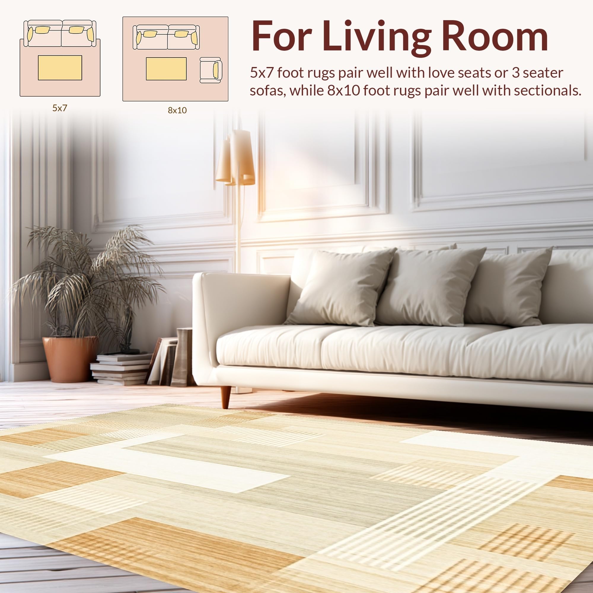 Ultra Soft Area Rug, Non Slip, Stain Resistant, Washable Area Rugs for Living Room, Bedroom, Modern Beige Runner Contemporary Design for Stylish Living Spaces(Beige) Overview: