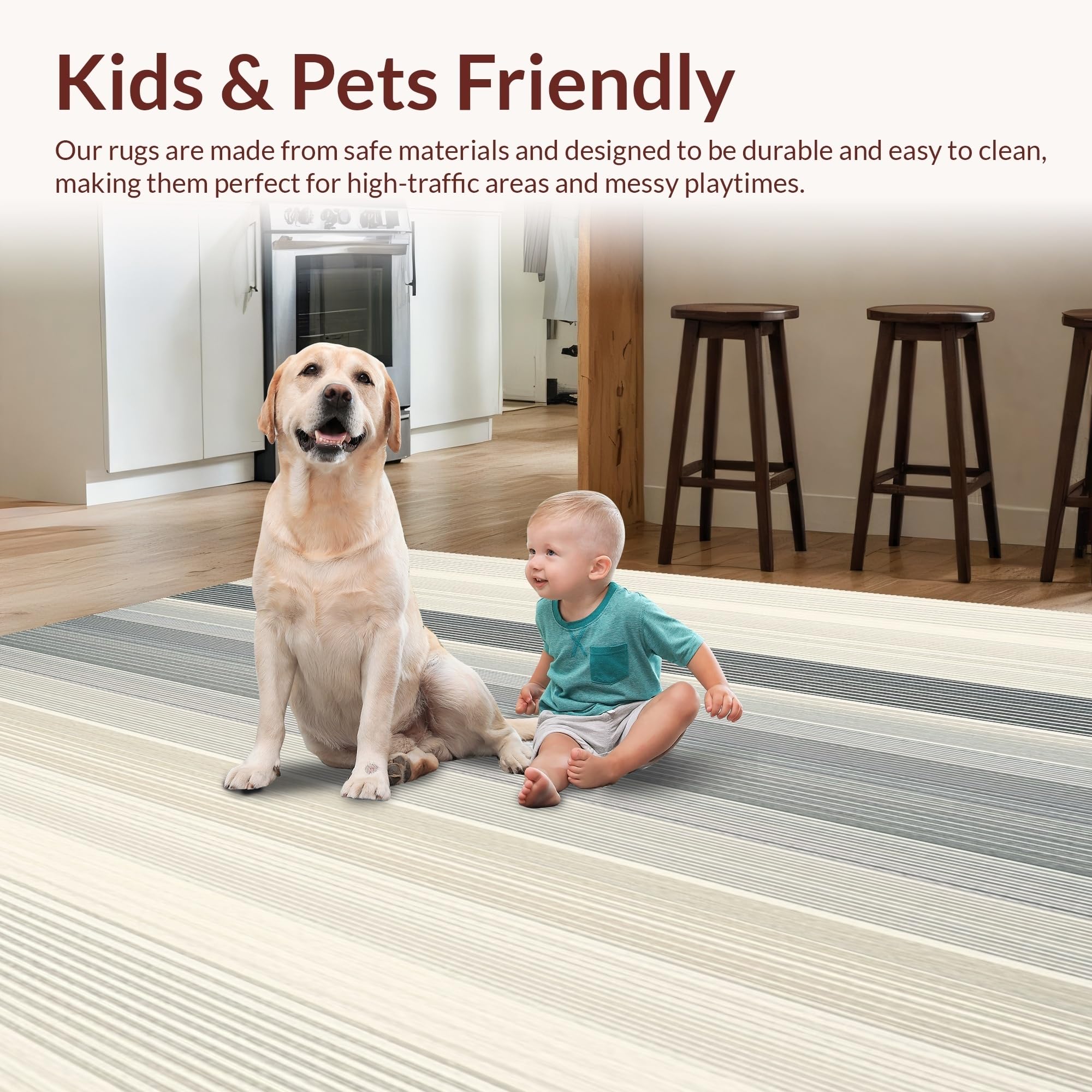 Ultra Soft Area Rug, Non Slip, Stain Resistant, Washable Area Rugs for Living Room, Bedroom, Modern Beige Runner Non Slip Hallway with Striped Design(Beige) Overview: