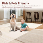 - Soft and Fluffy Comfort: This low pile rug is made from a faux cashmere texture, offering a smooth, soft touch that elevates any room. Ideal for areas where comfort matters without compromising on easy maintenance.
