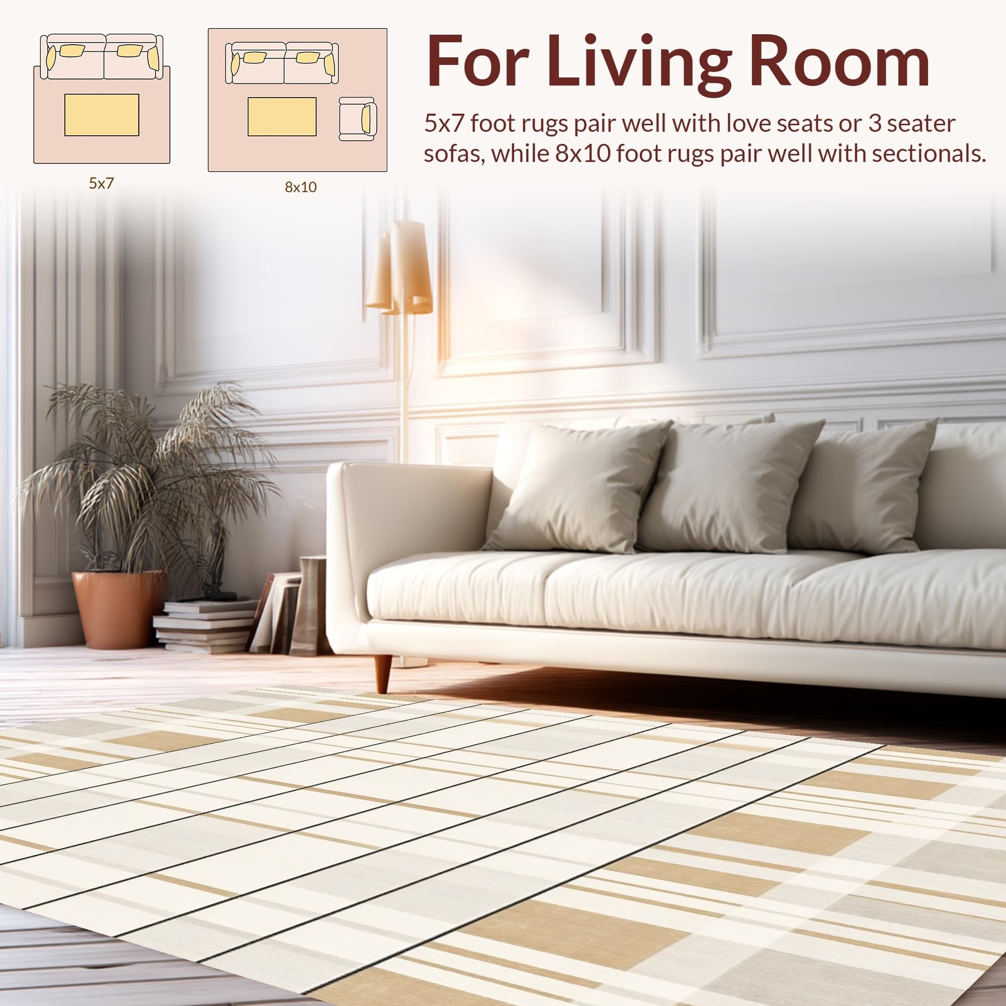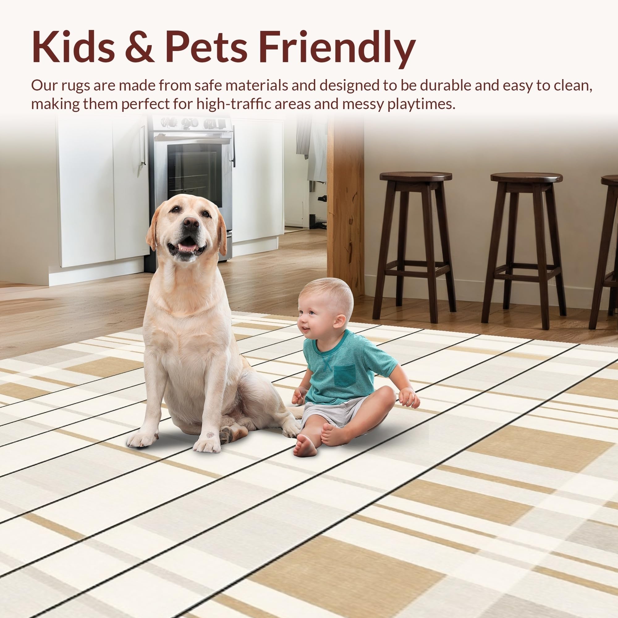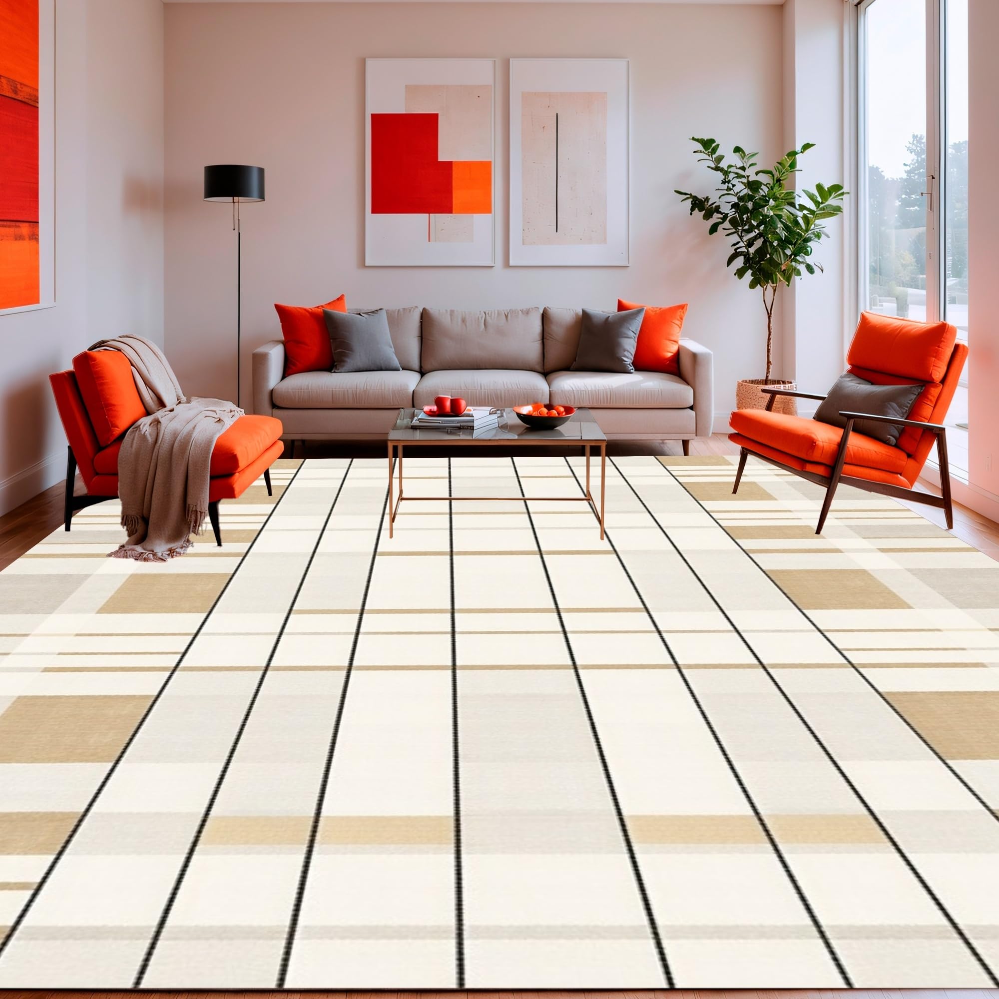 Ultra Soft Area Rug, Non Slip, Stain Resistant, Washable Area Rugs for Living Room, Bedroom, Modern Beige/White(Beige) Overview: