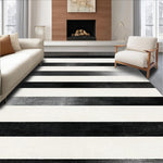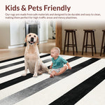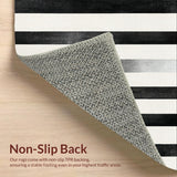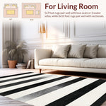 Ultra Soft Area Rug, Non Slip, Stain Resistant, Washable Area Rugs for Living Room, Bedroom, Modern Bistro Inspired Ground Cover With Alternating Band Pattern(Black) Overview: