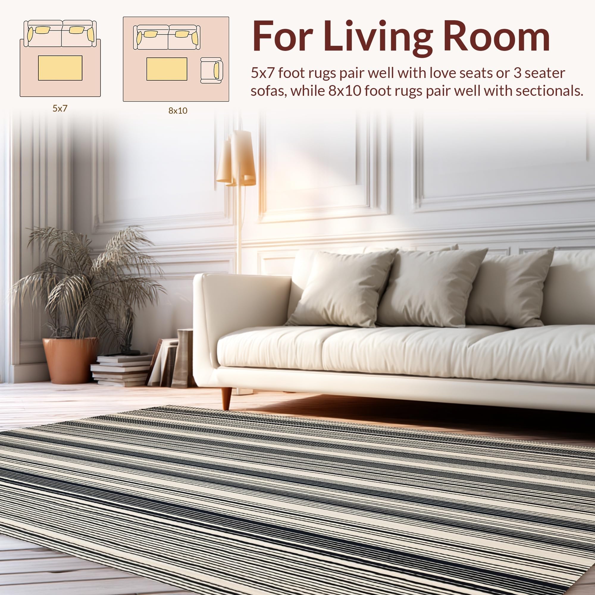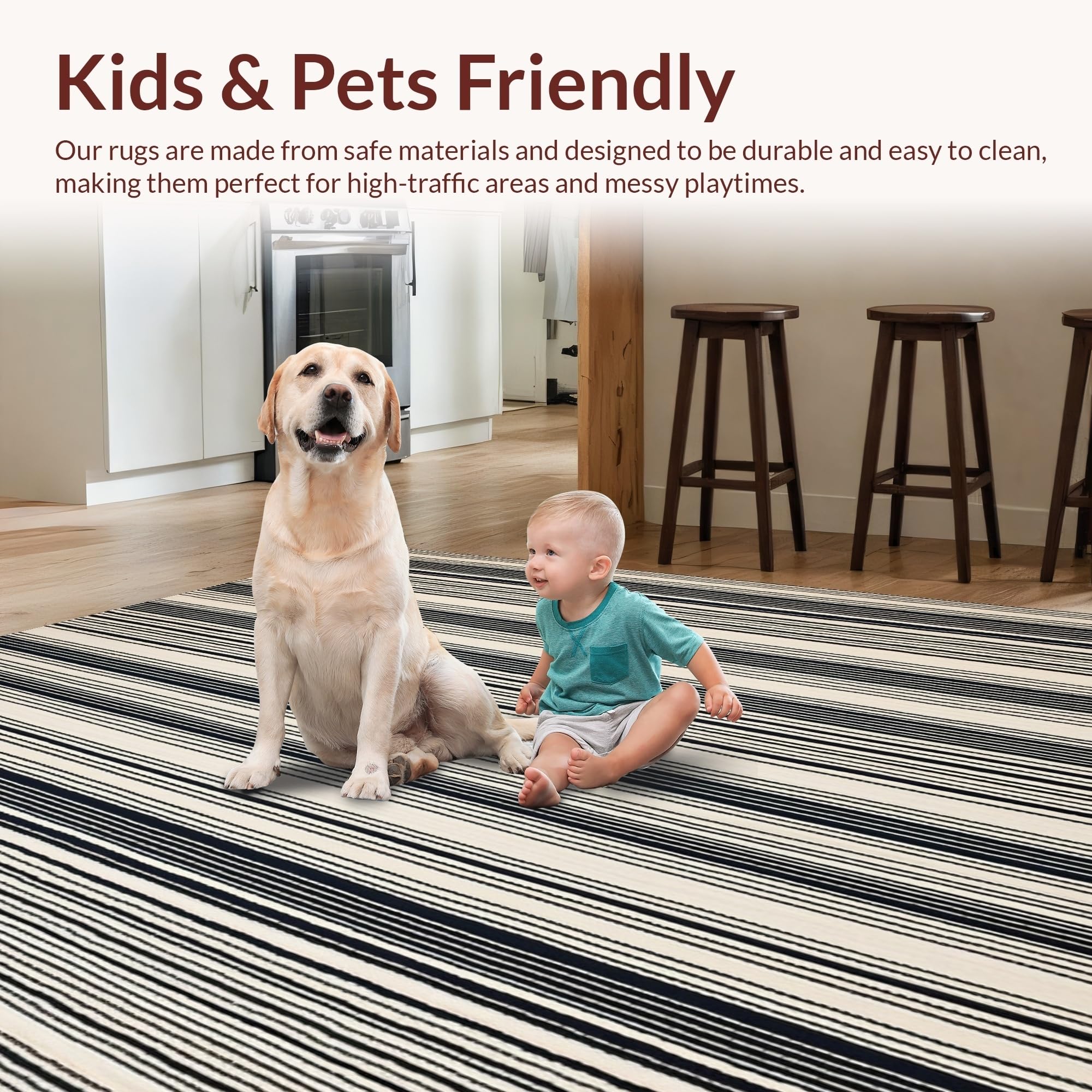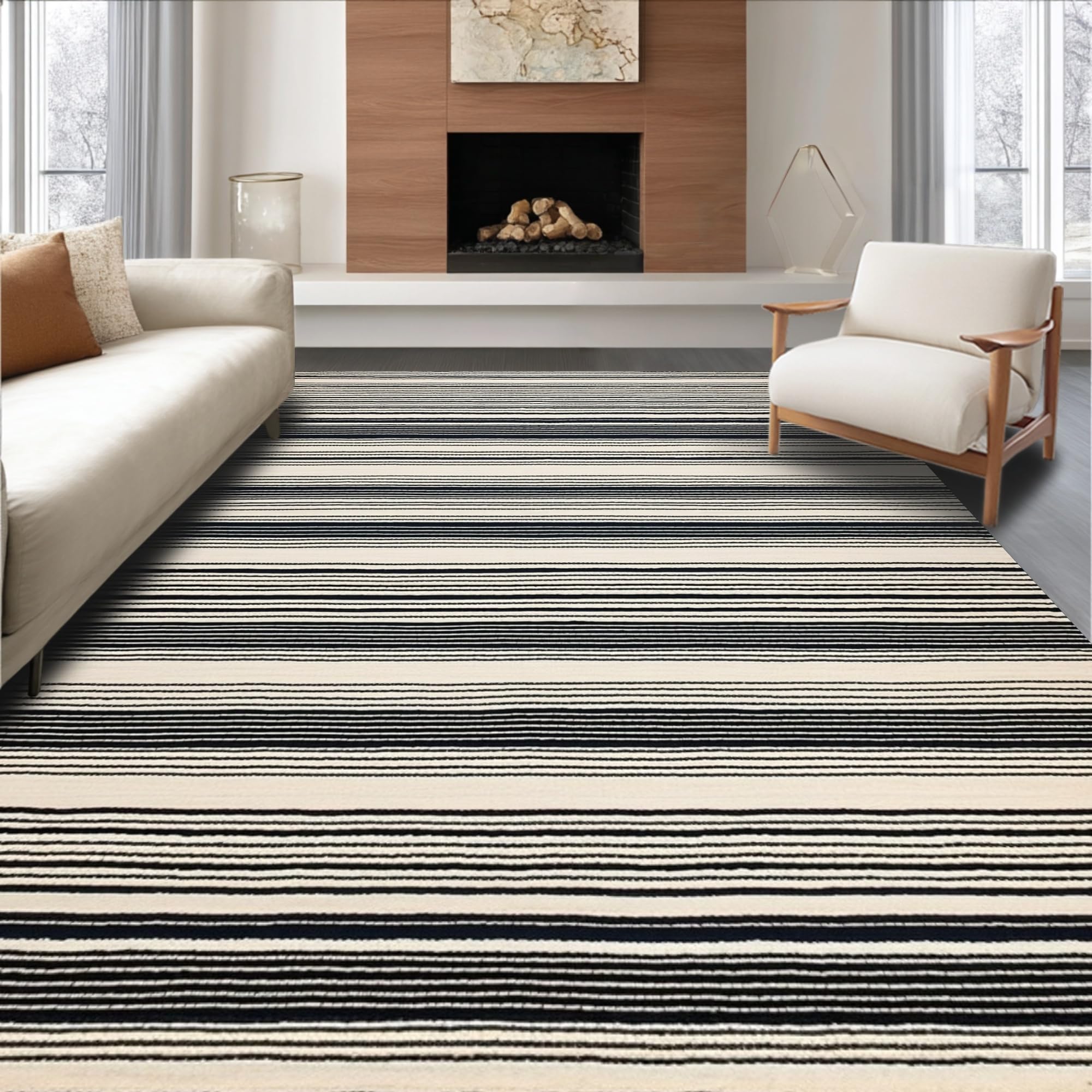 Ultra Soft Area Rug, Non Slip, Stain Resistant, Washable Area Rugs for Living Room, Bedroom, Modern Black and Beige for Spaces(Black) Overview: