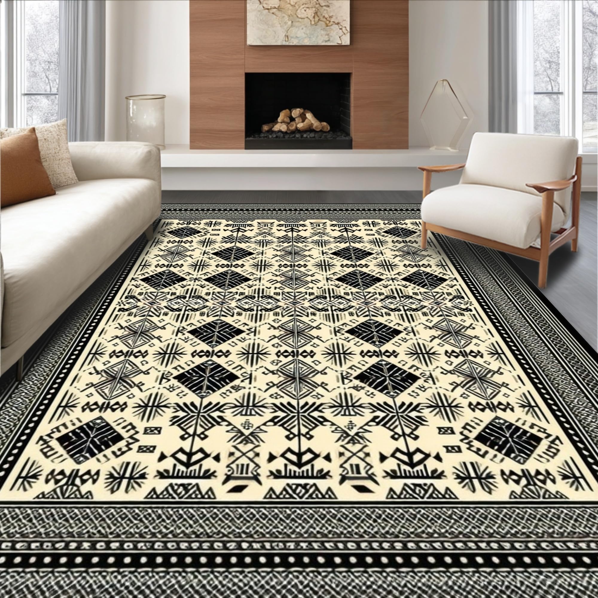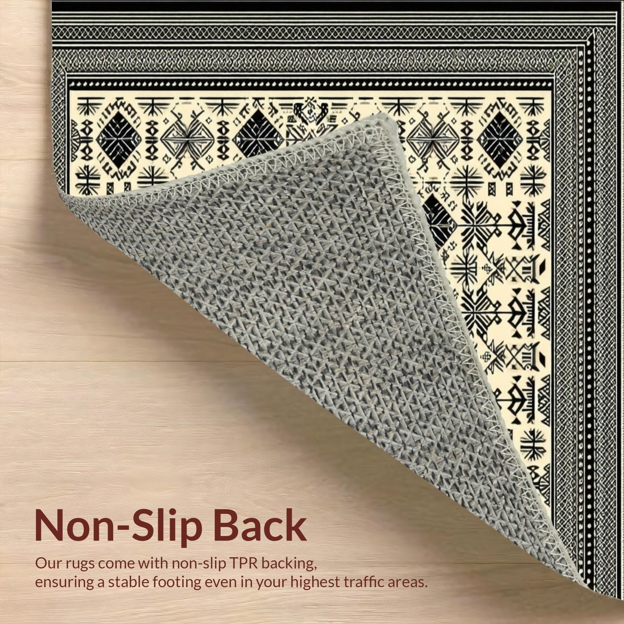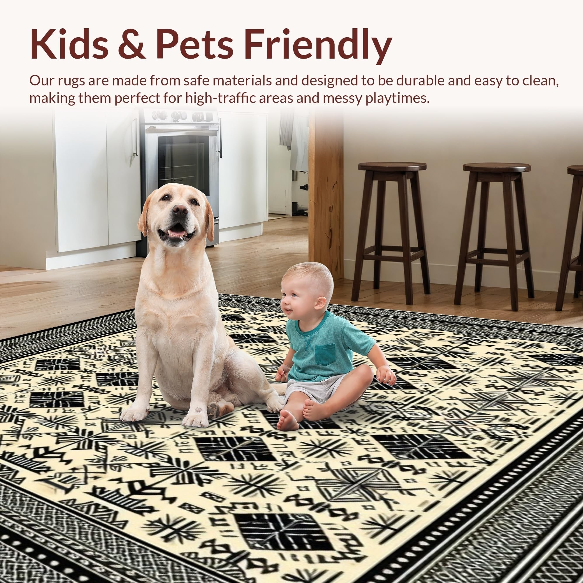 Ultra Soft Area Rug, Non Slip, Stain Resistant, Washable Area Rugs for Living Room, Bedroom, Modern Boho Area with Symmetrical Tribal Inspired Patterning(Beige) Overview: