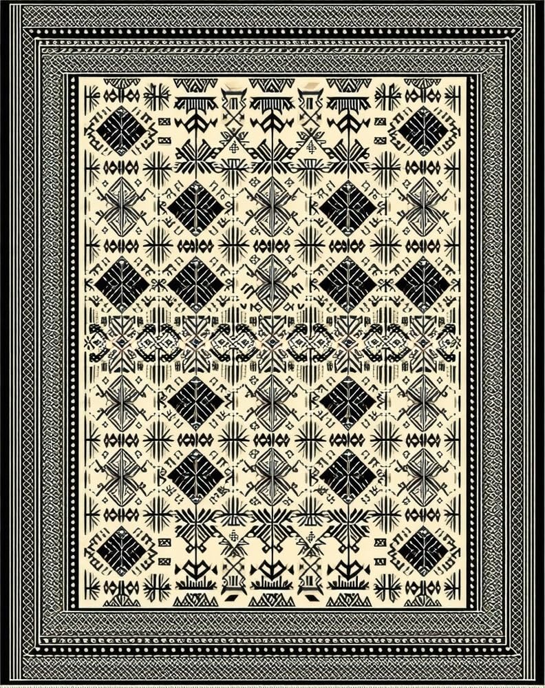 Modern Boho Area with Symmetrical Tribal Inspired Patterning(Beige)
