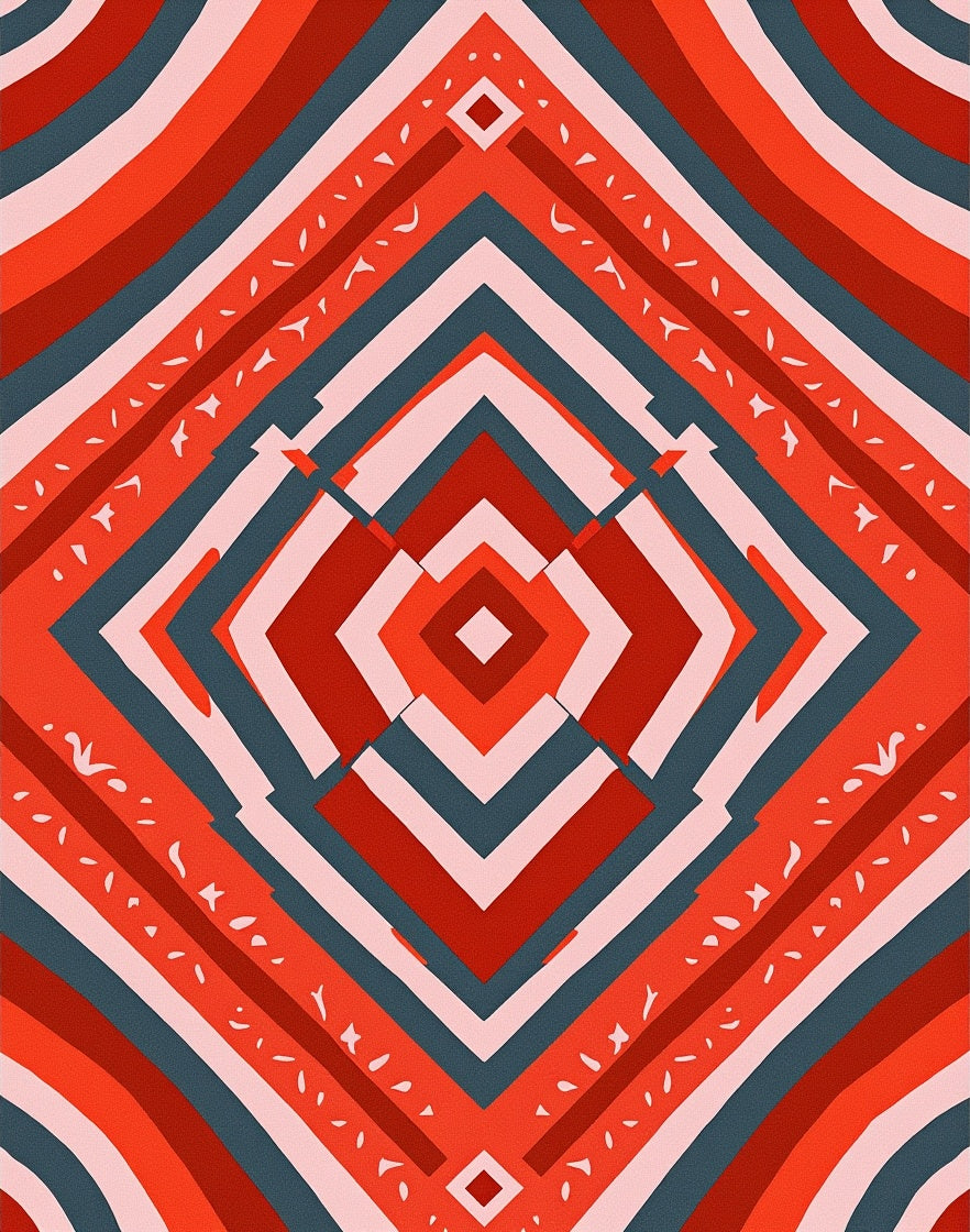 Modern Boho Chevron with Interlocking Zigzag and Accents(Red)